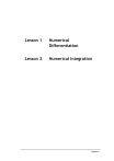 Lesson 1 Numerical Differentiation Lesson 2 Numerical Integration Module V NUMERICAL DIFFERENTIATION AND INTEGRATION ο₯ INTRODUCTION Calculus is the mathematics of change. Because engineers must continuously deal with systems and processes that change, calculus is an essential tool of our profession. Standing at the heart of calculus are the related mathematical concepts of differentiation and integration. Mathematically, the derivative, which serves as the fundamental vehicle for differentiation, represents the rate of change of a dependent variable with respect to an independent variable. The mathematical definition of the derivative begins with a difference approximation: ππ(π₯π₯ππ + βπ₯π₯ ) − ππ (π₯π₯ππ ) βπ¦π¦ = βπ₯π₯ βπ₯π₯ where y and f(x) are alternative representatives for the dependent variable and x is the independent variable. If Δx is allowed to approach zero, the difference becomes a derivative ππ(π₯π₯ππ + βπ₯π₯ ) − ππ (π₯π₯ππ ) πππ¦π¦ = lim βπ₯π₯ ππππ βπ₯π₯→0 where dy/dx [which can also be designated as y’ or f’(xi)] is the first derivative of y with respect to x evaluated at xi. The second derivative represents the derivative of the first derivative, ππ 2 π¦π¦ ππ ππππ = ( ) 2 ππππ ππππ ππππ Thus, the second derivative tells us how fast the slope is changing. It is commonly referred to as the curvature, because a high value for the second derivative means high curvature. Partial derivatives can be thought of as taking the derivative of the function at a point with all but one variable held constant. For example, given a function f that depends on both x and y, the partial derivative of f with respect to x at an arbitrary point (x, y) is defined as ππ (π₯π₯ + βπ₯π₯, π¦π¦) − ππ (π₯π₯, π¦π¦) ππππ = ππππππ βπ₯π₯→0 βπ₯π₯ ππππ Similarly, the partial derivative of f with respect to y is defined as ππ (π₯π₯, π¦π¦ + βπ¦π¦) − ππ (π₯π₯, π¦π¦) ππππ = ππππππ βπ¦π¦→0 βπ¦π¦ ππππ The inverse process to differentiation in calculus Mathematically, integration is represented by is integration. ππ πΌπΌ = οΏ½ ππ (π₯π₯ )ππππ ππ which stands for the integral of the function f(x) with respect to the independent variable x, evaluated between the limits x = a to x = b. The function f(x) is referred to as the integrand. The symbol Κ is actually a stylized capital S that is intended to signify the close connection between integration and summation. OBJECTIVES After studying the module, you should be able to: 1. To execute numerical differentiation and integration to a given set of interpolation points without solving the polynomial. 2. To execute numerical integration to find an approximation for the value of the definite integral where the function is not explicitly defined. 3. Implement numerical differentiation and integration with the use of Microsoft Excel. ο DIRECTIONS/ MODULE ORGANIZER There are two lessons in the module. Read each lesson carefully then answer the exercises/activities to find out how much you have benefited from it. Work on these exercises carefully and submit your output to your instructor. In case you encounter difficulty, discuss this with your instructor during the face-to-face meeting. Lesson 1 ο¦ Numerical Differentiation Numerical differentiation is a method of approximating the derivative of a function f at particular value x. Often, particularly in physics and engineering, a function may be too complicated to merit the work necessary to find the exact derivative, or the function itself is unknown, and all that is available are some points x and the function evaluated at those points. Numerical differentiation, of which finite differences is just one approach, allows one to avoid these complications by approximating the derivative. High-accuracy divided-difference formulas can be generated by including additional terms from the Taylor series expansion. For example, the forward Taylor series expansion can be written ππ"(π₯π₯ππ ) 2 ππ (π₯π₯ππ+1 ) = ππ(π₯π₯ππ ) + ππ ′(π₯π₯ππ )β + β +β― 2 Which can be solved for ππ′(π₯π₯ππ ) = ππ (π₯π₯ππ+1 ) − ππ (π₯π₯ππ ) ππ"(π₯π₯ππ ) − β + ππ(β2 ) β 2 truncating this result by excluding the second- and higher-derivative terms and were thus left with a final result of ππ(π₯π₯ππ+1 ) − ππ (π₯π₯ππ ) + ππ(β2 ) ππ′(π₯π₯ππ ) = β In contrast to this approach, we now retain the second-derivative term by substituting the following approximation of the second derivative ππ"(π₯π₯ππ ) = To yield ππ′(π₯π₯ππ ) = ππ (π₯π₯ππ+2 ) − 2ππ (π₯π₯ππ+1 ) + ππ(π₯π₯ππ ) + ππ(β) β2 ππ (π₯π₯ππ+1 ) − ππ(π₯π₯ππ ) ππ (π₯π₯ππ+2 ) − 2ππ (π₯π₯ππ+1 ) + ππ(π₯π₯ππ ) − β + ππ(β2 ) β 2β2 Or by collecting terms, ππ ′(π₯π₯ππ ) = −ππ(π₯π₯ππ+2 ) + 4ππ (π₯π₯ππ+1 ) − 3ππ(π₯π₯ππ ) + ππ(β2 ) 2β Notice that inclusion of the second-derivative term has improved the accuracy to ππ(β2 ). Similar improved versions can be developed for the backward and centered formulas as well as for the approximations of the higher derivatives. Forward finite-divided-difference formula First Derivative ππ (π₯π₯ππ+1 ) − ππ(π₯π₯ππ ) ππ ′ (π₯π₯ππ ) = β ( ) −ππ π₯π₯ππ+2 + 4 ππ (π₯π₯ππ+1 ) − 3ππ(π₯π₯ππ ) ππ ′ (π₯π₯ππ ) = 2β Second Derivative ππ(π₯π₯ππ+2 ) − 2ππ(π₯π₯ππ+1 ) + ππ(π₯π₯ππ ) ππ"(π₯π₯ππ ) = β2 −ππ (π₯π₯ππ+3 ) + 4ππ (π₯π₯ππ+2 ) − 5ππ (π₯π₯ππ+1 ) + 2ππ(π₯π₯ππ