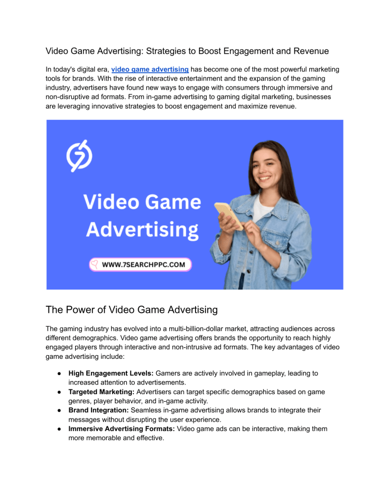 Video Game Advertising: Strategies to Boost Engagement and Revenue In today's digital era, video game advertising has become one of the most powerful marketing tools for brands. With the rise of interactive entertainment and the expansion of the gaming industry, advertisers have found new ways to engage with consumers through immersive and non-disruptive ad formats. From in-game advertising to gaming digital marketing, businesses are leveraging innovative strategies to boost engagement and maximize revenue. The Power of Video Game Advertising The gaming industry has evolved into a multi-billion-dollar market, attracting audiences across different demographics. Video game advertising offers brands the opportunity to reach highly engaged players through interactive and non-intrusive ad formats. The key advantages of video game advertising include: ● High Engagement Levels: Gamers are actively involved in gameplay, leading to increased attention to advertisements. ● Targeted Marketing: Advertisers can target specific demographics based on game genres, player behavior, and in-game activity. ● Brand Integration: Seamless in-game advertising allows brands to integrate their messages without disrupting the user experience. ● Immersive Advertising Formats: Video game ads can be interactive, making them more memorable and effective. Types of Video Game Advertising In-Game Advertising In-game advertising involves placing ads within the virtual environment of a video game. This strategy allows brands to promote their products through billboards, banners, and branded objects integrated into the game world. There are three primary types of in-game advertising: ● Static In-Game Ads: These are pre-designed ads that appear within the game environment and remain unchanged. ● Dynamic In-Game Ads: These ads can be updated in real time based on location, time, and user behavior. ● Advergaming: This involves creating a custom game specifically designed to promote a brand or product. Rewarded Video Ads Rewarded video ads provide players with in-game incentives in exchange for watching an advertisement. This format is highly effective as it enhances user experience while generating revenue for game developers. Benefits include: ● Higher Engagement Rates: Players willingly watch ads in return for rewards. ● Improved User Retention: Offering rewards encourages players to continue playing the game. ● Better Brand Recall: Players associate positive experiences with the advertised brand. Playable Ads Playable ads offer users a short interactive demo of a game or product before they decide to download or purchase it. This format is popular in mobile gaming digital marketing as it allows users to experience a product before committing. Playable ads are beneficial because they: ● Increase Conversion Rates: Users who engage with a playable ad are more likely to convert. ● Enhance User Experience: Interactive ads create an engaging and entertaining experience. ● Provide Valuable User Insights: Brands can analyze user behavior and preferences based on interactions. Esports Sponsorships and Collaborations Esports has become a significant part of the gaming industry, attracting millions of viewers worldwide. Brands can partner with esports teams, tournaments, or influencers to promote their products through sponsorships. Key benefits include: ● Wide Audience Reach: Esports events attract millions of global viewers. ● Brand Credibility: Partnering with top teams and influencers enhances brand reputation. ● Engaged Communities: Gamers are loyal to their favorite teams, increasing ad effectiveness. Social Media and Influencer Marketing Gaming digital marketing extends beyond in-game ads, with brands leveraging social media platforms and influencers to reach gaming audiences. Popular platforms for gaming influencers include YouTube, Twitch, and TikTok. Strategies include: ● Game Reviews and Tutorials: Influencers create content showcasing game features and advertisements. ● Live Streaming Partnerships: Brands sponsor influencers to promote products during live streams. ● Social Media Advertising: Targeted ads on social media platforms reach gaming audiences effectively. Best Practices for Video Game Advertising To maximize the effectiveness of video game advertising, brands should follow these best practices: Understand Your Audience Identifying the right gaming audience is crucial for successful advertising. Advertisers should analyze player demographics, preferences, and behavior to create targeted campaigns that resonate with gamers. Choose the Right Ad Format Different games and platforms require different ad formats. Brands should select formats that align with their goals, whether it's increasing brand awareness, driving sales, or improving user engagement. Focus on Non-Intrusive Advertising Gamers value immersive experiences, and intrusive ads can negatively impact gameplay. Brands should integrate ads seamlessly into the gaming environment without disrupting the player's experience. Leverage Data and Analytics Tracking and analyzing campaign performance is essential for optimizing video game advertising strategies. Advertisers should use data-driven insights to refine their approaches and improve engagement. Collaborate with Game Developers Working closely with game developers allows brands to create customized advertising solutions that fit naturally into the game world. This enhances ad effectiveness and improves user perception. The Future of Video Game Advertising As technology continues to evolve, the future of video game advertising looks promising. Emerging trends include: ● Virtual and Augmented Reality Ads: Brands will leverage immersive VR and AR experiences to engage users. ● AI-Driven Personalization: Artificial intelligence will enable more personalized and targeted gaming ads. ● Blockchain and NFTs in Gaming Ads: Brands will explore blockchain technology for sec