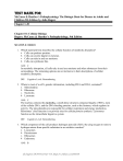 Test Bank For McCance & Huether’s Pathophysiology The Biologic Basis for Disease in Adults and Children 9th Edition by Julia Rogers Chapter 1-49 Chapter 01: Cellular Biology Rogers: McCance & Huether’s Pathophysiology, 9th Edition MULTIPLE CHOICE 1. Which statement best describes the cellular function of metabolic absorption? a. Cells can produce proteins. b. Cells can secrete digestive enzymes. c. Cells can take in and use nutrients. d. Cells can synthesize fats. ANS: C In metabolic absorption, all cells take in and use nutrients and other substances from their surroundings. The remaining options are not inclusive in their descriptions of cellular metabolic absorption. DIF: Cognitive Level: Remembering 2. Where is most of a cell’s genetic information, including RNA and DNA, contained? a. Mitochondria b. Ribosome c. Nucleolus d. Lysosome ANS: C The nucleus contains the nucleolus, a small dense structure composed largely of RNA, most of the cellular DNA, and the DNA-binding proteins, such as the histones, which regulate its activity. The mitochondria are responsible for cellular respiration and energy production. Ribosomes’ chief function is to provide sites for cellular protein synthesis. Lysosomes function as the intracellular digestive system. DIF: Cognitive Level: Remembering 3. Which component of the cell produces hydrogen peroxide (H2O2) by using oxygen to remove hydrogen atoms from specific substrates in an oxidative reaction? a. Lysosomes b. Peroxisomes c. Ribosomes d. Endosome ANS: B all chapters DOWNLOAD VIA https://r.24zhen.com/0064F Peroxisomes are so named because they usually contain enzymes that use oxygen to remove hydrogen atoms from specific substrates in an oxidative reaction that produces H2O2, which is a powerful oxidant and potentially destructive if it accumulates or escapes from peroxisomes. Ribosomes are RNA-protein complexes (nucleoproteins) that are synthesized in the nucleolus and secreted into the cytoplasm through pores in the nuclear envelope called nuclear pore complexes. Lysosomes are saclike structures that originate from the Golgi complex and contain more than 40 digestive enzymes called hydrolases, which catalyze bonds in proteins, lipids, nucleic acids, and carbohydrates. An endosome is a vesical that has been pinched off from the cellular membrane. DIF: Cognitive Level: Remembering 4. Which cell component is capable of cellular autodigestion when it is released during cell injury? a. Ribosome b. Golgi complex c. Smooth endoplasmic reticulum d. Lysosomes ANS: D The lysosomal membrane acts as a protective shield between the powerful digestive enzymes within the lysosome and the cytoplasm, preventing their leakage into the cytoplasmic matrix. Disruption of the membrane by various treatments or cellular injury leads to a release of the lysosomal enzymes, which can then react with their specific substrates, causing cellular selfdigestion. The chief function of a ribosome is to provide sites for cellular protein synthesis. The Golgi complex is a network of flattened, smooth vesicles and membranes often located near the cell nucleus. The smooth endoplasmic reticulum is involved in steroid hormone production and removing toxic substances from the cell. DIF: Cognitive Level: Remembering 5. Which cAMP-mediated response is related to antidiuretic hormone? a. Increased heart rate and force of contraction b. Secretion of cortisol c. Increased retention of water d. Breakdown of fat ANS: C Antidiuretic hormone leads to increased retention of water in the body. Epinephrine causes increases in heart rate and force of contraction. Increased cortisol secretion is due to ACTH. Breakdown of fat is due to glucagon. DIF: Cognitive Level: Remembering 6. During which phase of the cell cycle is DNA synthesized? a. G1 b. S c. G2 d. M ANS: B The four designated phases of the cell cycle are: (1) the G1 phase (G = gap), which is the period between the M phase (M = mitosis) and the start of DNA synthesis; (2) the S phase (S = synthesis), during which DNA is synthesized in the cell nucleus; (3) the G2 phase, during which RNA and protein synthesis occurs, the period between the completion of DNA synthesis and the next phase (M); and (4) the M phase, which includes nuclear and cytoplasmic division. DIF: Cognitive Level: Remembering 7. What organic compound facilitates transportation across cell membranes by acting as receptors, transport channels for electrolytes, and enzymes to drive active pumps? a. Lipids b. Proteases c. Proteins d. Carbohydrates ANS: C Proteins have several functions, including acting as receptors, transport channels for electrolytes, and enzymes to drive active pumps Lipids help act as the ―glue‖ holding cell membranes together. Proteases cause the breakdown of protein. Carbohydrates are involved in cellular protection and lubrication and help produce energy via oxidative phosphorylation. DIF: Cognitive Level: Remembering 8. Understanding the various steps of proteolytic cascades may be useful in designing drug therapy for which human diseases? a. Cardiac and vascular disorders b. Autoimmune and malignant disorders c. Gastrointestinal and renal disorders d. Endocrine and gastrointestinal disorders ANS: B Understanding the various steps involved in this process is crucial for designing drug interventions. Dysregulation of proteases features prominently in many human diseases, including cancer, autoimmunity, and neurodegenerative disorders. Cardiac, vascular, gastrointestinal, renal, and endocrine disorders do not involve this process. DIF: Cognitive Level: Remembering 9. Which structure prevents water-soluble molecules from entering cells across the plasma membrane? a. Carbohydrate chains b. Glycoprotein channels c. Membrane channel proteins d. Lipid bilayer ANS: D all chapters DOWNLOAD VIA https://r.24zhen.com/0064F The bilayer’s structure accounts for one of the essential functions of the plasma membrane. It is impermeable to most water-soluble mol