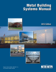 Metal Building Systems Manual 2012 Edition METAL BUILDING MANUFACTURERS ASSOCIATION Based on the 2012 IBC®, ASCE/SEI 7-10, and Common Industry Practices METAL BUILDING MANUFACTURERS ASSOCIATION 2012 Metal Building Systems Manual METAL BUILDING MANUFACTURERS ASSOCIATION 1300 Sumner Avenue Cleveland, Ohio 44115 Copyright © 2012 Metal Building Manufacturers Association, Inc. All rights reserved Metal Building Systems Manual ii Metal Building Systems Manual PREFACE The MBMA Metal Building Systems Manual incorporates the results of research undertaken by MBMA, its member companies and other industry groups. In many respects, it reflects refinement and advances in the knowledge of load application methods and design. This edition of the Metal Building Systems Manual replaces the 2006 edition with 2010 Supplement. Most municipalities in the United States have now adopted a building code. In the past, where a building code did not govern the design, the recommended loads in the MBMA Low-Rise Building Systems Manual (the predecessor to the Metal Building Systems Manual) were often specified. In recognition of the decreased need for MBMA loads, the Metal Building Systems Manual now focuses on how to apply the loads specified by the International Building Code and ASCE 7. Although the information in the new manual can be applied to low-rise buildings in general, it concentrates on issues related to design, code compliance and specification of metal building systems. Use of this manual is totally voluntary. Each building manufacturer or designer retains the prerogative to choose its own design and commercial practices and the responsibility to design its building systems to comply with applicable specifications and safety considerations. This 2012 edition of the MBMA Metal Building Systems Manual brings the manual into conformance with the 2012 Edition of the International Building Code and ASCE 7-10. It incorporates the results of research and development undertaken by MBMA, its member companies and other industry groups. It also updates referenced standards to the current editions. Although every effort has been made to present accurate and sound information, the responsibility for individual project's rests with the design professional and contract parties. MBMA assumes no responsibility whatsoever for the application of this information to the design or construction of any specific building system. MBMA expressly disclaims all liability for damages of any sort whether direct, indirect or consequential, arising out of the use, reference to, or reliance on this manual or any of its contents. MBMA DISCLAIMS ANY AND ALL WARRANTIES EXPRESS AND IMPLIED, INCLUDING BUT NOT LIMITED TO THE WARRANTIES OF MERCHANTABILITY OR FITNESS FOR A PARTICULAR PURPOSE. iii Metal Building Systems Manual iv Metal Building Systems Manual TABLE OF CONTENTS LIST OF FIGURES .................................................................................................................................................... xi LIST OF TABLES .................................................................................................................................................... xiii LIST OF DESIGN EXAMPLES .................................................................................................................................. xiv CHAPTER I DESIGN PRACTICE AND LOAD APPLICATION .............................................................................. 1 1.1 BACKGROUND.............................................................................................................................................1 1.2 DESIGN PRACTICE ........................................................................................................................................3 1.3 LOAD APPLICATION ......................................................................................................................................3 1.3.1 Definitions .......................................................................................................................................4 1.3.2 Live Loads ........................................................................................................................................7 1.3.3 Roof Live Loads ................................................................................................................................8 1.3.4 Wind Loads ....................................................................................................................................11 1.3.5 Snow Loads ..................................................................................................................................134 1.3.6 Seismic Loads...............................................................................................................................174 1.3.7 LOAD COMBINATIONS .................................................................................................................................235 CHAPTER II CRANE LOADS ...................................................................................................................... 237 2.1 GENERAL ...............................................................................................................................................237 2.2 CRANE TYPES ..........................................................................................................................................237 2.2.1 Top Running Cranes..................................................................................................................... 238 2.2.2 Underhung Bridge Cranes ........................................................................................................... 240 2.2.3 Underhung Monorail Cranes ....................................................................................................... 240 2.2.4 Jib Cranes..................................................
