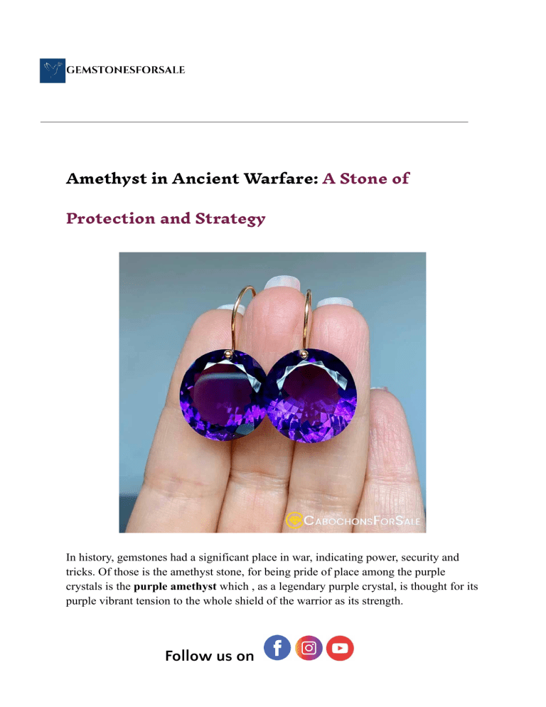 Amethyst in Ancient Warfare: A Stone of Protection and Strategy In history, gemstones had a significant place in war, indicating power, security and tricks. Of those is the amethyst stone, for being pride of place among the purple crystals is the purple amethyst which , as a legendary purple crystal, is thought for its purple vibrant tension to the whole shield of the warrior as its strength. Follow us on Not only to admire for its beauty, but also this purple amethyst also attracts admiration of the legendary virtues, as an indispensable talisman for the battles. If you are seeking amethyst to buy, knowing its history and the advantages will surely add to your understanding of this gem of timeless beauty. Opal stone, with its mesmerizing play of colors, complements amethyst by enhancing intuition and emotional balance, making it a perfect pairing for those seeking both protection and inspiration. Amethyst Stone Meaning in Ancient Warfare Ancient warriors, in fact, wore amethyst jewelry to ward off battles and sharpen their minds. The ancient Greeks and Romans thought this purple stone could keep one sober and able to think clearly, making it a highly coveted stone during warfare and a coveted item for soldiers and war strategists alike. Amethyst was also set into swords, shields and crowns bolstering its status as a stone symbolizing wisdom and bravery. Follow us on Amethyst as a Strategic Stone in Battle Amethyst was valuable due to its connections to wisdom and foresight, both necessary for battles. Commanders and Generals employed amethyst crystals to stay concentrated and make sound military judgments. The gemstone's property to improve cognitive performance and emotional stability proved it to be necessary for a successful battle. Similarly, malachite stone was also valued for its protective energy, making it an essential companion in times of conflict.. Amethyst Healing Properties and Protective Benefits The virtues of amethyst go beyond the arena of war. For many years it has been accepted as a stone of calmness and inner fortitude. Warriors used it to: ● Focus Better and Make Better Decisions – Dealing with clarity under making. ● Ward Off Negative Energy – Protecting against mental and emotional exhaustion. ● Promote Emotional Balance – Anti – Fear and Anxiety during Combat. ● Boost Physical Endurance – Boost stamina, hardness in combat. Fun Facts About Amethyst ● People born under Aquarius or Pisces receive excellent gifts with amethyst stones. ● People of the Medieval Age regarded amethyst as a stone that would heal injuries and illnesses. ● The British Crown Jewels feature among the most attractive amethyst gemstones. Follow us on The Role of Amethyst in Ancient Civilizations ● Several civilizations including the elephantine, Greeks, and Chinese worshipped amethyste. Amethyst Stone amulets were buried in Egyptian soldiers' tombs, thinking it would provide them an additional safety measure in the beyond. The Greeks linked it with their war god, Ares and utilized it as a charm for the victory. ● Wearing an amethyst piece of jewelry indicated nobility and power. Kings and military men wore amethyst rings and necklaces to tap the stone’s powers of protection. ● Today, amethyst adornments remain a must-have for those that are searching for both elegance and spiritual strength. Follow us on Amethyst Stone Benefits of Wearing It Aside from the battlefield, amethyst provides a vast amount of benefits in beyond: ● Induces Peacefulness and Mental Clarity – Helps concentration in regular activities. ● Helps Spiritual Growth – linking with a higher mind. ● Supports Better Sleep and Stress Relief – Easing anxiety and nightmares. ● Repels Negative Energies – Becomes a barrier from negative energies. Amethyst Stone Price: What to Expect? ● The amethyst stone prices change according to its quality, origin and size. Top quality amethyst particularly deep purple types can vary from $5 to $50 per carat. When you are planning to purchase amethyst, one of your main priorities should be the testability for authenticity and origin. Amethyst Crystals for Modern Use Today, amethyst crystals are used for meditation, energy healing and in the decor of home. The amethyst crystal clusters keep many homes bringing harmony and positivity to one's life. Some even tuck them under their pillow to have a peaceful sleep and protection against nightmares. Follow us on Other Gemstones That Complement Amethyst Although amethyst stone is quite powerful on its own, combining it with other crystals can enhance its power: ● Citrine – Increases self-esteem and draws abundance. ● Black Tourmaline – Increases protection and absorbs not alignment energy. Conclusion Amethyst is still an ageless gem, valued for its curative qualities and for the protection and symbolic value that it makes. Whether it is worn as an amethyst jewelry, kept as purple crystal or good for meditation, this stone is still continuing to grant tremendous benefits. If you wish to buy into amethyst, be certain that you pick a real good high-quality piece to gain the full potential of it. Hot to see the might of amethyst? Discover our selection of amethyst and discover the ideal purple amethyst stone to support your strength and strategy today! Follow us on