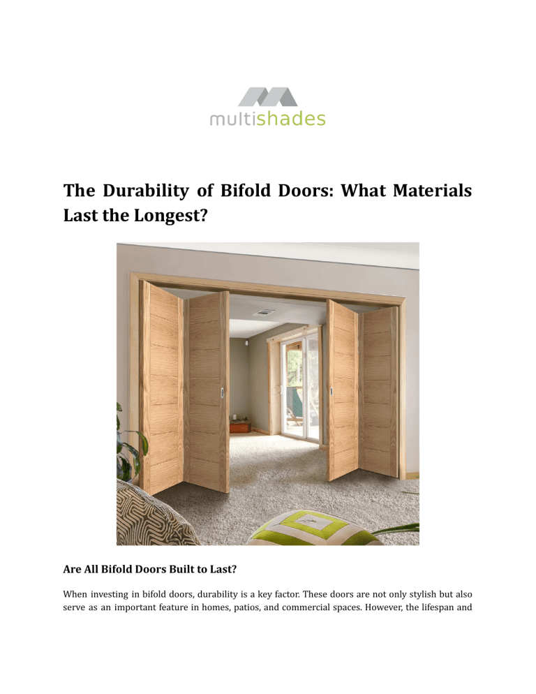 The Durability of Bifold Doors: What Materials Last the Longest? Are All Bifold Doors Built to Last? When investing in bifold doors, durability is a key factor. These doors are not only stylish but also serve as an important feature in homes, patios, and commercial spaces. However, the lifespan and strength of bifold doors largely depend on the material used. Choosing the right material ensures that your doors withstand daily use, weather changes, and wear over time. Bifold doors come in a variety of materials, each with different levels of durability, maintenance requirements, and weather resistance. In this article, we’ll explore the most durable bifold door materials and help you decide which one is best for your home or business. 1. Aluminum Bifold Doors – Strong and Long-Lasting Aluminum is one of the most durable materials for bifold doors, making it a popular choice for modern homes. It is lightweight, resistant to rust, and does not warp or crack over time. ● ● ● ● Lifespan: Can last 30+ years with minimal maintenance. Weather Resistance: Performs well in humid, coastal, or extreme climates. Maintenance: Requires occasional cleaning but does not need repainting. Best For: Homes in harsh weather conditions, modern designs, and commercial spaces. The only drawback is that aluminum can conduct heat, so choosing thermally broken aluminum will help improve energy efficiency. 2. uPVC Bifold Doors – Affordable and Low Maintenance uPVC (unplasticized polyvinyl chloride) is a budget-friendly and low-maintenance material for bifold doors. It is resistant to moisture, termites, and rot, making it a popular choice for homeowners looking for affordability. ● ● ● ● Lifespan: Typically lasts 20–25 years with proper care. Weather Resistance: Good for moderate climates but may not perform well in extreme heat. Maintenance: Easy to clean, but may discolor over time when exposed to direct sunlight. Best For: Budget-conscious homeowners and interior bifold doors. While uPVC is a cost-effective option, it is not as strong as aluminum or wood and may become brittle with age. 3. Timber Bifold Doors – Classic and Sturdy Wooden bifold doors offer a traditional and luxurious look while being naturally durable. However, their lifespan depends on the type of wood used and the level of maintenance. ● Lifespan: High-quality hardwood doors last 30–40 years if maintained properly. ● Weather Resistance: Can withstand different climates but needs protection from moisture and termites. ● Maintenance: Requires regular sealing, painting, or varnishing to prevent damage. ● Best For: Classic homes, interior applications, and eco-friendly designs. Hardwood options like oak, teak, and mahogany offer superior durability, while softwoods like pine are less resistant to long-term wear. 4. Composite Bifold Doors – The Best of Both Worlds Composite bifold doors combine materials like wood, aluminum, and fiberglass to create a highly durable and low-maintenance option. These doors are designed to provide the best features of each material, such as strength, insulation, and weather resistance. ● ● ● ● Lifespan: Typically 30+ years with minimal upkeep. Weather Resistance: Excellent resistance to humidity, UV rays, and temperature fluctuations. Maintenance: Requires very little maintenance compared to traditional wood. Best For: Homeowners looking for aesthetic appeal with high durability. Although composite doors tend to be more expensive, they are worth the investment for long-term durability. 5. Steel Bifold Doors – Unmatched Strength For those seeking maximum security and durability, steel bifold doors are the strongest option. They are highly resistant to impact, fire, and harsh weather conditions. ● Weather Resistance: Handles extreme climates but is prone to rust if not treated. ● Maintenance: Requires rust-proof coating and occasional repainting. ● Best For: Commercial spaces, industrial areas, and security-focused properties. The downside is that steel doors can be heavy and expensive, making them less common in residential applications. How to Choose the Right Material for Your Bifold Doors When selecting bifold doors, consider these key factors: ● Climate: If you live in a humid or coastal area, opt for aluminum or composite doors for better resistance. ● Maintenance Preferences: If you prefer low-maintenance doors, uPVC and composite options are ideal. ● Security Needs: For high-security areas, steel bifold doors are the best option. ● Budget: If you want an affordable option, uPVC is the cheapest, while hardwood and steel are on the higher end. ● Aesthetic Preference: Timber doors provide a natural, classic look, while aluminum and composite options offer a modern appearance. Choosing the right material for your bifold doors is essential for long-term durability, functionality, and aesthetics. Aluminum and composite bifold doors offer the best combination of strength, low maintenance, and weather resistance, making them the top choices for most homeowners and businesses. However, if you value a classic wooden look or need extra security, hardwood and steel bifold doors are also excellent options. Whatever material you choose, proper maintenance and installation will ensure that your bifold doors last for decades! Business Name: Multishades Aluminum Complete Address:Dubai Investment Park 1 Warehouse No. 12 Dubai, United Arab Emirates Area: Dubai Zipcode:449622 City: Dubai Country: United Arab Emirates Telephone: 97145791544 Whatsapp/Mobile: 971504291995 Established Date:1999 No. of Employees: Payment modes:Cash, Credit / Debit Card Email: info@multishades.ae Website:http://www.multishades.ae/ Instagram:https://www.instagram.com/multishades.ae/