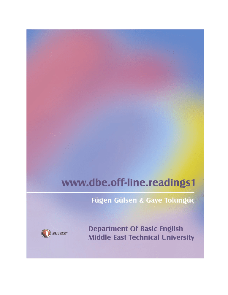 FOR OUR STUDENTS PAST, PRESENT AND FUTURE To our students, People are not born readers and reading is a skill that can be learned and improved. If you are already a good reader in your native language, all you need to do is to approach reading in a foreign language with the same enthusiasm. If you think you are not good enough at reading, then take this book as a chance for a new start. You have to read a lot for your studies in your department of the university, and this book may show you the ways to deal with reading. You already know that the biggest difficulty when reading in a foreign language is the vocabulary, so try to do your best to increase your knowledge of words as much as possible. This book is for you. We hope it will help you enjoy reading in English! F. Gülsen & G. Tolungüç To our colleagues, The book is intended for our post-beginner-level DBE students, who have had a minimum of 70 – 80 class hours of instruction covering the preliminaries of the English language. The purpose is to help them enjoy reading in English, increase an awareness of reading, develop and improve their reading skills and provide them with the basic vocabulary necessary for academic reading. The units in the book have readings which try to cover different aspects of the same topic with a variety of exercises. Before each unit, there is a “Skills Section,” the aim of which is to familiarize the students with the basic reading skills and give them the chance to practice these skills. In this way, they will hopefully be more aware and successful when dealing with the readings in the units. Each unit starts with a “Think And Talk Before You Read” section. The purpose is to make students uncover their background knowledge and thus prepare them for reading. The exercises in “Do While You Read” sections usually aim for an overall understanding of the text, while “Read, Understand And Answer” sections require a more careful and critical reading. “Just For Fun” sections are intended as breaks for students if there is extra time to do them. “Go On Reading”s can be used in many ways, as outside reading material for the students who have enjoyed the topic or as additional practice or quiz material for the teachers who want to use them. As for the final unit, the “Consolidation” tries to bring together the various pieces of reading as a skill and provide an overall understanding of reading as a natural process. Piloting feedback supports our initial recommendation of five hours for each unit including the Skills Section. Yet, slight changes in timing should be allowed for because the book has been purposefully designed in such a way that both the content and the length of the units vary to avoid monotony. The time allotted does not include “Go On Reading”s. The book also has a “Teacher’s Manual,” which provides the answer key and our suggestions on the vocabulary to be pre-taught. Special emphasis has been given to vocabulary development, practice and recycling throughout the book. The vocabulary list of the book covers over 750 of the most frequent words of English necessary for academic reading. It is based on international word lists with frequency counts, namely GSL (General Service List), revised by J. Bauman and B. Culligan, 1995, and UWL (University Word List), revised by A. Coxhead, 2000, as AWL (Academic Word List). It has also been checked against the word lists of the PSR (Physical Science Reader) Series by S. Öniz, T. Cross and A. Toppare, 1981, which is a course book used for many years in the department. Vocabulary which is necessary for comprehension has been suggested as items to be pre-taught in the “Teacher’s Manual.” These items have not been included in the final vocabulary list unless they are of the required frequency, and sometimes a particular item may appear more than once in different lists to be pre-taught so that the students remember the word before they start reading. Depending on the level and the needs of the class, teachers should feel free to make changes in our lists. Please remember that any kind of feedback would be most welcome! A final word on the references. Technology and the Internet enabled us to create the book in a –-relatively-- short time by making it easy for us to reach various sources and do a lot of reading to learn about different topics before writing the texts and the exercises. We would like to note once more that the starting point of the book is the wish to provide our students with newer, more up-to-date and hopefully more interesting material. We believe that our colleagues can come up with much better products and strongly hope that many other books will soon follow ours. We hope that working with www.dbe.off-line.readings1 will be an enjoyable experience both for you and your students. F. Gülsen & G. Tolungüç Thanks... We owe thanks to many of our colleagues, without whose help this book would be lacking in many respects. Taking this chance, thank you, Zuhal Sayman, for your continuous support, and for your evaluation, review and constructive criticism of the book, Steve Riva, for the hours you spent editing the material, Demet Köksal, Zeynep Alıcı, Sibel Tüzel-Köymen, Işık Arıkan and Asuman Sayıner for the time you spared to proof-read the material with your heavy workload, Tijen Oktay, Hale Binay, Deniz Atikoğlu, Ömür Aras and Gülsima Baykal, for your hard work and good-will in piloting the material and the valuable feedback you have given us, The students who wholeheartedly cooperated during the piloting of the material, Nurcan Tugay-Kandiller, for your help and support to clarify our minds, Bahar Akçora, for your helpful ideas and contributions to the book, The writers of some materials included in the book and the owners of many Internet sites who very kindly granted us permission to use them, And all our colleagues, who encouraged us throughout the year. TABLE OF CONTENTS Skil