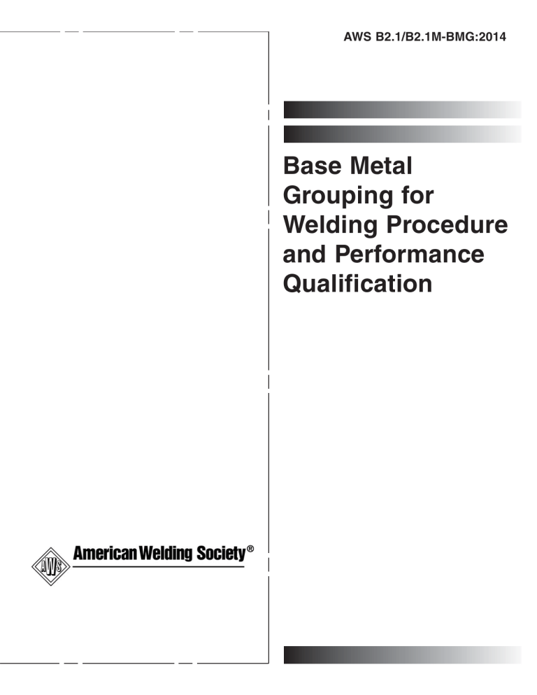 AWS B2.1/B2.1M-BMG:2014 Base Metal Grouping for Welding Procedure and Performance Qualification AWS B2.1/B2.1M-BMG:2014 Base Metal Grouping for Welding Procedure and Performance Qualification 3rd Edition Supersedes AWS B2.1-B2.1M-BMG:2009-ADD1 Prepared by the American Welding Society (AWS) B2 Committee on Procedure and Performance Qualification Under the Direction of the AWS Technical Activities Committee Approved by the AWS Board of Directors Abstract This document provides the AWS base metal grouping for welding procedure and performance qualification and is identical to Annex C of AWS B2.1/B2.1M:2014, Specification for Welding Procedure and Performance Qualification. AWS B2.1/B2.1M-BMG:2014 ISBN: 978-0-87171-849-5 © 2014 by American Welding Society All rights reserved Printed in the United States of America Photocopy Rights. No portion of this standard may be reproduced, stored in a retrieval system, or transmitted in any form, including mechanical, photocopying, recording, or otherwise, without the prior written permission of the copyright owner. Authorization to photocopy items for internal, personal, or educational classroom use only or the internal, personal, or educational classroom use only of specific clients is granted by the American Welding Society provided that the appropriate fee is paid to the Copyright Clearance Center, 222 Rosewood Drive, Danvers, MA 01923, tel: (978) 750-8400; Internet: <www.copyright.com>. ii AWS B2.1/B2.1M-BMG:2014 Statement on the Use of American Welding Society Standards All standards (codes, specifications, recommended practices, methods, classifications, and guides) of the American Welding Society (AWS) are voluntary consensus standards that have been developed in accordance with the rules of the American National Standards Institute (ANSI). When AWS American National Standards are either incorporated in, or made part of, documents that are included in federal or state laws and regulations, or the regulations of other governmental bodies, their provisions carry the full legal authority of the statute. In such cases, any changes in those AWS standards must be approved by the governmental body having statutory jurisdiction before they can become a part of those laws and regulations. In all cases, these standards carry the full legal authority of the contract or other document that invokes the AWS standards. Where this contractual relationship exists, changes in or deviations from requirements of an AWS standard must be by agreement between the contracting parties. AWS American National Standards are developed through a consensus standards development process that brings together volunteers representing varied viewpoints and interests to achieve consensus. While AWS administers the process and establishes rules to promote fairness in the development of consensus, it does not independently test, evaluate, or verify the accuracy of any information or the soundness of any judgments contained in its standards. AWS disclaims liability for any injury to persons or to property, or other damages of any nature whatsoever, whether special, indirect, consequential, or compensatory, directly or indirectly resulting from the publication, use of, or reliance on this standard. AWS also makes no guarantee or warranty as to the accuracy or completeness of any information published herein. In issuing and making this standard available, AWS is neither undertaking to render professional or other services for or on behalf of any person or entity, nor is AWS undertaking to perform any duty owed by any person or entity to someone else. Anyone using these documents should rely on his or her own independent judgment or, as appropriate, seek the advice of a competent professional in determining the exercise of reasonable care in any given circumstances. It is assumed that the use of this standard and its provisions is entrusted to appropriately qualified and competent personnel. This standard may be superseded by new editions. This standard may also be corrected through publication of amendments or errata or supplemented by publication of addenda. Information on the latest editions of AWS standards including amendments, errata, and addenda is posted on the AWS web page (www.aws.org). Users should ensure that they have the latest edition, amendments, errata, and addenda. Publication of this standard does not authorize infringement of any patent or trade name. Users of this standard accept any and all liabilities for infringement of any patent or trade name items. AWS disclaims liability for the infringement of any patent or product trade name resulting from the use of this standard. AWS does not monitor, police, or enforce compliance with this standard, nor does it have the power to do so. Official interpretations of any of the technical requirements of this standard may only be obtained by sending a request, in writing, to the appropriate technical committee. Such requests should be addressed to the American Welding Society, Attention: Managing Director, Technical Services Division, 8669 NW 36 St, # 130, Miami, FL 33166. With regard to technical inquiries made concerning AWS standards, oral opinions on AWS standards may be rendered. These opinions are offered solely as a convenience to users of this standard, and they do not constitute professional advice. Such opinions represent only the personal opinions of the particular individuals giving them. These individuals do not speak on behalf of AWS, nor do these oral opinions constitute official or unofficial opinions or interpretations of AWS. In addition, oral opinions are informal and should not be used as a substitute for an official interpretation. This standard is subject to revision at any time by the AWS required and should be addressed to AWS Headquarters. Such comments will receive careful consideration by the AWS B2 Committee on Procedure and Performance Qualification. It must be reviewed every five years, and if no