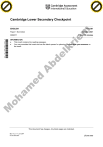 XC hange E O W U B Cambridge Lower Secondary Checkpoint 1111/01 m ENGLISH Paper 1 Non-fiction October 2021 1 hour 10 minutes bd el kr INFORMATION • This insert contains the reading passages. • You may annotate this insert and use the blank spaces for planning. Do not write your answers on the insert. M oh am ed A ie INSERT This document has 4 pages. Any blank pages are indicated. IB21 10_1111_01/2RP © UCLES 2021 [Turn over ac .c tr om to C lic k om .c k lic C t Y N Y U B to re . . k e r- s o ft w a w w ac ww ww tr di ! F- or O W t N di PD hange E ! XC or PD F- k e r- s o ft w a re XC hange E O W N Y B om to k lic tr ac .c C om k lic C .c e ar . k e r- s o ft w a 5 el kr ie m Text A 10 15 20 am ed A bd Content removed due to copyright restrictions oh 25 M . k e r- s o ft w w w ac t U Y U to B 2 ww ww tr di ! F- N PD t O W di ! hange E or PD XC or F- © UCLES 2021 1111/01/INSERT/O/N/21 re XC hange E O W N Y B om to k lic tr Text B ac .c C om k lic C .c e ar . k e r- s o ft w a Tiger spotting If you want to try to see tigers in the wild, it is worth learning some basic tracking and observation techniques. 5 ie m Always look for fresh tracks, which are clean with no dust or debris, and follow them if you can. Tigers have sensitive paws, so they prefer using jungle trails rather than the alternative that they sometimes have to do of blasting their way through thick, thorny undergrowth. If the paw prints are on top of a wheel mark, then they are obviously recent. el kr The territories of tigers and leopards often overlap, and their tracks can easily be confused. An adult tiger’s print is at least 7.5 centimetres wide, a leopard’s not more than 6 centimetres, and the male’s is wider than the female’s. Tigers are betrayed by the alarm calls they provoke in other animals. Spotted deer give a short, high pitched ‘woo’ when alarmed, while the bellow of a sambar, which is the largest of the deer family and the tiger’s ultimate dish, really does mean tiger and nothing else. 10 bd Tigers are mostly nocturnal, but in reserves where they are confident of protection, they move and even hunt by day. Nevertheless, early mornings and evenings are ideal times to see them. 15 A Each season has its advantages. From October to December, the parks are beautiful and lush after the rains. In February and March, the vegetation has often been burned or deliberately cut back, which improves visibility, but animals are easily disturbed. April to June is hotting up towards the monsoon, and water becomes scarce. So, waterholes are the best place to look. oh am ed Travel by elephant if you get the chance. You can cover rough terrain and get off the beaten track, and most elephant drivers are good at following tigers. Elephants often rumble when a tiger’s around and sometimes trumpet when close to one. M . k e r- s o ft w w w ac t U Y U to B 3 ww ww tr di ! F- N PD t O W di ! hange E or PD XC or F- © UCLES 2021 1111/01/INSERT/O/N/21 20 re XC hange E O W N Y B M oh am ed A bd el kr ie m BLANK PAGE ac Permission to reproduce items where third-party owned material protected by copyright is included has been sought and cleared where possible. Every reasonable effort has been made by the publisher (UCLES) to trace copyright holders, but if any items requiring clearance have unwittingly been included, the publisher will be pleased to make amends at the earliest possible opportunity. To avoid the issue of disclosure of answer-related information to candidates, all copyright acknowledgements are reproduced online in the Cambridge Assessment International Education Copyright Acknowledgements Booklet. This is produced for each series of examinations and is freely available to download at www.cambridgeinternational.org after the live examination series. Cambridge Assessment International Education is part of the Cambridge Assessment Group. Cambridge Assessment is the brand name of the University of Cambridge Local Examinations Syndicate (UCLES), which itself is a department of the University of Cambridge. © UCLES 2021 1111/01/INSERT/O/N/21 .c tr om to k lic C om k lic C .c e ar . . k e r- s o ft w w w ac t U Y U to B 4 ww ww tr di ! F- N PD t O W di ! hange E or PD XC or F- k e r- s o ft w a re XC hange E O W U B el kr ENGLISH Paper 1 Non-fiction You must answer on the question paper. You will need: Insert (enclosed) 1111/01 October 2021 1 hour 10 minutes bd ie m Cambridge Lower Secondary Checkpoint ed A INSTRUCTIONS • Answer all questions. • Use a black or dark blue pen. • Write your name, centre number and candidate number in the boxes at the top of the page. • Write your answer to each question in the space provided. • Do not use an erasable pen or correction fluid. • Do not write on any bar codes. M oh am INFORMATION • The total mark for this paper is 50. • The number of marks for each question or part question is shown in brackets [ ]. • The insert contains the reading passages. This document has 8 pages. IB21 10_1111_01/2RP © UCLES 2021 [Turn over ac .c tr om to C lic k om .c k lic C t Y N Y U B to re . . k e r- s o ft w a w w ac ww ww tr di ! F- or O W t N di PD hange E ! XC or PD F- k e r- s o ft w a re XC hange E O W N Y B k lic Section A: Reading ac Spend 40 minutes on this section. Read Text A, in the Insert, and then answer questions 1–11. Look at the first paragraph (lines 1–6). Give one adjective that describes dull colours. M 7 ed [1] Give one quotation from the second paragraph (lines 7–11) that tells the reader zebras have stripes in order to send a message to other animal species. [1] The writer uses a long sentence in lines 9–11. Why? oh 6 [1] Content removed due to copyright restrictions What does the phrase above tell the reader about the writer’s opinion of safari guides? am 5 [1] Lines 3–6 tell the reader about the first and second stages of Caro’s research. What does the reader learn about the second stage compared to the first? A 4 el kr 3 Content remov