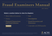 Fraud Examiners Manual 2021 Edition Select a section below to view its chapters: Main Table of Contents Law Preface Investigation Financial Transactions and Fraud Schemes Fraud Prevention and Deterrence SEARCH Copyright and Bibliography © 2021 Association of Certified Fraud Examiners, Inc. “ACFE,” “CFE,” “Certified Fraud Examiner,” “CFE Exam Prep Course,” “Association of Certified Fraud Examiners,” “Report to the Nations,” the ACFE seal, the ACFE logo, and related trademarks, names, and logos are the property of the Association of Certified Fraud Examiners, Inc., and are registered and/or used in the U.S. and countries around the world. Fraud Examiners Manual Financial Transactions and Fraud Schemes HOME FINANCIAL TRANSACTIONS AND FRAUD SCHEMES Table of Contents Accounting Concepts Financial Statement Fraud Asset Misappropriation: Cash Receipts Asset Misappropriation: Fraudulent Disbursements LAW INVESTIGATION Asset Misappropriation: Inventory and Other Assets Corruption 2021 Edition FRAUD PREVENTION AND DETERRENCE SEARCH Payment Fraud Insurance Fraud Health Care Fraud Theft of Data and Intellectual Property Consumer Fraud Identity Theft Cyberfraud Financial Institution Fraud Contract and Procurement Fraud © 2021 Association of Certified Fraud Examiners, Inc. “ACFE,” “CFE,” “Certified Fraud Examiner,” “CFE Exam Prep Course,” “Association of Certified Fraud Examiners,” “Report to the Nations,” the ACFE seal, the ACFE logo, and related trademarks, names, and logos are the property of the Association of Certified Fraud Examiners, Inc., and are registered and/or used in the U.S. and countries around the world. Fraud Examiners Manual 2021 Edition Law HOME FINANCIAL TRANSACTIONS AND FRAUD SCHEMES LAW INVESTIGATION FRAUD PREVENTION AND DETERRENCE Table of Contents Tax Fraud Overview of the Legal System Individual Rights During Examinations The Law Related to Fraud The Criminal Justice System Bankruptcy (Insolvency) Fraud The Civil Justice System Securities Fraud Basic Principles of Evidence Money Laundering Testifying © 2021 Association of Certified Fraud Examiners, Inc. “ACFE,” “CFE,” “Certified Fraud Examiner,” “CFE Exam Prep Course,” “Association of Certified Fraud Examiners,” “Report to the Nations,” the ACFE seal, the ACFE logo, and related trademarks, names, and logos are the property of the Association of Certified Fraud Examiners, Inc., and are registered and/or used in the U.S. and countries around the world. SEARCH Fraud Examiners Manual 2021 Edition Investigation HOME FINANCIAL TRANSACTIONS AND FRAUD SCHEMES LAW INVESTIGATION Table of Contents Sources of Information Planning and Conducting a Fraud Examination Data Analysis and Reporting Tools Collecting Evidence Digital Forensics Interview Theory and Application Tracing Illicit Transactions Interviewing Suspects and Signed Statements Report Writing Covert Operations FRAUD PREVENTION AND DETERRENCE Appendix B: Fraud Examination Checklist Appendix C: Sample Forms Appendix D: Sample Fraud Examination Reports Appendix E: Sample Expert Witness Report Appendix A: Engagement and Advisory Letters © 2021 Association of Certified Fraud Examiners, Inc. “ACFE,” “CFE,” “Certified Fraud Examiner,” “CFE Exam Prep Course,” “Association of Certified Fraud Examiners,” “Report to the Nations,” the ACFE seal, the ACFE logo, and related trademarks, names, and logos are the property of the Association of Certified Fraud Examiners, Inc., and are registered and/or used in the U.S. and countries around the world. SEARCH Fraud Examiners Manual 2021 Edition Fraud Prevention and Deterrence HOME FINANCIAL TRANSACTIONS AND FRAUD SCHEMES LAW INVESTIGATION FRAUD PREVENTION AND DETERRENCE Table of Contents Fraud Prevention Programs Understanding Criminal Behavior Fraud Risk Assessment White-Collar Crime Fraud Risk Management Corporate Governance Ethics for Fraud Examiners Management’s Fraud-Related Responsibilities ACFE Code of Professional Ethics Auditors’ Fraud-Related Responsibilities CFE Code of Professional Standards © 2021 Association of Certified Fraud Examiners, Inc. “ACFE,” “CFE,” “Certified Fraud Examiner,” “CFE Exam Prep Course,” “Association of Certified Fraud Examiners,” “Report to the Nations,” the ACFE seal, the ACFE logo, and related trademarks, names, and logos are the property of the Association of Certified Fraud Examiners, Inc., and are registered and/or used in the U.S. and countries around the world. SEARCH MENU © 1990–2021 Association of Certified Fraud Examiners, Inc. The original purchaser of this volume is authorized to print one copy solely for their personal use. The original purchaser may also reproduce in any form or by any means up to 25 pages contained in this work for noncommercial or educational use. Such reproduction requires no further permission from the authors or publisher and/or payment of any permission fee as long as proper credit is given. Except as specified above, no portion of this work may be reproduced or transmitted in any form or by any means, electronic or mechanical, including photocopying, recording, or by any information storage and retrieval system without the written permission of the ACFE. ISBN 978-1-889277-85-1 716 West Avenue Austin, Texas 78701 United States of America (800) 245-3321/(512) 478-9000 ACFE.com DISCLAIMER No publication could cover all of the rules and regulations applicable for every country around the globe. The editors of this work have attempted to provide general information about concepts and methods of fraud detection, investigation, and prevention that are commonly used worldwide. Because this publication is a compendium of information from various countries and jurisdictions, the specific laws, rules, regulations, and terminology may (and probably will) vary in your area. Every effort has been made to ensure that the contents of this publication are accura