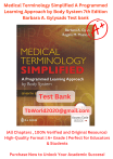 Medical Terminology Simplified A Programmed Learning Approach by Body System 7th Edition Barbara A. Gylysads Test bank Test Bank TbWorld2020@gmail.com (All Chapters , 100% Verified and Original Resource) High-Quality Format | A+ Grade | Perfect for Educators & Students Purchase Now to Unlock Your Academic Success! Chapter 1: Introduction to Programmed Learning and Medical Word Building Multiple Choice Identify the choice that best completes the statement or answers the question. ____ 1. Which suffix means decrease, deficiency? A. -rrhea B. -rrhage C. -rrhexis D. -penia E. -iasis ____ 2. What is the meaning of gastr/o? A. mouth B. intestine C. stomach D. liver E. bladder ____ 3. To build a medical word, use a combining form (CF) to link a suffix that begins with a(n): A. “a.” B. “o.” C. vowel. D. consonant. E. “e.” ____ 4. Which word element is a word root? A. hepatB. hepatoC. hepatomD. -megaly E. hepatomegaly ____ 5. A CF is a word root plus a: A. prefix. B. vowel. C. suffix. D. word root. E. consonant. ____ 6. Which word element is an adjective suffix? A. -oma B. -penia C. -itis D. -ic E. -ia ____ 7. Which element is always located at the beginning of a medical word? Copyright © 2019 F. A. Davis Company A. word root B. suffix C. combining vowel D. prefix E. combining form ____ 8. What does the word root usually indicate? A. position B. number C. condition D. body part E. procedure ____ 9. What does the prefix in post-mortem mean? A. before B. after C. death D. life E. beyond ____ 10. Arthr/o/centesis is a surgical puncture of a joint. In this word, arthr/o is a: A. prefix. B. suffix. C. word root. D. combining vowel. E. combining form. ____ 11. A therm/o/meter is an instrument for measuring temperature. In this word, -meter is a(n): A. adjective. B. verb. C. combining form. D. compound word. E. suffix. ____ 12. Which word is an example of a combining vowel used to link one root to another root? A. gastr/itis B. gastr/o/dynia C. gastr/o/esophag/itis D. gastr/o/megaly E. gastr/oma ____ 13. Which word is built correctly? A. my/algia B. nephr/dynia C. aden/o/oid D. gastr/plasty E. py/rrhea ____ 14. The suffix -itis means: Copyright © 2019 F. A. Davis Company A. pain. B. blood. C. excision. D. rupture. E. inflammation. ____ 15. Which word contains a prefix? A. hyperthermia B. gastric C. thermometer D. nephritis E. cardiac ____ 16. The i in the term pelv/i/metry is called a: A. word root. B. combining form. C. suffix. D. combining vowel. E. consonant. ____ 17. Vowels marked with a macron (-) indicate a: A. short sound. B. stress. C. silent letter. D. long sound. E. diphthong. ____ 18. Oste/o/chondr/itis is an example of a: A. suffix that begins with a consonant. B. simple word. C. compound word. D. medical word containing a prefix. E. word with only one word element. ____ 19. The oe in roentgen is pronounced: A. e. B. oy. C. u. D. o. E. a. ____ 20. In medical terms, ch (as in cholera) is pronounced: A. “chal.” B. “cha.” C. “k.” D. “aitch.” E. “cee.” ____ 21. To make words ending in y plural: Copyright © 2019 F. A. Davis Company A. retain the y and add es. B. drop the y and add es. C. drop the y and add i. D. retain the y and add s. E. drop the y and add ies. ____ 22. The plural form of diagnosis is: A. diagnose. B. diagnostic. C. diagnosia. D. diagnoses. E. diagnosticians. ____ 23. What does the suffix -ior mean? A. small B. specialist C. condition D. pertaining to E. treatment ____ 24. What is the plural form of appendix? A. appendamata B. appendises C. appendices D. appendae E. appendia ____ 25. What is the adjective form of axilla? A. axillar B. axillary C. axilliac D. axillae E. axillic ____ 26. What is the plural form of radius? A. radii B. radium C. radiae D. radious E. radial ____ 27. What is the plural form of nucleus? A. nuclear B. nucleolus C. nuclei D. nucleic E. nucleii ____ 28. Which word means surgical fracture of a bone? Copyright © 2019 F. A. Davis Company A. oste/o/malacia B. oste/o/blast C. oste/o/clasis D. oste/o/gen E. oste/o/metry ____ 29. Which word means rupture of an artery? A. arthritis B. arthrodynia C. arteriorrhexis D. arthrodesis E. arthralgia ____ 30. Which word means instrument for measuring the pelvis? A. pelviscope B. pelvimetry C. pelvitomer D. pelvimeter E. pelvometer ____ 31. In the term chol/e/lith/iasis, the element lith is a: A. combining form. B. suffix. C. prefix. D. combining vowel. E. word root. ____ 32. Which term means pain in a nerve? A. neuroblast B. neuralgia C. neuroclonic D. neuroglia E. neurogenic ____ 33. What does the suffix -edema mean? A. vomiting B. softening C. condition D. swelling E. tumor ____ 34. Which suffix means pain? A. -algia B. -emesis C. -plasia D. -ectasis E. -poiesis ____ 35. What does the term gastritis mean? Copyright © 2019 F. A. Davis Company A. excision of the stomach B. pain in the stomach C. hemorrhage of the stomach D. inflammation of the stomach E. incision of the stomach ____ 36. Which word means double vision? A. bivisual B. divisual C. monopia D. diplopia E. bilateral ____ 37. Which prefix means around? A. transB. diaC. supraD. circumE. esto____ 38. The prefix dia- means: A. away from. B. within. C. wide. D. against. E. through, across. ____ 39. What is the term that means without a breast? A. amastia B. dysmastia C. eumastia D. hemimastia E. supermastia ____ 40. The prefix hypo- means: A. excessive. B. below. C. slow. D. between. E. above. ____ 41. Which term means first pregnancy? A. multigravida B. primigravida C. polygravida D. agravida E. homogravida ____ 42. The prefix homo- means: Copyright © 2019 F. A. Davis Company A. against. B. good. C. all. D. same. E. union. ____ 43. Which word refers to transplantation of healthy tissue from one part of the body to another part of the body in the same person? A. xen/o/graft B. allo/graft C. homo/graft D. auto/graft E. heter/o/graft ____ 44. What is the word element at the beginning of the terms intra/muscul/ar, post/nat/al, and