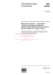 INTERNATIONAL STANDARD ISO 22309 Second edition 2011-10-15 Microbeam analysis — Quantitative analysis using energy-dispersive spectrometry (EDS) for elements with an atomic number of 11 (Na) or above Analyse par microfaisceaux — Analyse élémentaire quantitative par spectrométrie à sélection d’énergie (EDS) des éléments ayant un numéro atomique de 11 (Na) ou plus iTeh STANDARD PREVIEW (standards.iteh.ai) ISO 22309:2011 https://standards.iteh.ai/catalog/standards/sist/d0af68a2-6f86-4874-b6612671d6b8c3f5/iso-22309-2011 Reference number ISO 22309:2011(E) © ISO 2011 ISO 22309:2011(E) iTeh STANDARD PREVIEW (standards.iteh.ai) ISO 22309:2011 https://standards.iteh.ai/catalog/standards/sist/d0af68a2-6f86-4874-b6612671d6b8c3f5/iso-22309-2011 COPYRIGHT PROTECTED DOCUMENT © ISO 2011 All rights reserved. Unless otherwise specified, no part of this publication may be reproduced or utilized in any form or by any means, electronic or mechanical, including photocopying and microfilm, without permission in writing from either ISO at the address below or ISO’s member body in the country of the requester. ISO copyright office Case postale 56 • CH-1211 Geneva 20 Tel. + 41 22 749 01 11 Fax + 41 22 749 09 47 E-mail copyright@iso.org Web www.iso.org Published in Switzerland ii © ISO 2011 – All rights reserved ISO 22309:2011(E) Contents Page Foreword ............................................................................................................................................................................ iv Introduction ....................................................................................................................................................................... v 1 Scope ...................................................................................................................................................................... 1 2 Normative references ......................................................................................................................................... 1 3 Terms and definitions ......................................................................................................................................... 2 4 Specimen preparation ........................................................................................................................................ 5 5 Preliminary precautions .................................................................................................................................... 6 6 Analysis procedure ............................................................................................................................................. 7 7 7.1 7.2 7.3 7.4 7.5 7.6 7.7 7.8 7.9 Data reduction ...................................................................................................................................................... 9 General ................................................................................................................................................................... 9 Identification of peaks ........................................................................................................................................ 9 Estimation of peak intensity ............................................................................................................................. 9 Calculation of k-ratios ...................................................................................................................................... 10 Matrix effects ...................................................................................................................................................... 10 Use of reference materials .............................................................................................................................. 10 Standardless analysis ...................................................................................................................................... 10 Uncertainty of results ....................................................................................................................................... 11 Reporting of results .......................................................................................................................................... 12 iTeh STANDARD PREVIEW (standards.iteh.ai) .................................................................................................. 15 Annex B (informative) Peak identity/interferences Annex A (informative) The assignment of spectral peaks to their elements .................................................... 13 Annex C (informative) Factors affecting the uncertainty of a result................................................................... 17 ISO 22309:2011 Annex D (informative) Analysis of elements with atomic number < 11 .............................................................. 19 https://standards.iteh.ai/catalog/standards/sist/d0af68a2-6f86-4874-b661Annex E (informative) Example data 2671d6b8c3f5/iso-22309-2011 from a reproducibility study within a laboratory and between laboratories ......................................................................................................................................................... 20 Bibliography ..................................................................................................................................................................... 22 © ISO 2011 – All rights reserved iii ISO 22309:2011(E) Foreword ISO (the International Organization for Standardization) is a worldwide federation of national standards bodies (ISO member bodies). The work of preparing International Standards is normally carried out through ISO technical committees. Each member body interested in a subject for which a technical committee has been established has the right to be represented on that committe