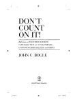 DON'T COUNT ONIT! Reflections on INVESTMENT lLLuSIO:"'S, CAPITALISM, "MUTCAL" FUNDS, INDEXL~G, E.\ITREPRE.\ffiURSHIP, IDEALISM, and HEROES JOHN C. BOGLE G1 WILEY John Wiley & Sons, Inc. \ ffirs.indd iii 9/21/10 1:13:28 PM l Contents Foreword Introduction A Note to the Reader xi xv xxxi Part One. Investment Illusions Chapter 1 Chapter 2 Chapter 3 Chapter 4 1 Don’t Count on It! The Perils of Numeracy The Relentless Rules of Humble Arithmetic The Telltale Chart A Question So Important That It Should Be Hard to Think about Anything Else The Uncanny Ability to Recognize the Obvious 5 25 49 Part Two. The Failure of Capitalism 97 What Went Wrong in Corporate America? Fixing a Broken Financial System Vanishing Treasures: Business Values and Investment Values Chapter 9 A Crisis of Ethic Proportions Chapter 10 Black Monday and Black Swans Chapter 11 The Go-Go Years 101 123 Chapter 5 Chapter 6 Chapter 7 Chapter 8 71 87 137 157 161 187 vii Toc.indd vii 9/22/10 8:47:08 AM viii contents Part Three. What’s Wrong with “Mutual” Funds Chapter 12 Re-Mutualizing the Mutual Fund Industry: The Alpha and the Omega Chapter 13 A New Order of Things: Bringing Mutuality to the “Mutual” Fund Chapter 14 The Fiduciary Principle: No Man Can Serve Two Masters Chapter 15 Mutual Funds at the Millennium: Fund Directors and Fund Myths Chapter 16 “High Standards of Commercial Honor . . . Just and Equitable Principles of Trade . . . Fair Dealing with Investors” Part Four. What’s Right with Indexing Chapter 17 Success in Investment Management: What Can We Learn from Indexing? Chapter 18 As the Index Fund Moves from Heresy to Dogma, What More Do We Need to Know? Chapter 19 “The Chief Cornerstone” Chapter 20 Convergence! The Great Paradox: Just as Active Fund Management Becomes More and More Like Passive Indexing, So Passive Indexing Becomes More and More Like Active Fund Management Part Five. Entrepreneurship and Innovation Chapter 21 Capitalism, Entrepreneurship, and Investing: The 18th Century versus the 21st Century Chapter 22 Seventeen Rules of Entrepreneurship Chapter 23 “Vanguard: Saga of Heroes” Chapter 24 When Does Innovation Go Too Far? Toc.indd viii 203 207 237 273 297 317 347 351 369 393 409 435 439 455 469 493 9/22/10 8:47:08 AM Contents ix Part Six. Idealism and the New Generation 507 Chapter 25 Business as a Calling Chapter 26 The Right Kind of Success Chapter 27 “This Above All: To Thine Own Self Be True” Chapter 28 “Enough” Chapter 29 If You Can Trust Yourself . . . Chapter 30 The Fifth “Never” Chapter 31 “When a Man Comes to Himself ” 511 517 521 529 535 543 549 Part Seven. Heroes and Mentors Toc.indd ix 557 Chapter 32 Walter L. Morgan Chapter 33 Paul A. Samuelson Chapter 34 Peter L. Bernstein Chapter 35 Bernard Lown, MD 563 569 575 581 Index 587 9/22/10 8:47:09 AM Chapter 31 “When a Man Comes to Himself” * F irst of all, hearty congratulations to each one of you on graduation from this wonderful school. I imagine that Isaiah Vansant Williamson, the man of Scots heritage who founded your school some 120 years ago, is looking down on you from above on this bright afternoon, quietly reveling as 61 of those whom he called “his boys” are handed the diplomas that recognize that you have stayed the course; you have completed it successfully; you now begin a new course in your life. You are no longer boys; you have become men. And somewhere along the long road of life that will follow, each of you will “come to yourself,” an expression that, sadly, has fallen out of use. That is my theme today, inspired by an essay entitled, “When a Man Comes to Himself,” written in 1901 by Woodrow Wilson, shortly before he became president of my own alma mater, Princeton University.† In 1912, Wilson would become the 28th president of the United States of America. * Based on a commencement address at The Williamson Free School of Mechanical Trades, Media, Pennsylvania, on May 28, 2009. † Woodrow Wilson, When a Man Comes to Himself (New York: Harper & Brothers, 1901). 549 CH031.indd 549 9/21/10 11:30:55 AM 550 idealism and the new generation When does a man come to himself ? When do you learn who you are? When do you find your place in society? There is no fixed time; we come to ourselves on our own schedule. Some of you may have gotten there already; most of you will get there before too many more years have passed; some all at once, others imperceptibly, by degrees; and, as Wilson knew, “some men never come to themselves at all,” perhaps the sadness of never finding one’s place in the world, perhaps the tragedy of a life cut short. But given the remarkable skills you have acquired right here on this magnificent campus, the dedicated teachers and mentors who have given of themselves to you, and your inculcation into the Isaiah Williamson Free School philosophy of service to society, I have no doubt that the world you seek will be yours. Wilson recognized that coming to yourself is not determined by the passage of time, but by the passage of the spirit. Using Wilson’s ageless words: It is in real truth that common life of mutual helpfulness, stimulation, and contest which gives leave and opportunity to the individual life makes coming to yourself possible, makes it full and complete. . . . In discovering your own place and force, if you seek intelligently and with eyes that see, you find more than ease of spirit and scope for your mind. You find yourself, as if mists had cleared away about you and you know at last your neighborhood among men and tasks.* Likely it is that Isaiah Williamson came to himself well before he reached manhood, for he was a remarkable youth. According to his biographer, John Wanamaker (yes, the Philadelphia merchant prince), young Isaiah was “an apt, enthusiastic scholar, a boy who did a man’s work; never tired, never absent, never idle; a lad of manly ways, of merit, integrity and industry; a lad who threw himself into the whirl of work