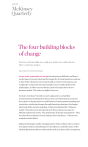 April 2016 The four building blocks of change Four key actions influence employee mind-sets and behavior. Here’s why they matter. Tessa Basford and Bill Schaninger Large-scale organizational change has always been difficult, and there’s no shortage of research showing that a majority of transformations continue to fail. Today’s dynamic environment adds an extra level of urgency and complexity. Companies must increasingly react to sudden shifts in the marketplace, to other external shocks, and to the imperatives of new business models. The stakes are higher than ever. So what’s to be done? In both research and practice, we find that transformations stand the best chance of success when they focus on four key actions to change mind-sets and behavior: fostering understanding and conviction, reinforcing changes through formal mechanisms, developing talent and skills, and role modeling. Collectively labelled the “influence model,” these ideas were introduced more than a dozen years ago in a McKinsey Quarterly article, “The psychology of change management.” They were based on academic research and practical experience—what we saw worked and what didn’t. Digital technologies and the changing nature of the workforce have created new opportunities and challenges for the influence model (for more on the relationship between those trends and the model, see this article’s companion, “Winning hearts and minds in the 21st century,” on McKinsey.com). But it still works overall, a decade and a half later (exhibit). In a recent McKinsey Global Survey, we examined successful transformations and found that they were nearly eight times more likely to use all four actions as opposed to just one.1 Building both on classic and new academic research, the present article supplies a primer on the model and its four building blocks: what they are, how they work, and why they matter. 1 See “The science of organizational transformations,” September 2015, McKinsey.com. Web 2016 Four building blocks Exhibit Exhibit1 of 1 The influence model, with its four building blocks of change, still works. Why it works People seek congruence between their beliefs and actions—believing in the “why” inspires them to behave in support of a change. Why it works People mimic individuals and groups who surround them— sometimes consciously, and sometimes unconsciously. Role modeling Fostering understanding and conviction “I see my leaders, colleagues, and staff behaving differently.” Developing talent and skills “I understand what is being asked of me, and it makes sense.” “I will change my mind-set and behavior if …” “I have the skills and opportunities to behave in the new way.” Why it works You can teach an old dog new tricks— our brains remain plastic into adulthood. 2 Reinforcing with formal mechanisms “I see that our structures, processes, and systems support the changes I am being asked to make.” Why it works Associations and consequences shape behavior— though all too often organizations reinforce the wrong things. FOSTERING UNDERSTANDING AND CONVICTION We know from research that human beings strive for congruence between their beliefs and their actions and experience dissonance when these are misaligned. Believing in the “why” behind a change can therefore inspire people to change their behavior. In practice, however, we find that many transformation leaders falsely assume that the “why” is clear to the broader organization and consequently fail to spend enough time communicating the rationale behind change efforts. This common pitfall is predictable. Research shows that people frequently overestimate the extent to which others share their own attitudes, beliefs, and opinions—a tendency known as the false-consensus effect. Studies also highlight another contributing phenomenon, the “curse of knowledge”: people find it difficult to imagine that others don’t know something that they themselves do know. To illustrate this tendency, a Stanford study asked participants to tap out the rhythms of well-known songs and predict the likelihood that others would guess what they were. The tappers predicted that the listeners would identify half of the songs correctly; in reality, they did so less than 5 percent of the time.2 Therefore, in times of transformation, we recommend that leaders develop a change story that helps all stakeholders understand where the company is headed, why it is changing, and why this change is important. Building in a feedback loop to sense how the story is being received is also useful. These change stories not only help get out the message but also, recent research finds, serve as an effective influencing tool. Stories are particularly effective in selling brands.3 Even 15 years ago, at the time of the original article, digital advances were starting to make employees feel involved in transformations, allowing them to participate in shaping the direction of their companies. In 2006, for example, IBM used its intranet to conduct two 72-hour “jam sessions” to engage employees, clients, and other stakeholders in an online debate about business opportunities. No fewer than 150,000 visitors attended from 104 countries and 67 different companies, and there were 46,000 posts.4 As we explain in “Winning hearts and minds in the 21st century,” social and mobile technologies have since created a wide range of new opportunities to build the commitment of employees to change. 3 2 Chip Heath and Dan Heath, “The curse of knowledge,” Harvard Business Review, December 2006, Volume 8, Number 6, hbr.org. 3 Harrison Monarth, “The irresistible power of storytelling as a strategic business tool,” Harvard Business Review, March 11, 2014, hbr.org. 4 Icons of Progress, “A global innovation jam,” ibm.com. REINFORCING WITH FORMAL MECHANISMS Psychologists have long known that behavior often stems from direct association and reinforcement. Ba