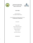 Space Dodge A project presented to The College of Computer Studies In Partial Fulfillment of the Requirements for the course Fundamentals of Programming Presented By: Duran, Lemuel Estayani, Khristian Maenard G. Fallaria, Charles Edward A. Gabriel, Ryza Marie C. Gianan, Andria H Santos, Jerine Alyanna F. December 2024 TABLE OF CONTENTS TITLE PAGE ………………………………………………………..…….……..….…... i TABLE OF CONTENTS .…………………………….…………………………...…..…... ii CHAPTER I A. PROJECT DESCRIPTION……………………….………………….…….….....…. 1 B. PROJECT GOALS …………………………………………………………….… 1 C. PROJECT REQUIREMENTS ………………………………………………….…. 1 a. GAME ENGINE …………..……………………………………….…..... 1 b. GRAPHICS ….. …………………………………………………..…….. 2 c. AUDIO ……….…………………………………………………..…….. 3 d. GAME PLAY MECHANICS …………………………………….….……. 3 e. GAME FEATURES ………………………………………………..……... 3 CHAPTER II A. PROJECT MILESTONES AND DEADLINES …………………………………….…. 4 B. TEAM ROLES AND RESPONSIBILITIES ..……………………………………….. 5 C. MOCK UPS………………………………………………………………..…… 6 D. UNIQUE FUNCTIONALITY ………………………………………………….….. 11 CHAPTER III A. PROGRAM SOURCE CODE ……………………………………………….……… 13 B. USERS MANUAL ………………………………………………………..………. 16 C. WEEKLY ACCOMPLISHMENT REPORT FORM …………………………….…..… 17 D. FLOWCHART …………………………………………………………………… 18 2 CHAPTER I PROJECT DESCRIPTION, GOALS AND REQUIREMENTS The game was a 2D arcade game, and the players needed to avoid the falling objects from hitting the spaceship to maintain their current health and score the game. The target audience of this game is the players who range in age from 7 to 18 years old. A. PROJECT DESCRIPTION Our final game called "Space Dodge" was completed as a result of our group's brainstorming, which included a variety of ideas and concepts. This is a 2D arcade game in which it tests the players' reflexes and decision-making skills as they dodge the falling objects in space. The speed of falling objects increases as the score increases, making it more challenging and exciting to play. B. PROJECT GOALS The main goal of this game is to engage the players and make them have fun while making use of their skills when it comes to quick thinking, as the game requires clever tactics to avoid the objects from hitting the spaceship. It will also improve their concentration, as they need to observe the speed and intervals of falling objects while collecting gasoline items to replenish their spaceship health. C. PROJECT REQUIREMENTS There are several tools required to ensure the smooth development and optimal performance of our final game project. This section includes an overview of the game engine, graphics, audio, gameplay mechanics, and game features. a. GAME ENGINE 1 This section shows the game engine of the game. For the game engine, we take into consideration the compatibility of it with C++, our game's dimensions and genre that we were planning to create. We also take into account the system requirements of the engine, as some have large file sizes that could be hard to handle or run on our devices. To ensure we chose the best option, we tested a few engines to determine which would meet the desired needs of our game. We used Visual Studio as our IDE (Integrated Development Environment) for its compatibility and user-friendly interface that makes navigation easy. It also supports multi-language, which makes it more ideal for C++ game development. For the graphics and multimedia elements, we decided to use SFML (Simple and Fast Multimedia Library), seeing that it has the tools to handle 2D graphics and other multimedia tasks. b. GRAPHICS This section shows the graphics of the game. The environment set up of Space Dodge is in outer space with a visually captivating cosmic view of nebulae and vibrant stars. Using SFML for 2D graphics, the game achieves the concept we were working for. The player's spaceship, centrally located at the bottom of the screen, can be easily controlled, allowing smooth navigation to avoid obstacles. Asteroidlike objects serve as the obstacles descending from the top of the screen with various sizes and speeds that add creative visual and gameplay dynamics. Gasoline collectibles appeared randomly that serve to replenish 2 the player's spaceship health. These graphical elements help to create a fun and engaging experience for the players. c. AUDIO This section is for the audio of the game. Retro - Background music to desire the previous generation of games. Bizzare & Alien - Strange sound that mimics the sound in outerspace, in the form of distorted frequency. Sci-fi - Futuristic and Mechanical sounds. d. GAME PLAY MECHANICS This section shows how the mechanics of the game works. Mechanics: ● Move Up, Down, Left, Right ● Avoid abrasive object ● Collect Gas for HP ● Reach High-Score e. GAME FEATURES This section shows the game features. Features: 3 ● Unique 2D graphics A physics engine that simulates realistic movements and interactions within the 2D world, affecting how objects fall or collide. ● Unique audio A comfortable and funny sound that makes the game. ● Simple Controls 2D games often focus on easy-to-learn controls, making them accessible to a wide audience. ● Endlessly Scores Set a better score infinitely surpassing the past score. 4 CHAPTER II PROJECT MILES