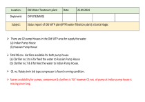 Spares availability for pumps, compressor & clarifiers is ‘Nil’ however 01 nos. of pump at Indian pump house is