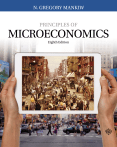 Copyright 2018 Cengage Learning. All Rights Reserved. May not be copied, scanned, or duplicated, in whole or in part. WCN 02-200-203 Firm Behavior and the Organization of Industry 13 The Costs of Production 14 Firms in Competitive Markets The theory of the firm sheds light on the decisions that lie behind supply in competitive markets. 15 Monopoly 16 Monopolistic Competition Firms with market power can cause market outcomes to be inefficient. 17 Oligopoly The Economics of Labor Markets 18 The Markets for the Factors of Production 19 Earnings and Discrimination These chapters examine the special features of labor markets, in which most people earn most of their income. 20 Income Inequality and Poverty Topics for Further Study 21 The Theory of Consumer Choice 22 Frontiers of Microeconomics Additional topics in microeconomics include household decision making, asymmetric information, political economy, and behavioral economics. Copyright 2018 Cengage Learning. All Rights Reserved. May not be copied, scanned, or duplicated, in whole or in part. WCN 02-200-203 Copyright 2018 Cengage Learning. All Rights Reserved. May not be copied, scanned, or duplicated, in whole or in part. WCN 02-200-203 PRINCIPLES OF MICROECONOMICS Eighth Edition N. GREGORY MANKIW H ARVAR D U N IVER SITY Copyright 2018 Cengage Learning. All Rights Reserved. May not be copied, scanned, or duplicated, in whole or in part. WCN 02-200-203 Copyright 2018 Cengage Learning. All Rights Reserved. May not be copied, scanned, or duplicated, in whole or in part. WCN 02-200-203 PRINCIPLES OF MICROECONOMICS Eighth Edition N. GREGORY MANKIW H ARVAR D U N IVER SITY Australia • Brazil • Mexico • Singapore • United Kingdom • United States Copyright 2018 Cengage Learning. All Rights Reserved. May not be copied, scanned, or duplicated, in whole or in part. WCN 02-200-203 Principles of Microeconomics, 8e N. Gregory Mankiw Vice President, General Manager, Social Science & Qualitative Business: Erin Joyner Product Director: Jason Fremder Senior Product Manager: Michael Parthenakis Developmental Editor: Jane Tufts Senior Digital Content Designer: Kasie Jean Senior Content Developer: Anita Verma Content Development Manager: Clara Goosman Product Assistant: Emily Lehmann Executive Marketing Manager: John Carey Senior Content Project Manager: Colleen A. Farmer © 2018, 2015 Cengage Learning ALL RIGHTS RESERVED. No part of this work covered by the copyright herein may be reproduced or distributed in any form or by any means, except as permitted by U.S. copyright law, without the prior written permission of the copyright owner. For product information and technology assistance, contact us at Cengage Learning Customer & Sales Support, 1-800-354-9706 For permission to use material from this text or product, submit all requests online at www.cengage.com/permissions Further permissions questions can be emailed to permissionrequest@cengage.com Unless otherwise noted, all items © Cengage Learning. Library of Congress Control Number: 2016947883 ISBN 13: 978-1-305-97149-3 Senior Digital Production Project Manager: Derek Drifmeyer ISBN 10: 1-305-97149-3 Manufacturing Planner: Kevin Kluck Cengage Learning 20 Channel Center Street Boston, MA 02210 USA Marketing Coordinator: Casey Binder Senior Learning Design Author: Eugenia Belova Learning Design Author: Brian A. Rodriguez Production Service: Lumina Datamatics Inc., Intellectual Property Analyst: Jennifer Bowes Project Manager: Sarah Shainwald Cengage Learning is a leading provider of customized learning solutions with employees residing in nearly 40 different countries and sales in more than 125 countries around the world. Find your local representative at www.cengage.com. Senior Art Director: Michelle Kunkler Internal and Cover Designer: Harasymczuk Design Cover Image: Library of Congress Prints and Photographs Division Washington, DC 20540 USA [LC-USZC4-4637]; © AIMSTOCK/Getty Images; © Buena Vista Images/Getty Images Cengage Learning products are represented in Canada by Nelson Education, Ltd. To learn more about Cengage Learning Solutions, visit www.cengage.com Purchase any of our products at your local college store or at our preferred online store www.cengagebrain.com Chapter Opener Photo: © samsonovs/Getty Images Custom Internal Illustrations: Bruce Morser Printed in the United States of America Print Number: 01 Print Year: 2016 Copyright 2018 Cengage Learning. All Rights Reserved. May not be copied, scanned, or duplicated, in whole or in part. WCN 02-200-203 To Catherine, Nicholas, and Peter, my other contributions to the next generation Copyright 2018 Cengage Learning. All Rights Reserved. May not be copied, scanned, or duplicated, in whole or in part. WCN 02-200-203 Copyright 2018 Cengage Learning. All Rights Reserved. May not be copied, scanned, or duplicated, in whole or in part. WCN 02-200-203 Jordi Cabré About the Author N. Gregory Mankiw is the Robert M. Beren Professor of Economics at Harvard University. As a student, he studied economics at Princeton University and MIT. As a teacher, he has taught macroeconomics, microeconomics, statistics, and principles of economics. He even spent one summer long ago as a sailing instructor on Long Beach Island. Professor Mankiw is a prolific writer and a regular participant in academic and policy debates. His work has been published in scholarly journals, such as the American Economic Review, Journal of Political Economy, and Quarterly Journal of Economics, and in more popular forums, such as the New York Times and The Wall Street Journal. He is also author of the best-selling intermediate-level textbook Macroeconomics (Worth Publishers). In addition to his teaching, research, and writing, Professor Mankiw has been a research associate of the National Bureau of Economic Research, an adviser to the Congressional Budget Office and the Federal Reserve Banks of Boston and New York, and a member of the ETS test development committee for the Advan