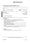 Cambridge International AS & A Level CANDIDATE NAME CENTRE NUMBER CANDIDATE NUMBER *6482658238* MATHEMATICS 9709/12 Paper 1 Pure Mathematics 1 February/March 2022 1 hour 50 minutes You must answer on the question paper. You will need: List of formulae (MF19) INSTRUCTIONS ³ Answer all questions. ³ Use a black or dark blue pen. You may use an HB pencil for any diagrams or graphs. ³ Write your name, centre number and candidate number in the boxes at the top of the page. ³ Write your answer to each question in the space provided. ³ Do not use an erasable pen or correction fluid. ³ Do not write on any bar codes. ³ If additional space is needed, you should use the lined page at the end of this booklet; the question number or numbers must be clearly shown. ³ You should use a calculator where appropriate. ³ You must show all necessary working clearly; no marks will be given for unsupported answers from a calculator. ³ Give non-exact numerical answers correct to 3 significant figures, or 1 decimal place for angles in degrees, unless a different level of accuracy is specified in the question. INFORMATION ³ The total mark for this paper is 75. ³ The number of marks for each question or part question is shown in brackets [ ]. This document has 20 pages. Any blank pages are indicated. JC22 03_9709_12/FP © UCLES 2022 [Turn over 2 BLANK PAGE © UCLES 2022 9709/12/F/M/22 3 1 −1 1 A curve with equation y = f x is such that f ′ x = 2x 3 − x 3 . It is given that f 8 = 5. Find f x. [4] ................................................................................................................................................................ ................................................................................................................................................................ ................................................................................................................................................................ ................................................................................................................................................................ ................................................................................................................................................................ ................................................................................................................................................................ ................................................................................................................................................................ ................................................................................................................................................................ ................................................................................................................................................................ ................................................................................................................................................................ ................................................................................................................................................................ ................................................................................................................................................................ ................................................................................................................................................................ ................................................................................................................................................................ ................................................................................................................................................................ ................................................................................................................................................................ ................................................................................................................................................................ ................................................................................................................................................................ ................................................................................................................................................................ ................................................................................................................................................................ ................................................................................................................................................................ ................................................................................................................................................................ ................................................................................................................................................................ ................................................................................................................................................................ © UCLES 2022 9709/12/F/M/22 [Turn over 4 2 A curve has equation y = x2 + 2cx + 4 and a straight line has equation y = 4x + c, where c is a constant. Find the set of values of c for which the curve and line intersect at two distinct points. [5] ................................................................................................................................................................ ................................................................................................................................................................ ...........................................................