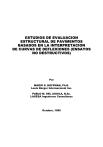 ESTUDIOS DE EVALUACION ESTRUCTURAL DE PAVIMENTOS BASADOS EN LA INTERPRETACION DE CURVAS DE DEFLEXIONES (ENSAYOS NO DESTRUCTIVOS) Por MARIO S. HOFFMAN, Ph.D. Louis Berger Internacional Inc. PABLO M. DEL AGUILA, B.Sc. LAGESA Ingenieros Consultores Octubre, 1985 1 INTRODUCCION 1.1 GENERALIDADES La evaluación estructural de pavimentos consiste, básicamente, en la determinación de la capacidad portante del sistema pavimento-subrasante en una estructura vial existente, en cualquier momento de su vida de servicio, para establecer y cuantificar las necesidades de rehabilitación, cuando el pavimento se acerca al fin de su vida útil o cuando el pavimento va a cambiar su función (un nuevo tipo de avión en un aeropuerto existente, por ejemplo). Las necesidades de evaluar estructuralmente los pavimentos de una red aumentan a medida que se completa el diseño y la construcción de una red vial nacional o regional y consecuentemente aumenta la necesidad de su preservación y rehabilitación. Ante un problema de evaluación estructural, el Ingeniero Vial tradicionalmente ha recurrido a la perforación de calicatas, a la toma de muestras para su ensayo en el laboratorio, y al análisis de cada uno de sus componentes (materiales) por separado, para incorporarlos luego en el sistema (pavimento) y deducir acerca de las características estructurales del mismo. Esta metodología es cara, lenta, altera el equilibrio del sistema al perforar y es "destructiva". La alternativa presentada en este estudio es "no destructiva" y se basa en la interpretación de las deflexiones medidas en la superficie de un pavimento. Las deflexiones en la superficie de un pavimento reflejan una respuesta global del sistema pavimento-subrasante bajo una carga dada. Su medición es simple, rápida, económica y "no destructiva", es decir, no se alteran el equilibrio ni la integridad del sistema. La metodología no destructiva se fundamenta en que la forma y dimensión de la 1 curva de deflexiones encierran una valiosa información acerca de las características estructurales del pavimento y su subrasante. Para interpretar esta información en forma cuantitativa, se compara al pavimento-subrasante reales con un modelo matemático utilizando las deflexiones medidas para determinar los parámetros estructurales del sistema. Una vez determinados, estos parámetros estructurales, puede usarse como insumo para establecer las necesidades de refuerzo. Podría decirse entonces que la metodología de evaluación estructural, por métodos no destructivos, es un proceso de diseño inverso ya que utiliza la respuesta del sistema para establecer sus características estructurales, lo cual es generalmente opuesto a un proceso de diseño. Otra característica de la metodología de evaluación no destructiva, es que por constituir la "muestra de ensayo" el pavimento mismo, esta representa el fiel reflejo de la compleja interacción entre sus componentes (capas de materiales y subrasante), y además esta "muestra" puede ser ensayada en cualquier momento de su vida sin disturbarla ni destruirla. El desarrollo de soluciones para modelos matemáticos de pavimentos, la simpleza, rapidez y economía de las mediciones de deflexiones y, el carácter nodestructivo de los ensayos, han contribuido al auge de las metodologías de evaluación estructural de pavimentos en los últimos 20 años. 1.2 OBJETIVOS Este informe presenta una metodología simple para la evaluación estructural de pavimentos basada en la interpretación de curvas de deflexiones, la cual es ilustrada con datos obtenidos durante la Supervisión de la Carretera TalaraCancas. Esta metodología fue desarrollada e implementada en numerosos proyectos en diversos países por Louis Berger International, Inc. 2 Este informe presenta toda la información necesaria para medir, procesar, analizar e interpretar los resultados obtenidos de la metodología de evaluación estructural. Se incluyen, además, numerosos ejemplos de verificación y análisis de sensibilidad de las soluciones obtenidas que permiten apreciar el potencial y la utilidad de las metodologías propuestas. 1.3 METODOLOGIA Para medir las deflexiones en la superficie del pavimento se ha utilizado una "Viga Benkelman" bajo la carga de un eje posterior del orden de las 18 kilolibras y presión de inflado de 75 a 85 psi. La Viga Benkelman, que funciona como una palanca que rota alrededor de un eje fijo, fue usada para medir las deflexiones a varias distancias del eje de la carga (curva de deflexiones). El modelo conocido como el "Modelo de Hogg" constituye la base matemática de la metodología. En este modelo, las capas del pavimento están caracterizadas por una placa de espesor delgado y una cierta rigidez a la flexión. La subrasante está representada por un medio elástico, lineal, homogéneo e isotrópico. La metodología consiste, básicamente, en comparar las curvas de deflexiones medidas, con las curvas de deflexiones teóricas, obtenidas "cargando" el modelo de Hogg con la misma configuración y magnitud de carga utilizada en los ensayos de campo. La concordancia entre una curva experimental con algunas de las teóricas corresponde generalmente a una única combinación de parámetros elásticos del modelo, que de esa manera pasan a caracterizar al pavimento evaluado. La metodología se complementa con otros conceptos de la teoría de capas elásticas y con observaciones experimentales para determinar ciertas propiedades de ingeniería de los materiales que pueden usarse para establecer las necesidades de refuerzo. 3 El procesamiento de los datos puede hacerse en forma manual, usando los gráficos y ecuaciones presentados en este informe, o automáticamente por medio de una computadora personal de tipo CASIO PB100, SHARP 1500 ó similar con una capacidad mínima de 4 Kbytes RAM (Ver Programa en Basic, en el Apéndice A de este informe). 1.4 ALCANCES Y ORGANIZACIÓN DEL TRABAJO El capítulo 2 de este informe detalla la metod