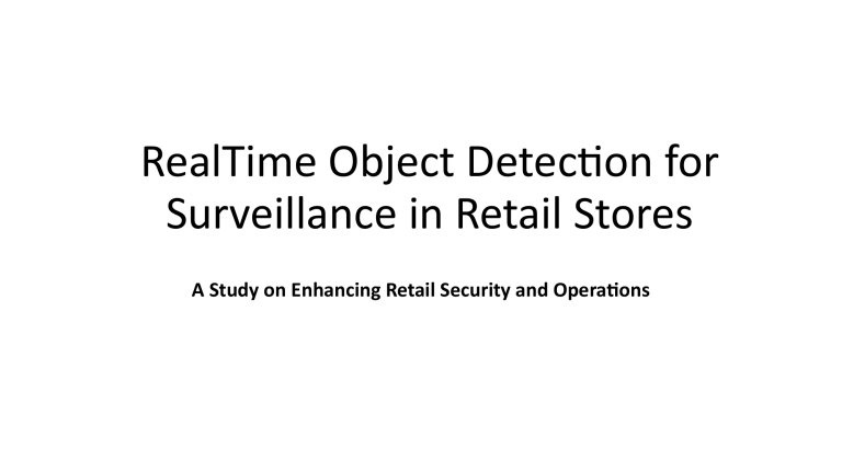 RealTime Object Detection for Surveillance in Retail Stores A Study on Enhancing Retail Security and Operations Introduction • Definition: • Object detection refers to the process of identifying and locating objects within images or video streams. • In a retail context, this involves identifying people, products, and activities in real time. • Key Characteristics: • Real-Time Processing: Immediate analysis and alerts. • Object Localization & Classification: Detects objects (e.g., person, product) and places bounding boxes around them. How Real-Time Object Detection Works in Retail Surveillance • Detection Pipeline: • Data Capture: Video feed from cameras inside the store. • Preprocessing: Frame extraction, noise reduction, and normalization. • Object Localization: AI models identify and mark objects (e.g., shoppers, products). • Classification: Classifying objects into categories like "person," "product," "shopping cart." • Post-processing: Filtering out false detections and sending alerts to security personnel. • Technologies Used: • Convolutional Neural Networks (CNNs) • YOLO (You Only Look Once) • Faster R-CNN • SSD (Single Shot Multibox Detector) Key Benefits of Real-Time Object Detection in Retail Stores 1. Theft Prevention and Detection: • Immediate identification of suspicious behaviour (e.g., shoplifting, loitering). • Automated alerts to store security personnel. 2. Improved Customer Experience: • Monitoring customer interactions with products for better service. • Identifying bottlenecks (e.g., crowded aisles) for better store management. 3. Operational Efficiency: • Tracking product placement and inventory in real-time. • Ensuring products are displayed correctly. 4. Employee Safety and Monitoring: • Detecting employee behaviour in high-risk areas (e.g., backrooms, cash registers). • Ensuring that staff follow safety protocols. Technologies Enabling Real-Time Object Detection • Deep Learning Frameworks: • TensorFlow, PyTorch, and Keras for model development. • Hardware: • GPUs, edge devices, and specialized hardware like TPUs for faster processing. • Cloud vs Edge Computing: • Cloud offers powerful processing but may introduce latency. • Edge computing minimizes latency, ideal for real-time applications. Problem statement Challenges in Retail Stores: • Theft and security breaches • Operational inefficiencies • Poor customer experience Aim and Objectives • Aim: Develop a real-time object detection system for surveillance in retail stores. • Objectives: Design and implement a real-time object detection software. Test and evaluate the system for accuracy and reliability. Provide recommendations for improved security in retail stores. Gather user feedback for further system improvements S/N REF METHODOLOGY RESULTS LIMITATIONS 1 Joseph Redmon (2016) Developed YOLO (You Only Look Once) for real-time object detection by framing detection as a single regression problem. Achieved high-speed detection at 45 frames per second with good accuracy. Makes more struggles with small object localization and makes more localization errors compared to other methods. 2 Ross Girshick (2014) Introduced R-CNN (Regionbased Convolutional Neural Networks) for object detection using region proposals. Improved detection accuracy significantly over previous methods. Slow processing time due to the complex pipeline involving multiple stages. 3 Shaoqing Ren (2015) Developed Faster R-CNN, Achieved faster detection speeds and higher accuracy which integrates region proposal networks with Fast R- compared to R-CNN. CNN. Still not real-time and requires significant computational resources. 4 Wei Liu (2016) Created SSD (Single Shot MultiBox Detector) for object detection using a single deep neural network. Balanced speed and accuracy, making it suitable for real-time applications. Less accurate for small objects compared to other methods. 5 Christian Szegedy (2015) Developed Inception models for image classification and detection, focusing on efficient Achieved state-of-the-art performance in image classification tasks. Complex architecture and high computational requirements. Preliminary Literature Review Scope of the Study • Location and Geographical Area: Focus on urban retail stores in developed regions with stable technology infrastructure. • Retail Sector: Study is limited to brick-and-mortar retail sectors such as supermarkets, fashion, and electronics. • Technological Scope: Focus on existing real-time object detection models (YOLO, SSD, Faster R-CNN). • Timeframe and Data Collection: Data will be collected over 3 to 6 months in selected retail stores. Significance of the study - Detects suspicious behaviour and unauthorized objects, reducing theft and improving safety. - Automates surveillance, helps with inventory management and staff deployment. - Provides insights into customer behaviour, optimizing store layout and marketing strategies. - Reduces reliance on manual monitoring, cutting labour costs. - Ensures incident documentation and regulatory compliance. Limitations of the Study - Study limited to urban areas; may not apply to rural/remote regions. - Focus on specific retail sectors (supermarkets, fashion); results may not apply to others. - Assumes availability of basic tech infrastructure (e.g., cameras, network). - Accuracy may vary depending on store layout and lighting conditions. - Does not fully address privacy and ethical concerns. Justification • This study is essential due to the increasing need for real-time object detection in retail. • It helps improve security, inventory management, and customer experience. • With AI-driven technologies, the study provides practical insights into automating surveillance and supporting digital transformation in retail. Methodology 1. Literature Review: Review existing research on object detection models (YOLO, SSD, Faster R-CNN). 2. System Deployment: Implement rea