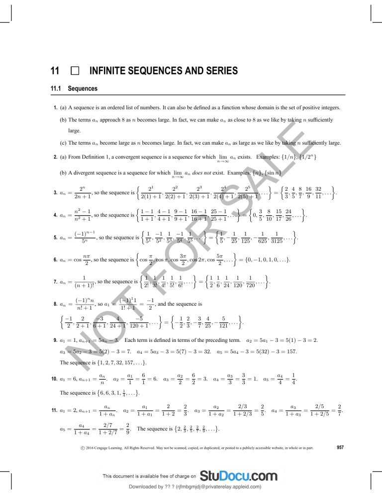 1. (a) A sequence is an ordered list of numbers. It can also be defined as a function whose domain is the set of positive integers.