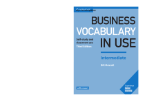 978-0-521-12250-4 Cambridge Business English Dictionary Cover C M Y K MASCULL 978 0 521 12828 5 BUSINESS VOCABULARY IN USE INTERMEDIATE Without CD-ROM C M Y K https://vk.com/englishmap BUSINESS VOCABULARY Self-study and classroom use Third Edition • • • • • with answers IN USE Intermediate Bill Mascull BUSINESS VOCABULARY Self-study and classroom use Third Edition IN USE Intermediate Bill Mascull University Printing House, Cambridge CB2 8BS, United Kingdom One Liberty Plaza, 20th Floor, New York, NY 10006, USA 477 Williamstown Road, Port Melbourne, VIC 3207, Australia 4843/24, 2nd Floor, Ansari Road, Daryaganj, Delhi – 110002, India 79 Anson Road, #06–04/06, Singapore 079906 Cambridge University Press is part of the University of Cambridge. It furthers the University’s mission by disseminating knowledge in the pursuit of education, learning and research at the highest international levels of excellence. www.cambridge.org Information on this title: www.cambridge.org/9781316629987 © Cambridge University Press 2017 This publication is in copyright. Subject to statutory exception and to the provisions of relevant collective licensing agreements, no reproduction of any part may take place without the written permission of Cambridge University Press. First published 2002 Second Edition 2010 Third Edition 2017 20 19 18 17 16 15 14 13 12 11 10 9 8 7 6 5 4 3 2 1 Printed in Malaysia by Vivar Printing A catalogue record for this publication is available from the British Library ISBN 978-1-316-62998-7 Book with Answers ISBN 978-1-316-62997-0 Book with Answers and Ebook Cambridge University Press has no responsibility for the persistence or accuracy of URLs for external or third-party internet websites referred to in this publication, and does not guarantee that any content on such websites is, or will remain, accurate or appropriate. Information regarding prices, travel timetables, and other factual information given in this work is correct at the time of first printing but Cambridge University Press does not guarantee the accuracy of such information thereafter. Contents INTRODUCTION 8 JOBS, PEOPLE AND ORGANIZATIONS 1 Work and jobs A Managers and executives: UK B Managers and executives: US 10 A What do you do? B Word combinations with ‘work’ C Types of job and types of work 2 Ways of working 12 A Working hours B Nice work if you can get it C Nature of work A Recruitment B Applying for a job C Selection procedures 16 18 20 32 A Self-employed people and partnerships B Limited liability C Mutuals D Non-profit organizations 13 Manufacturing and services 34 A Manufacturing and services B Countries and their industries A Market research B Development and launch 15 Innovation and invention 22 A Career paths B Company structure C In-house staff or freelancers? D Leaving a company 8 Problems at work A Business and businesses B Commerce C Enterprise 14 The development process 36 A Employees and management B Management and administration C Labour D Personnel and HRM 7 Companies and careers 30 PRODUCTION A Wages, salary and benefits B Compensation 1 C Compensation 2 6 People and workplaces A Businesspeople and entrepreneurs B Leaders and leadership C Magnates, moguls and tycoons 12 Organizations 2 A Education and training B Skilled and unskilled C The right person 5 Pay and benefits 10 Businesspeople and business 28 leaders 11 Organizations 1 3 Recruitment and selection 14 4 Skills and qualifications 9 Managers, executives and 26 directors 38 A Innovation and invention B Research and technology C Patents and intellectual property 16 Products and services 40 A Products B Mass production C Capacity and output 24 A Discrimination B Bullying and harassment C Health and safety Business Vocabulary in Use Intermediate 3 17 Materials and suppliers 42 A Inputs B Suppliers and outsourcing C Just-in-time 18 Business philosophies 44 27 Sales and costs 46 48 A Companies and markets B More word combinations with ‘market’ C Competitors and competition 50 52 A Word combinations with ‘product’ B Goods C Brands and branding 23 Price 54 A Pricing B Word combinations with ‘price’ C Upmarket and downmarket D Mass markets and niches 24 Place Business Vocabulary in Use Intermediate A Sales B Costs C Margins and mark-ups 28 Profitability and unprofitability 64 A Profitable and unprofitable products B Budgets and expenditure C Economies of scale and the learning curve 29 Getting paid 30 Assets, liabilities and the balance sheet 66 68 A Assets B Depreciation C Liabilities D Balance sheet 31 The bottom line 70 A Accounts B Results C Financial reporting 56 A Distribution: wholesalers, retailers and customers B Shops C Direct marketing 4 62 A Shipping and billing B Trade credit C Accounts A Marketing B The four Ps C The market orientation 22 Products and brands 60 MONEY A Customers and clients B Buyers, sellers and vendors C The market 21 Marketing and market orientation 26 E-commerce A B2C, B2B and B2G B Web 2.0 C E-commerce companies D Word combinations with ‘online’ MARKETING 20 Markets and competitors 58 A Advertising B The sales force C Promotional activities A Mass customization B Wikinomics C The long tail D Benchmarking 19 Buyers, sellers and the market 25 Promotion 32 Share capital and debt A Capital B Share capital C Loan capital D Security E Leverage 72 33 Success and failure 74 A Cash mountains B Debt and debt problems C Turnarounds and bailouts D Bankruptcy 34 Mergers, takeovers and sell-offs 40 Wrongdoing and corruption 88 A Wrongdoing B Bribery and corruption C Fraud and embezzlement 76 A Stakes and joint ventures B Mergers and takeovers C Conglomerates 78 A Traditional banking B Internet banking C Personal investing 36 Financial centres 80 82 84 A Finance and economics B Inflation and unemployment C Trade D Growth and GDP 39 Indicators 2 A Going up B Going down C Peaks and troughs D Boom and bust A Professional behaviour B Social issues C Environmental issues 42 Time and time managemen