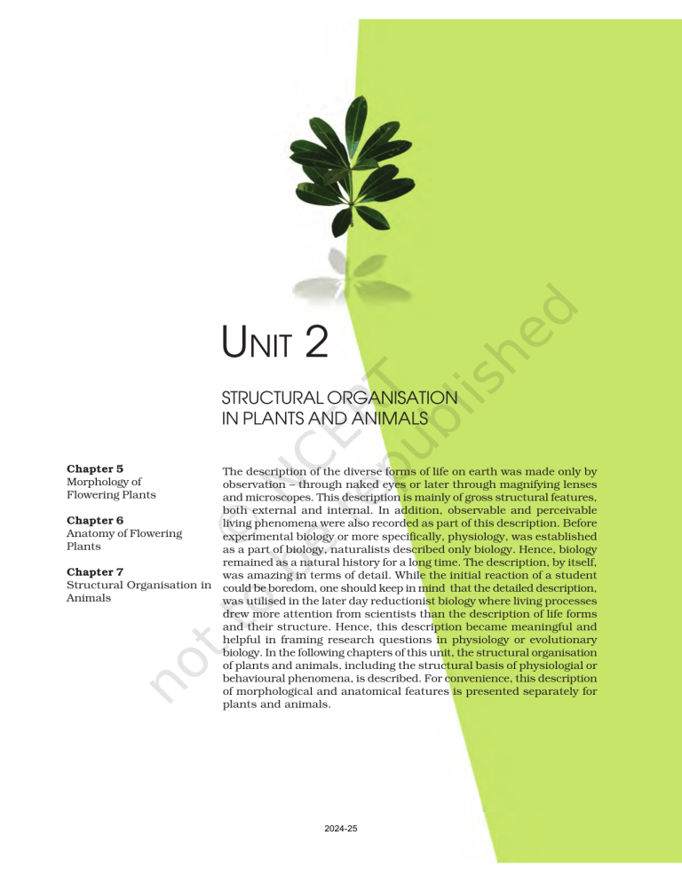 biology. In the following chapters of this unit, the structural organisation