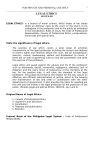 FOR PRIVATE AND PERSONAL USE ONLY ________________________________________________________________ 1 LEGAL ETHICS REVIEWER LEGAL ETHICS - is a branch of moral science, which treats of the duties which an Attorney owes to the court, to the client, to his colleagues in the profession and to the public as embodied in the Constitution, Rules of Court, the Code of Professional Responsibility, Canons of Professional Ethics, jurisprudence, moral laws and special laws. State the signiicance of legal ethics. The practice of law which covers a wide range of activities characteristic of the legal profession including the pursuit and defense of client's rights and interests before the court, will be transgressive, anarchic, riotous, lawbreaking, deiant and disobedient to courts, if there are no sets of governing rules to limit the parameters and tame the exercise of the profession. Legal ethics will guard against the abuses and ills of the profession such as dishonesty, deceit, immorality, negligence, slothness, lack of diligence and the many forms of malpractice of the members of the bar. On the positive side, it will raise the standard of the legal profession, encourage and enhance the respect for the law, assure an efective and eicient administration of justice, assist in the keeping and maintenance of law and order in coordination with the other departments of government. It also provides the basis for weeding out the unit and the misits in the legal profession for the protection of the public. (Pineda, Legal and Judicial Ethics, 1994 Ed., pp.1 and 2). Original Bases of Legal Ethics: 1. Canons of Professional Ethics 2. Supreme Court Decisions: 3. Constitution 4. Treatises and publications 5. Statistics Present Basis of the Philippine Legal System : Code of Professional Responsibility. FOR PRIVATE AND PERSONAL USE ONLY ________________________________________________________________ 2 DEFINITION OF TERMS Bar vs. Bench Refers to the whole body of attorneys and denotes the whole body of judges, counselors, collectively the members of the legal profession Practice of Law any activity, in or out of court which requires the application of law, legal procedure, knowledge, training and experience. To engage in the practice of law is to give notice or render any kind of service, which device or service requires the use in any degree of legal knowledge or skill (Cayetano v. Monsod, 201 SCRA 210). Attorney-at-law/Counsel-at-law/Attorney/Counsel Abogado/Boceros: - that class of persons who are licensed oicers of the courts, empowered to appear, prosecute and defend; and upon whom peculiar duties, responsibilities, and liabilities are developed the law as a consequence (Cui v. Cui, 120 Phil. 729). Attorney In fact an agent whose authority is strictly limited by the instrument appointing him, however, he may do things not mentioned in his appointment but are necessary to the performance of the duties speciically required of him by the power of attorney appointing him, such authority being necessarily implied. He is not necessarily a lawyer. Counsel de Oicio a counsel, appointed or assigned by the court, from among members of the Bar in good standing who, by reason of their experience and ability, may adequately defend the accused. Note: In localities where members of the Bar are not available, the court may appoint any person, resident of the province and good repute for probity and ability, to defend the accused. Sec. 7, Rule 116, Rules of Court. Attorney ad hoc' a person named and appointed by the court to defend an absentee defendant in the suit in which the appointment is made (Bienvenu v. Factor's of Traders Insurance Cp., 33 La.Ann.209) Attorney of Record - one who has iled a notice of appearance and who hence is formally mentioned in" court records as the oicial attorney of the party. Person whom the client has named as FOR PRIVATE AND PERSONAL USE ONLY ________________________________________________________________ 3 his agent upon whom service of papers may be made. (Reynolds v. Reynolds, Cal.2d580). Of Counsel - to distinguish them from attorneys of record, associate attorneys are referred to as "of counsel" (5 Am. Jur. 261). Lead Counsel - The counsel on their side of a litigated action who is charged with the principal management and direction of a party's case. House Counsel - Lawyer who acts as attorney for business though carried as an employee of that business and not as an independent lawyer. Bar Association Advocate - an association of members of the legal profession. The general and popular name for a lawyer who pleads on behalf of someone else. Barrister' (England) - a person entitled to practice law as an advocate or counsel in superior court. Proctor (England) - Formerly, an attorney in the admiralty and ecclesiastical courts whose duties and business correspond to those of an attorney at law or solicitor in Chancery. Titulo de Abogado - It means not mere possession of the academic degree of Bachelor of Laws but membership in the Bar after due admission thereto, qualifying one for the practice of law. ADMISSION TO THE PRACTICE OF LAW The Supreme Court has the power to control and regulate the practice of law. Thus, the Constitution, under Article VIII, Sec. 5 (5) provides: See. 5. The Supreme Court shall have the following powers: (5) Promulgate rules concerning the protection and enforcement of constitutional rights, pleading practice and procedure in all courts the admission to the practice of law, the Integrated Bar and legal assistance to the under privileged. The Supreme Court acts through a Bar Examination Committee in the Exercise of his judicial function to admit candidates to the legal profession. FOR PRIVATE AND PERSONAL USE ONLY ________________________________________________________________ 4 The Bar Examination Committee: • Composed of (1) member of the Supreme Court who acts as Chairman and eight (8) members of the bar. • The 8 members act as examiners for the 8 bar s