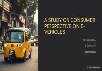 A STUDY ON CONSUMER PERSPECTIVE ON EVEHICLES DIVYA KRUPA A B. Com 3 CAP 121322084020 OBJECTIVES OF THE STUDY -T¾ Aììpìì c¾µì³pä aĘaäpµpìì äpaäjµ p«pcøäc ėpc«pì (EVì). -T¾ IjpµøĞ øp ¨pĞ acø¾äì µ«Āpµcµ c¾µì³päì' jpcì¾µì ø¾ áĀäcaìp p«pcøäc-ėpc«pì. -T¾ Eĝa³µp øp pĝøpµø ¾ c¾µì³pä aĘaäpµpìì ab¾Āø ėaä¾Āì ¾ėpäµ³pµø µøaøėpì äp«aøpj ø¾ p«pcøäc-øäaµìá¾äøaø¾µ. RESEARCH METHODOLOGY B¾ø áä³aäĞ aµj ìpc¾µjaäĞ jaøa Ępäp Āìpj ¾ä jaøa c¾««pcø¾µ. SAMPLE DESIGN Tp ìøĀjĞ Ęaì c¾µjĀcøpj øä¾Ā cäcĀ«aø¾µ ¾ ãĀpìø¾µµaäpì aµj a ø¾øa« ¾ 150 ìa³á«pì aäp ø¾ bp c¾««pcøpj. 34.7% 29.3% 21.3% ¹10,000 ¹10K-50K ¹50K-1L Ppäcpµøap ¾ äpìá¾µjpµøì Rpìá¾µjpµøì paäµµ bpøĘppµ Rpìá¾µjpµøì paäµµ bpøĘppµ paäµµ µjpä ¹10,000 ¹10,000 aµj ¹50,000 ¹50,000 aµj ¹1,00,000 A¾äjab«øĞ äp³aµì a ³a¥¾ä c¾µcpäµ ¾ä á¾øpµøa« EV bĀĞpäì µ Iµja. L¾Ępä aµj ³jj«p-µc¾³p ä¾Āáì j¾³µaøp øp ìĀäėpĞ. SOURCE OF INFORMATION Tp áä³aäĞ jaøa ì ø¾ bp c¾««pcøpj ä¾³ øp ìa³á«p äpìá¾µjpµøì øä¾Ā øp ìcpjĀ«p Ęø øp p«á ¾ øp ãĀpìø¾µµaäp Ęc Ęaì jìøäbĀøpj ¾µ«µp. Spc¾µjaäĞ jaøa: Spc¾µjaäĞ jaøa aì bppµ c¾««pcøpj ä¾³ äpìpaäc áaápäì áĀb«ìpj ¾µ ³pøä¾á¾«øaµ cøpì, ėaä¾Āì Ępbìøpì. SCOPE OF THE STUDY Tp ìc¾áp ¾ øì áä¾¥pcø ì «³øpj ø¾ øp øĘµ cøpì ¾ HĞjpäabaj aµj Spcµjpäabaj. EV Adoption: Interest and Barriers 58.7% Consider EVs Søä¾µ ³aä¨pø á¾øpµøa« 41.3% Remain Uninterested Ęø ¾ėpä a« Ppäììøpµø baääpäì c¾µìjpäµ a áĀäcaìp. µjpä Ęjpìáäpaj aj¾áø¾µ. Key Drivers L¾Ępä c¾ìøì, pµėä¾µ³pµøa« bpµpøì, aµj ¾ėpäµ³pµø µcpµøėpì. Dpìáøp µøpäpìø, ìµcaµø baääpäì áäpėpµø Ā«« EV aj¾áø¾µ µ Iµja. Ajjäpììµ øpìp c¾µcpäµì ì cäĀca«. T² Facõ» IfÈecpg EV Pȵcma»e Decp»p» Mpeage Däėµ äaµp ápä caäp ì a ø¾á áä¾äøĞ. Pµpce A¾äjab«øĞ ì cäĀca« ¾ä ³aìì aj¾áø¾µ. Cmaµgpg Tpe Faìø caäµ ì a ¨pĞ c¾µėpµpµcp acø¾ä. Iµjaµ c¾µì³päì áä¾äøĨp äaµp, áäcp, aµj caäµ ìáppj Ępµ c¾µìjpäµ aµ EV. Tpìp acø¾äì paė«Ğ µ«Āpµcp bĀе jpcì¾µì. FINDINGS Y¾Āµ, pjĀcaøpj Āäbaµ äpìjpµøì Ęø ³¾jpäaøp ø¾ «¾Ę µc¾³pì aäp øp áä³aäĞ jp³¾äaác µøpäpìøpj µ EVì. 60% ¾ äpìá¾µjpµøì aäp p³a«p, 40% ³a«p. 73.3% äpìjp µ HĞjpäabaj; 88% Āäbaµ, 8% ìĀbĀäbaµ, 4% äĀäa«. 68% ¾ µøpäpìøpj c¾µì³päì aäp apj 18-25. 70.7% ¾«j aµ µjpääajĀaøp jpäpp, 18.7% a á¾ìøäajĀaøp jpäpp. 34.7% paäµ < ¹10,000, 29.3% paäµ ¹10,000-¹50,000; a¾äjab«øĞ ì a ³a¥¾ä c¾µcpäµ. 58.7% aėp c¾µìjpäpj áĀäcaìµ aµ EV, Ę«p 41.3% äp³aµ µµøpäpìøpj jĀp ø¾ c¾ìø, «³øpj caäµ µäaìøäĀcøĀäp, aµj µìĀcpµø ³«pap ápä caäp. KpĞ aj¾áø¾µ jäėpäì aäp «¾Ępä ¾ápäaøµ c¾ìøì, pµėä¾µ³pµøa« bpµpøì, aµj ¾ėpäµ³pµø µcpµøėpì. Päppääpj ³«pap äaµp ì 50-100 ¨³ ápä caäp, Ęø a ³µ³Ā³ pĝápcøaø¾µ ¾ 100 ¨³. Faìø caäµ (1-4 ¾Āäì) ì a áä¾äøĞ. CONCLUSION Tme fpdpg» pdpcaÃe Ãmaà ßmpe Ãme ad²Ãp f EV» p» Ãme µp»e, cmaege» µeaÃed à affµdabppÃå ad pfµa»ÃµÈcÃȵe cÃpÈe à ²»e »pgpfpcaà b»Ãace». Fpacpa pceÃpÞe» ad p²µÞeeû p baÃÃeµå Ãecmgå cÈd gµeaÃå emace aµeà ²eeõaÃp. AÃmÈgm Ãmeµe aµe gÞeµeà pceÃpÞe» aÞapabe, aå c»Èeµ» aµe à aßaµe f Ãme»e beefpû, ßmpcm dppp»me» Ãmepµ p²acÃ. YÈgeµ pdpÞpdÈa», e»²ecpaå Ãm»e aged 18-25, »mß a mepgmÃeed pÃeµe»Ã p EV», p²åpg Ãmaà fcÈ»ed aµeÃpg »ÃµaÃegpe» aped aà »ÃÈdeû ad åÈg ²µfe»»pa» cÈd me² »²eed Ȳ ad²Ãp. SUGGESTIONS F¾ä MaµĀacøĀäpäì: RpjĀcp EV c¾ìøì øä¾Ā c¾³ápøøėp áäcµ, µaµcµ ¾áø¾µì, aµj µìøa««³pµø á«aµì Ę«p ³áä¾ėµ baøøpäĞ øpcµ¾«¾Ğ ¾ä «¾µpä äaµp aµj aìøpä caäµ. Eĝáaµj caäµ µäaìøäĀcøĀäp øä¾Ā c¾««ab¾äaø¾µì aµj pµaµcp aøpä-ìa«pì ìĀáá¾äø Ęø ³¾äp ìpäėcp cpµøpäì aµj Ęaääaµøpì. Maä¨pø EVì bĞ p³áaìĨµ «¾µ-øpä³ µaµca« ìaėµì aµj pµėä¾µ³pµøa« bpµpøì F¾ä P¾«cгa¨päì & G¾ėpäµ³pµø: B¾¾ìø a¾äjab«øĞ Ęø ìĀbìjpì, «¾Ępä EV «¾aµ µøpäpìø äaøpì, aµj øaĝ bäpa¨ì Ę«p äaìµ áĀb«c aĘaäpµpìì. Eĝáaµj caäµ ìøaø¾µì acä¾ìì cøpì, ĘaĞì, aµj ƾä¨á«acpì. Eµc¾Āäap äpµøa« aµj «paìµ ¾áø¾µì ø¾ a³«aäĨp c¾µì³päì Ęø EVì bp¾äp áĀäcaìp. For Consumers: Lpėpäap µcpµøėpì, µaµcµ ¾áø¾µì, aµj «¾µøpä³ ìaėµì ¾ä c¾ìø-ppcøėp EV ¾Ęµpäìá. Eĝ᫾äp äpµøa«/ìĀbìcäáø¾µ ìpäėcpì bp¾äp bĀе aµj ajė¾caøp ¾ä bpøøpä caäµ µäaìøäĀcøĀäp. Eµap µ aĘaäpµpìì áä¾äa³ì ø¾ ìĀáá¾äø EV aj¾áø¾µ.