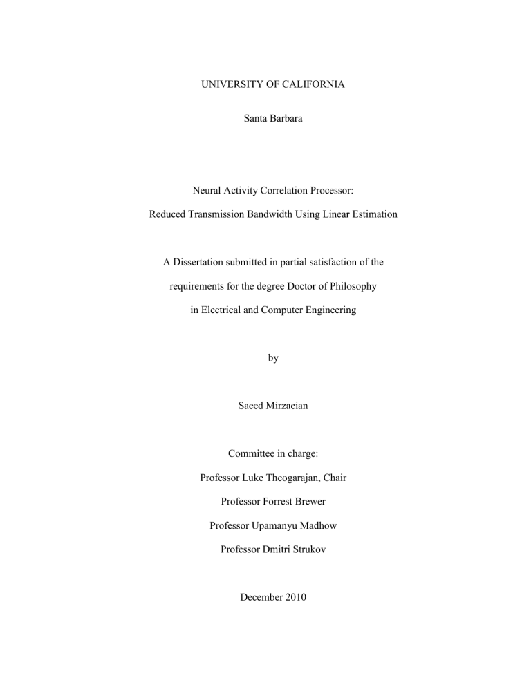 Master of Science in Electrical and Computer Engineering, University of California,