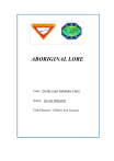 ABORIGINAL LORE Club:[North Coast Pathfinder Club] Name:[Joviah Debisette] Club Director:[Sherry Ann Joyeau] TABLE OF CONTENTS Origins of the Aborigines and Tribes During Colonization 1 Tribal System and Totems 2 Aboriginal Food: Types, Procurement, and Preparation 3 Aboriginal Homes: Structure and Permanence 5 Communication Between Tribes and Use of the Tjurunga 6 Trade, Exchange, and Domestic Utensils 7 Weapons in Hunting and Warfare 7 Corroborees, Clapsticks, and Didgeridoos 9 Children's Games, Initiation, and the Bora Ground 10 Aboriginal Art Types 10 History of Aborigines Since Colonization 10 Origins of the Aborigines and Tribes During Colonization The Aboriginal people of Australia are the Indigenous inhabitants of the Australian continent and its nearby islands. It is believed that they have lived in Australia for at least 60,000 years, making them one of the world’s oldest continuous cultures. Aboriginal people are deeply connected to the land, and their culture, spirituality, and survival have always been tied to their environment, which they care for and respect as part of their traditional way of life. Origins and Migration Aboriginal Australians are believed to have originally migrated from Africa around 70,000 years ago during a period known as the "Out of Africa" migration. Over time, they moved through Asia and eventually reached Australia, likely via land bridges and short sea crossings from what is now modern-day Indonesia. The Aboriginal people spread across the Australian continent, adapting to different environments, from arid deserts to tropical rainforests and coastal areas. This migration is one of the earliest known ocean crossings in human history. Cultural Diversity and Tribal Organization By the time European settlers arrived in Australia in 1788, it is estimated that there were between 500 to 700 distinct Aboriginal tribes or groups, each with their own languages, customs, and territories. These groups were highly autonomous, with their own systems of governance and ways of life. Aboriginal tribes were organized based on language groups, and within each tribe, there were further divisions, including clans or family groups. Each group was tied to specific lands or country that they had custodianship over. The land was central to their identity and spirituality, and they saw themselves as stewards of the land, which they believed was entrusted to them by their ancestors through the Dreaming or Dreamtime (the foundational mythological time when their world was created). The Dreaming stories and their spiritual beliefs shaped their connection to their country and explained the origins of their people, the land, and its features. Languages At the time of European colonization, it is estimated that there were 250 Aboriginal languages spoken across the continent, with many of these languages having further dialects. Each language group was associated with a specific territory and was a key marker of tribal identity. The European settlers did not recognize the complex and diverse social structures of the Aboriginal tribes, which ultimately led to the displacement, marginalization, and destruction of many Indigenous communities through colonization Page 1 Tribal System and Totems The Aboriginal tribal system is a complex social structure that forms the foundation of their culture, governing relationships, land ownership, and spiritual beliefs. The tribes are organized based on kinship, clans, and skin groups, which dictate social responsibilities, marriage rules, and interactions within the community. These kinship systems form a vital part of Aboriginal identity and regulate the daily lives of people in the tribe. Totems are central to Aboriginal spirituality and play an important role in the tribal system. They are natural objects, animals, or plants that are believed to have a spiritual connection to a particular group, family, or individual. Totems symbolize the ancestral beings from the Dreamtime—an important concept in Aboriginal culture, referring to the creation period and the spiritual realm of existence. Each clan or individual has a specific totem that links them to their land, ancestors, and responsibilities. These totems are regarded as protectors and are often associated with rituals, ceremonies, and stories passed down through generations. In Aboriginal society, totems also determine one’s relationship with the environment and other clans. Members of a tribe may be required to care for their totemic animals or plants, ensuring they are not harmed. The role of totems reinforces the connection between Aboriginal people and nature, emphasizing their deep respect for the land and its resources. Totemic symbols are often represented in Aboriginal art, storytelling, and ceremonies, and they reflect the tribe’s spiritual connection to their ancestors and the Dreamtime. Totems vary between different regions and tribes, with each community having its own unique set of symbols and meanings associated with them. Page 2 Aboriginal Food: Types, Procurement, and Preparation Aboriginal Australians have traditionally relied on a variety of bush tucker—foods sourced directly from their natural environment. These foods reflect the diverse landscapes of Australia, ranging from coastal areas to deserts, tropical rainforests, and grasslands. Kinds of Food Meat and Seafood: Kangaroos, wallabies, emus, and reptiles (like goannas) were commonly hunted, while coastal and river-dwelling groups relied on fish, shellfish, and other marine life. Plant Foods: Fruits (such as quandongs and native plums), nuts (like macadamias), seeds, and roots (yams and tubers) formed a substantial part of the diet. Many of these plants had to be processed to remove toxins or improve digestibility. Insects: Certain insects, such as witchetty grubs, were prized for their protein and fat content, especially in arid regions. How Food Is Obtained Hunting and Gathering: Aboriginal men often hun