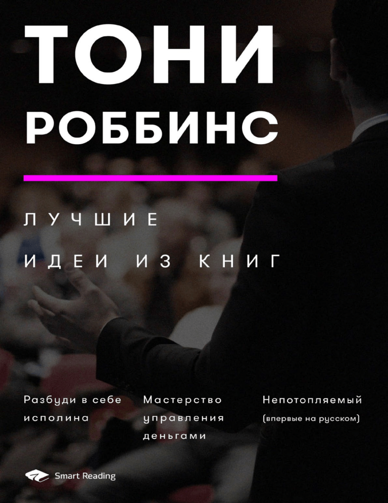 Содержание Разбуди в себе исполина……………………………………………………………………………… 2 Мастерство управления деньгами: 7 простых шагов к финансовому благополучию …………… 15 Непотопляемый: книга твоей финансовой свободы ………………………………………………… 28 РАЗБУДИ В СЕБЕ ИСПОЛИНА ОРИГИНАЛЬНОЕ НАЗВАНИЕ Awaken the Giant Within РАЗБУДИ В СЕБЕ ИСПОЛИНА Введение Тони Роббинс — эксперт в области психологии лидерства, культовый американский писатель, оратор, предприниматель и один из родоначальников индустрии лайф-коучинга. Книги Роббинса по саморазвитию расходятся огромными тиражами, а на семинарах побывали миллионы людей. Его клиентами становились самые известные артисты, политики, спортсмены и предприниматели. В арсенале Роббинса есть как широко известные методы нейролингвистического программирования (НЛП), так и собственные разработки. Например, он известен тем, что предлагает своим слушателям прямо во время семинара пройтись по раскаленным углям. Популярность пришла к Тони в 1987 году, когда в свет вышла его первая книга «Беспредельная власть. Как добиться вершин личных достижений». Книга «Разбуди в себе исполина» — второй бестселлер Роббинса на тему саморазвития. Книга вышла в 1991 году и с тех пор неоднократно переиздавалась. В ней автор рассказывает о наиболее эффективных стратегиях и конкретных приемах, которые помогут взять под контроль свои чувства и эмоции, привести в порядок здоровье и финансы, а также наладить отношения с окружающими. Часто кажется, что наша жизнь — череда неудачных внешних обстоятельств, а страдания и боль — ее неизбежные составляющие. Тони Роббинс утверждает, что это не так, и предлагает взять на себя ответственность за собственные убеждения, чувства и поступки. Звучит легко и даже банально, однако все мы знаем, как сложно бывает претворить этот план в жизнь. «Разбуди в себе исполина» дает конкретные инструменты для реализации этого плана. Энтони Роббинс убежден, что ресурсы, необходимые для того, чтобы преобразовать мечты в реальность, находятся в нас самих и лишь ждут, когда мы примем решение воспользоваться ими. Цель этой книги — побудить читателей к действию и предложить стратегии, которые помогут достичь конкретных и долгосрочных изменений. Из саммари вы узнаете, как добиться обусловленного успеха, что такое контролируемая сосредоточенность и как правильно задавать вопросы себе и другим, чтобы почувствовать себя настоящим исполином. 3 РАЗБУДИ В СЕБЕ ИСПОЛИНА 1 Создавайте долгосрочные изменения 1.1. Чтобы изменения имели истинную ценность, они должны быть устойчивыми и рассчитанными на долгосрочную перспективу. Добиться этого можно за три шага. • Поднимите свои стандарты и действуйте в соответствии с ними, раз и навсегда решив, что меньшего вы не приемлете. • Измените свою систему убеждений и поверьте в то, что вы действительно можете соответствовать новым стандартам. Все ваши действия, мысли и чувства напрямую зависят от того, во что вы верите. Нельзя выйти на новый уровень, сомневаясь, что вы в принципе на это способны. • Измените свою стратегию. Книга предлагает множество стратегий для решения разнообразных задач, однако наилучшей автор считает следующую: в любой затруднительной ситуации ищите человека, который уже добился желаемых результатов, и перенимайте его знания и опыт. 1.2. Одно из главных