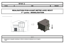 TP N° 2 TS GC BIM REALISATION D’UN AVANT-METRE AVEC REVIT 1ère partie : MODELISATION OBJECTIF 1) Construire la maquette numérique en 3D de la structure du bâtiment avec le logiciel Revit PROJET ETAPE 1 : Lancer le logiciel REVIT Pour lancer le logiciel faire un double clic sur l’icône qui se trouve sur le bureau : 1- Cliquer sur Nouveau ETAPE 2 : Commencer un nouveau Projet 2- Choisir : Gabarit de construction 3- Cocher : Créer un nouveau Projet 4- Puis cliquer sur OK p. 2/43 Dans cette étape nous allons définir les différents niveaux du projet. Nous prendrons comme niveaux de références les niveaux des arases supérieures des planchers. 3.1/ Dans l’arborescence du projet, cliquer sur élévation Sud : Cliquer sur : élévation Sud Arborescence du projet ETAPE 3 : Définir les niveaux du projet 3.2/ Supprimer les niveaux existants : Sélectionner tous les niveaux Puis taper sur la touche supprimer Cliquer sur OK p. 3/43 3.3/ Créer les niveaux du projet : 1- Se placer dans l’onglet structure 3- Tracer 3 niveaux quelconques sans tenir compte des cotes 2- Cliquer sur l’icône : ETAPE 3 : Définir les niveaux du projet 4- Cliquer sur les cotes pour les modifier 5- Cliquer sur le texte pour changer le nom du niveau p. 4/43 Remarque : Le projet comporte 3 niveaux : - Fondations (0,00) - Niveau 1 (+2,59m) - Niveau 2 (+5,09m) Les niveaux correspondent aux arases supérieures des planchers. IMPORTANT : on peut constater l’apparition des 3 niveaux dans l’arborescence du projet : ETAPE 3 : Définir les niveaux du projet Les 3 niveaux créés apparaissent dans le menu : Plans d’étage Arborescence du projet 3-Choisir un répertoire de destination 1-Cliquer sur l’icône : Puis cliquer sur enregistrer sous ETAPE 4 : Enregistrement du projet 2-Cliquer ensuite sur : j 4-Donner un nom au projet : Structure Dos Marsolle p. 5/43 5-Cliquer sur : enregistrer 5.1/ Dans l’arborescence du projet cliquer sur le niveau Fondations : Remarque : On se place ainsi dans la vue en plan au niveau : Fondations (0,00) Cliquer sur fondations ETAPE 5 : Définir les axes 5.2/ Tracer les axes : Se placer dans l’onglet structure Puis cliquer sur Quadrillage p. 6/43 5.2.1/ Tracer les axes verticaux : Pour tracer les axes verticaux : ETAPE 5 : Définir les axes p. 7/43 - Tracer du bas vers le haut - S’aider des accroches objets pour aligner les traits d’axes - Rentrer les distances entre-axes à l’aide du clavier - Cliquer sur les repères des axes pour les modifier (modifier le texte) - Pour supprimer un repère d’axe, cliquer sur l’axe et décocher la petite case situé au dessus 5.2.2/ Tracer les axes horizontaux : Pour tracer les axes horizontaux : ETAPE 5 : Définir les axes p. 8/43 - Tracer de la droite vers la gauche - S’aider des accroches objets pour aligner les traits d’axes - Rentrer les distances entre-axes à l’aide du clavier - Cliquer sur les repères des axes pour les modifier (modifier le texte) - Ajuster les traits d’axes ETAPE 6 : Ajuster l’échelle Cliquer ici pour changer l’échelle. Mettre en 1/50 Dans cette étape nous allons modéliser en 3D les fondations du bâtiment. 7.1/ Modéliser les semelles : 1-Se placer dans l’onglet structure ETAPE 7 : Modéliser les fondations 2-Dans le menu fondation cliquer sur l’icône : ‘’ Isolée ’’ p. 9/43 7.1.1/ Charger une famille de semelle (dans le cas ou aucune famille n’a été chargée) : 2-Rechercher la famille : ‘’ Base rectangulaire ‘’ dans : - structure - structure - fondations 3-Puis cliquer sur : ouvrir 1-Cliquer sur oui ETAPE 7 : Modéliser les fondations 7.1.2/ Définir les propriétés des semelles : Dans la fenêtre des propriétés Cliquer sur : modifier le type IMPORTANT : La fenêtre des propriétés est un élément très important dans l’utilisation de Revit. Elle permet de gérer facilement les différentes propriétés des éléments comme : les dimensions, les niveaux, choix des matériaux, etc. … p. 10/43 Dans la fenêtre : propriété du type 2-Donner un nom au nouveau type de semelle 1-Cliquer sur dupliquer 3-Puis cliquer sur ok ETAPE 7 : Modéliser les fondations 4-Rentrer ici les dimensions de la semelle en mm Autres données d’identification à rentrer (éventuellement) p. 11/43 Dans la fenêtre des propriétés : Choisir : Béton coulé sur place Cliquer ici pour définir le matériau ETAPE 7 : Modéliser les fondations REMARQUE : A partir de ce menu, il est possible de charger d’autres matériaux ne figurants pas dans la liste. p. 12/43 Pour finir avec les réglages des propriétés des semelles, nous allons définir le décalage entre le niveau du plan de fondations (0,00), et le niveau de l’arase supérieure des semelles : Extrait du plan de fondations – Coupe A-A : Niveau du plan de fondations : 0,00 Décalage Niveau de l’arase supérieure des semelles : -490 - 490 mm ETAPE 7 : Modéliser les fondations Rentrer ici le décalage Vérifier ici le niveau de l’arase inférieure des semelles (il est calculé automatiquement) Une fois tous les réglages de propriétés effectués on peut passer à la modélisation des semelles. p. 13/43 7.1.3/ Modéliser les semelles : On positionne les semelles en s’aidant des axes : ETAPE 7 : Modéliser les fondations 7.1.4/ Réglage des paramètres de la vue (dans le cas ou les semelles n’apparaissent pas) : Dans certains cas, ce message d’avertissement peut apparaitre : Pour faire apparaitre les semelles : 1-Cliquer sur le plan de Fondations (dans l’arborescence du projet). 2-Cliquer sur modifier la plage de la vue (dans la fenêtre des propriétés) p. 14/43 3-Régler la plage de la vue 7.2/ Modéliser les poteaux : 1-Se placer dans l’onglet structure 2-Dans le menu Structure, cliquer sur l’icône : poteau ETAPE 7 : Modéliser les fondations 7.2.1/ Définir les propriétés des poteaux : 1-Charger la famille de poteau : Poteau béton carré 2-Renommer le type de poteau : 150mm x 150mm 3-Rentrer la di