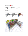Singapore BIM Guide Version 2 BCA acknowledges the leadership provided by the BIM Steering Committee in support of the production of the Singapore BIM Guide. The Singapore BIM Guide has been drafted by the BIM Guide Workgroup on behalf of BCA and the BIM Steering Committee. ©Building and Construction Authority 2013 Building and Construction Authority 5 Maxwell Road #16-00 Tower Block MND Complex Singapore 059110 www.bca.gov.sg First published May 2012 2nd Version August 2013 While every effort has been made to ensure the accuracy and quality of information contained in this publication, the Building and Construction Authority, its employees, agents or industry partners can take no responsibility for the subsequent use of this information, nor for any errors or omissions that it may contain. Cover image and design courtesy of RSP Architects Planners & Engineers (Pte) Ltd and the BCA Academy of the Built Environment. Singapore BIM Guide Version 2 Contents CEO’s Message ___________________________________________________________________ iii BIM STEERING COMMITTEE ________________________________________________________ iv BIM GUIDE WORKGROUP __________________________________________________________ vi 1 INTRODUCTION ______________________________________________________________ 1 BIM Deliverables _________________________________________________________________________ 1 BIM Processes (Modelling and Collaboration Procedures) ________________________________________ 1 BIM Professionals (BIM Manager and BIM Coordinator) __________________________________________ 2 2 BIM EXECUTION PLAN _________________________________________________________ 3 3 BIM DELIVERABLES ___________________________________________________________ 5 3.1 BIM Elements_______________________________________________________________________ 5 3.2 Attributes of BIM Elements ____________________________________________________________ 6 3.2.1 Model Progression _______________________________________________________________ 6 3.2.2 BIM vs 2D Practices ______________________________________________________________ 8 3.3 4. BIM Objective & Responsibility Matrix __________________________________________________ 11 3.3.1 Model Author _________________________________________________________________ 12 3.3.2 Model Users ___________________________________________________________________ 12 3.4 Compensation Expectations __________________________________________________________ 13 3.5 Other Additional Value-added BIM Services _____________________________________________ 14 BIM Modelling and Collaboration Procedures______________________________________ 15 4.1 Individual Discipline Modelling ________________________________________________________ 16 4.1.1 Modelling Guidelines for BIM Elements _____________________________________________ 16 4.1.2 Modelling Guidelines for Regulatory Submission______________________________________ 16 4.1.3 Model Orientation ______________________________________________________________ 16 4.1.4 Model Division and Structure _____________________________________________________ 17 4.1.5 Revision Management ___________________________________________________________ 17 4.2 Cross-disciplinary Model Coordination __________________________________________________ 17 i Singapore BIM Guide Version 2 4.2.1 4.3 Types of Model Coordination _____________________________________________________ 20 Model & Documentation Production ___________________________________________________ 21 4.3.1 Publishing 2D Drawings __________________________________________________________ 21 4.3.2 BIM Exchange Formats __________________________________________________________ 22 4.3.3 Documentation after Coordination_________________________________________________ 22 4.4 Data Security & Saving ______________________________________________________________ 22 4.5 Quality Assurance and Quality Control __________________________________________________ 23 4.6 Workflow of Design-Build Projects _____________________________________________________ 24 4.7 Workflow of Design-Bid-Build Projects __________________________________________________ 24 5 BIM Professionals ___________________________________________________________ 25 References _____________________________________________________________________ 27 Appendix A – Typical BIM Elements by Discipline _______________________________________ 28 (I) Architectural BIM Elements __________________________________________________________ 28 (II) Structural BIM Elements _____________________________________________________________ 29 (III) Civil BIM Elements __________________________________________________________________ 30 (IV) ACMV BIM Elements ________________________________________________________________ 31 (V) Plumbing and Sanitary BIM Elements___________________________________________________ 32 (VI) Fire Protection BIM Elements _________________________________________________________ 33 (VII) Electrical BIM Elements ______________________________________________________________ 33 (VIII) Gas BIM Elements __________________________________________________________________ 34 Appendix B – BIM Objective & Responsibility Matrix (Basic) ______________________________ 35 Appendix C – BIM Modelling Guidelines ______________________________________________ 41 (I) Overview _________________________________________________________________________ 42 (II) Quality Assurance __________________________________________________________________ 43 (III) Architectural BIM Modelling Guidelines _________________________________________________ 44 (IV) Structural BIM Modelling Guidelines ___________________________________________________ 48 (V) MEP BIM Modelling Guidelines _______________________________________________________ 52 ii Singapore BIM Guide Version 2 CEO’s Message Dear readers, Building Information Modelling (BIM) has gained much traction in recent years as digital con