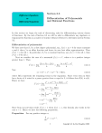 Difference Equations to Differential Equations Section 3.3 Differentiation of Polynomials and Rational Functions In this section we begin the task of discovering rules for differentiating various classes of functions. By the end of Section 3.5 we will be able to differentiate any algebraic or trigonometric function as a matter of routine without reference to the limits used in Section 3.2. Differentiation of polynomials We first note that if f is a first degree polynomial, say, f (x) = ax + b for some constants a and b, then f is an affine function and hence its own best affine approximation. Thus f 0 (x) = a for all x. In particular, if f is a constant function, say, f (x) = b for all x, then f 0 (x) = 0 for all x. Next we consider the case of a monomial f (x) = xn , where n is a positive integer greater than 1. Then f (x + h) − f (x) (x + h)n − xn = lim . h→0 h→0 h h (3.3.1) (x + h)n = xn + nxn−1 h + R(h), (3.3.2) f 0 (x) = lim Now where R(h) represents the remaining terms in the expansion. Since every term in R(h) has a factor of h raised to a power greater than or equal to 2, it follows that R(h) is o(h). Hence we have xn + nxn−1 h + R(h) − xn f 0 (x) = lim h→0 h n−1 nx h + R(h) = lim h→0 h R(h) n−1 = lim nx + h→0 h R(h) = nxn−1 + lim h→0 h n−1 = nx . Since from our previous result f 0 (x) = 1 when f (x) = x, this formula also works in the case n = 1. Hence we have the following proposition. Proposition For any positive integer n, d n x = nxn−1 . dx 1 (3.3.3) Copyright c by Dan Sloughter 2000 2 Differentiation of Polynomials and Rational Functions Section 3.3 Example If f (x) = x3 , then f 0 (x) = 3x2 , as we saw in an example in Section 3.2. Example Similarly, d 5 t = 5t4 . dt Hence, for example, the equation of the line tangent to the curve x = t5 at (−1, −1) is x = 5(t + 1) − 1, or x = 5t + 4. Once we establish results for the derivative of a constant times a function and for the derivative of the sum of two functions, similar to the results we have for limits, we will be able to easily differentiate any polynomial. So suppose f is a differentiable function and let k(x) = cf (x), where c is any constant. Then k(x + h) − k(x) h→0 h cf (x + h) − cf (x) = lim h→0 h c(f (x + h) − f (x)) = lim h→0 h f (x + h) − f (x) = c lim h→0 h 0 = cf (x). k 0 (x) = lim That is, the derivative of a constant times a function is the constant times the derivative of the function. Proposition Example If f is differentiable and c is any constant, then d d (cf (x)) = c f (x). dx dx (3.3.4) If f (x) = 14x3 , then f 0 (x) = (14)(3x2 ) = 42x2 . Now suppose f and g are both differentiable functions and let k(x) = f (x) + g(x). Then k(x + h) − k(x) k 0 (x) = lim h→0 h (f (x + h) + g(x + h)) − (f (x) + g(x)) = lim h→0 h f (x + h) − f (x) g(x + h) − g(x) = lim + h→0 h h f (x + h) − f (x) g(x + h) − g(x) = lim + lim h→0 h→0 h h 0 0 = f (x) + g (x). Section 3.3 Differentiation of Polynomials and Rational Functions 3 Hence the derivative of the sum of two functions is the sum of their derivatives. A similar argument would show that the derivative of the difference of two functions is the difference of their derivatives. Proposition If f and g are both differentiable, then d d d (f (x) + g(x)) = f (x) + g(x) dx dx dx (3.3.5) d d d (f (x) − g(x)) = f (x) − g(x). dx dx dx (3.3.6) and Putting the preceding results together, we are now in a position to easily differentiate any polynomial, as the next examples will illustrate. Example Suppose f (x) = 3x5 − 6x2 + 2x − 16. Then d (3x5 − 6x2 + 2x − 16) dx d d d d (3x5 ) − (6x2 ) + (2x) − (16) = dx dx dx dx d d d = 3 x5 − 6 x2 + 2 x − 0 dx dx dx 4 = (3)(5x ) − (6)(2x) + (2)(1) f 0 (x) = = 15x4 − 12x + 2. Example Of course, it is not necessary to write out in detail all the steps in differentiating a polynomial as we did in the preceding example. For example, if g(t) = 3t12 − 6t2 + t, then g 0 (t) = (3)(12t11 ) − (6)(2t) + 1 = 36t11 − 12t + 1. In particular, since g(1) = −2 and g 0 (1) = 25, the best affine approximation to g at t = 1 is T (t) = 25(t − 1) − 2 = 25t − 27. Differentiation of rational functions We next consider the problem of differentiating the quotient of two functions whose derivatives are already known. In particular, combining this result with our result for polynomials will enable us to easily differentiate any rational function. We might hope that, analogous to the last two results and the related results for limits, the derivative of the quotient of two functions would be equal to the quotient of their derivatives. This turns out not to be true; nevertheless, there is a nice rule for differentiating quotients. 4 Differentiation of Polynomials and Rational Functions Section 3.3 (x) Suppose f and g are both differentiable functions and let k(x) = fg(x) . Then, at all points where g(x) 6= 0, k(x + h) − k(x) h→0 h f (x + h) f (x) − g(x + h) g(x) = lim h→0 h g(x)f (x + h) − g(x + h)f (x) g(x + h)g(x) = lim h→0 h g(x)f (x + h) − g(x + h)f (x) = lim . h→0 hg(x)g(x + h) k 0 (x) = lim It turns out that by adding and subtracting the term g(x)f (x) (a standard mathematical trick of adding 0) in the numerator, we can simplify this limit into a form that we can evaluate. That is, g(x)f (x + h) − g(x + h)f (x) h→0 hg(x)g(x + h) g(x)f (x + h) − g(x)f (x) + g(x)f (x) − g(x + h)f (x) = lim h→0 hg(x)g(x + h) g(x)(f (x + h) − f (x)) − f (x)(g(x + h) − g(x)) = lim h→0 hg(x)g(x + h) f (x + h) − f (x) g(x + h) − g(x) g(x) − f (x) h h . = lim h→0 g(x)g(x + h) k 0 (x) = lim Now f (x + h) − f (x) f (x + h) − f (x) lim g(x) = g(x) lim = g(x)f 0 (x), h→0 h→0 h h g(x + h) − g(x) g(x + h) − g(x) lim f (x) = f (x) lim = f (x)g 0 (x), h→0 h→0 h h (3.3.7) (3.3.8) and lim g(x)g(x + h) = g(x) lim g(x + h) = g(x)g(x) = (g(x))2 , h→0 h→0 (3.3.9) where the limits in (3.3.7) and (3.3.8) follow from the differentiabilit