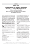 LSHSS Research Article Development of the Narrative Assessment Protocol-2: A Tool for Examining Young Children’s Narrative Skill Ryan P. Bowles,a Laura M. Justice,b Kiren S. Khan,c Shayne B. Piasta,c Lori E. Skibbe,a and Tricia D. Fostera Purpose: Narrative skill, a child’s ability to create a temporally sequenced account of an experience or event, is considered an important domain of children’s language development. Narrative skill is strongly predictive of later language and literacy and is emphasized in curricula and educational standards. However, the need to transcribe a child’s narrative and the lack of psychometrically justified scoring methods have precluded broad consideration of narrative skill among practitioners. We describe the development and validation of the Narrative Assessment Protocol-2 (NAP-2), an assessment of narrative skill for children ages 3–6 years, which uses event-based frequency scoring directly from a video recording of a child’s narrative. Method: The NAP-2 underwent a rigorous development process involving creation of four wordless picture books and associated scripts and identification of a broad item pool, including aspects of narrative microstructure and macrostructure. We collected two narratives from each of 470 children using the NAP-2 elicitation materials and scored each with the 60 items in the initial item pool. Results: Cross-validated exploratory factor analyses indicated a single narrative skill factor. Rasch measurement analysis led to selection of 20 items that maintained high reliability while having good fit to the model and no evidence of differential item functioning across books and gender. Conclusions: The NAP-2 offers a psychometrically sound and easy-to-use assessment of narrative skill for children ages 3–6 years. The NAP-2 is available freely online for use by speech-language pathologists, educational practitioners, and researchers. Supplemental Material: https://doi.org/10.23641/asha. 11800779 N 1999; Curenton & Justice, 2004) that can be reliably measured and improved through intervention (e.g., Nicolopoulou & Trapp, 2018; Pesco & Kay-Raining Bird, 2016; Petersen, 2011; Price et al., 2006). Narratives can be about personal experiences or fictional events (i.e., fictional narratives) and can be prompted or unprompted. As with other domains of language, children show developmental changes in their narrative skill over time (Curenton & Justice, 2004). Assessment of a child’s narrative can provide information about many aspects of his or her expressive language, including general language productivity (e.g., total number of utterances), vocabulary (e.g., number of different words), syntax (e.g., percentage of utterances containing multiple clauses), and morphology (e.g., accuracy of word inflections). Measures derived from narrative assessment provide generally strong and reliable indices of children’s concurrent and future language competence (e.g., Boudreau & Hedberg, 1999; Gardner-Neblett & Iruka, 2015; Pankratz et al., 2007; Tilstra & McMaster, 2007). For instance, one study reported correlations of .77 and arrative skill, which represents a child’s ability to create a temporally sequenced production of a fictional or real account of an experience or event (Engel, 1995), is considered an important domain of children’s language development (Boudreau & Hedberg, a Department of Human Development and Family Studies, Michigan State University, East Lansing b Crane Center for Early Childhood Research and Policy, The Ohio State University, Columbus c Department of Teaching and Learning and Crane Center for Early Childhood Research and Policy, The Ohio State University, Columbus Correspondence to Ryan P. Bowles: bowlesr@msu.edu Kiren S. Khan is now at the Department of Psychology, Rhodes College, Memphis, TN. Tricia D. Foster is now at the School of Health Sciences, Eastern Michigan University, Ypsilanti, MI. Editor-in-Chief: Holly L. Storkel Editor: Sherrie Hill Received April 25, 2019 Revision received May 24, 2019 Accepted October 16, 2019 https://doi.org/10.1044/2019_LSHSS-19-00038 Disclosure: The authors have declared that no competing interests existed at the time of publication. Language, Speech, and Hearing Services in Schools • 1–15 • Copyright © 2020 American Speech-Language-Hearing Association Downloaded from: https://pubs.asha.org Michigan State University on 02/22/2020, Terms of Use: https://pubs.asha.org/pubs/rights_and_permissions 1 .61 between a measure of 5- to 6-year-old children’s narrative complexity and measures of receptive vocabulary and reading comprehension, respectively, 3 years later (Pankratz et al., 2007). Studies also show some measures of narrative ability to have good to excellent accuracy for identifying presence of language impairment (Liles et al., 1995; Pankratz et al., 2007; Peña et al., 2006), with sensitivity and specificity values in the 78%–99% range (Pankratz et al., 2007; Peña et al., 2006). Narrative assessment can be an important tool within clinical and educational practices. For the former, identification of children with language impairment, based on current consensus statements, should rely on information from a variety of sources that includes, for instance, implementation of tasks that “tax both expressive and receptive skills” (Bishop et al., 2016). Narrative tasks represent a key way to “tax” children’s language skills, as production of a narrative requires the complex integration of numerous lower level language skills, including grammar, morphology, vocabulary, and pragmatics. Use of a valid, reliable, and easy-to-use narrative task may provide clinicians with information about a child’s narrative skills that augments information from other tasks, such as standardized testing and observations (Bishop et al., 2016). In addition, researchers have long emphasized the value of narrative assessments in terms of their ecological validity and c