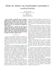Efeito de outliers em classificadores perceptron e voted-perceptron Artur M. Oliveira Universidade Federal de Minas Gerais PPGEE Belo Horizonte, Brasil oliveiraarturm@hotmail.com Abstract—Problemas de classificação têm sido amplamente estudados na área de aprendizado de máquinas, com diversos métodos propostos ao longo dos anos, como redes neurais, máquinas de vetor de suporte (SVM), árvores de decisão e KNN. Cada abordagem possui vantagens especı́ficas, como a simplicidade do KNN ou a robustez da SVM, mas também limitações, como o alto custo computacional ou sensibilidade aos dados de entrada. Entre esses métodos, o voted-perceptron surge como uma alternativa interessante. Ele aprimora o perceptron original de Rosemblatt [1] ao introduzir um mecanismo que pondera as predições feitas ao longo do treinamento, permitindo um desempenho competitivo com métodos mais complexos. Este artigo analisa o voted-perceptron, propondo ainda uma modificação para lidar com outliers usando o método da mediana, com o objetivo de melhorar sua eficácia em conjuntos de teste. I. I NTRODUÇ ÃO Na área de aprendizado de máquinas, problemas de classificação sempre foram de interesse ao longo dos anos. O problema de classificação supervisionada, em especı́fico, consiste em construir um modelo capaz de classificar dados futuros em suas devidas classes a partir de um conjunto de treinamento. Quanto maior é o conjunto de treinamento, maiores são as chances de o modelo performar bem em dados jamais vistos. Existem uma série de classificadores na literatura, dentre os principais estão o k-nearest-neighbor(KNN) [2], classificadores bayesianos [3], redes neurais artificiais [4], árvores de decisão [5] e as SVMs (support vector machines) [6]. Cada classificador tem suas vantagens e desvantagens. Métodos baseados em KNN normalmente são fáceis de implementar, entretanto, são computacionalmente lentos em grandes datasets. Árvores de decisão têm sido amplamente utilizadas em problemas de classificação, normalmente são mais rápidas que redes neurais, apesar de menos flexı́veis. Classificadores bayesianos são simples de implementar e possuem boa eficiência computacional, mas são menos precisos em datasets complexos e com alta correlação entre as variáveis. Apesar dessas e de diversas outras abordagens para classificação estarem consolidadas na literatura, as redes neurais vêm se sobressaindo. Redes neurais são amplamente utilizadas, entretanto, são sensı́veis à qualidade dos dados, método de treinamento, etc. Por sua versatilidade e aplicação quase que universal, as redes neurais são atualmente um dos métodos mais utilizados. Entretanto, as redes neurais como o perceptron, fazem a separação dos dados através de um hiperplano que normalmente é determinado pelo método de treinamento, como o gradiente descendente de uma função de custo, que pode não ser o hiperplano separador de margem máxima. Para solucionar esse problema, foi criada a SVM, que busca encontrar uma margem máxima de separação, e dessa forma, ter um erro menor de generalização. Proposta por Vapnik et al. em 1995, a SVM, foi inicialmente chamada de ”supportvector networks” [6]. Vapnik et al. resolveram um problema de classificação binária por meio de um hiperplano separador ótimo, no sentido em que essa separação busca respeitar a margem máxima de separação possı́vel em relação a um dado conjunto de dados. A SVM proposta teve bom desempenho em problemas que não são linearmente separáveis no espaço original dos dados de treinamento, pois utilizou-se um conceito chamado de kernel-trick, mencionado inclusive em 1992 por Vapnik et al. [7]. Apesar de extremamente precisa e superior a algumas arquiteturas de redes neurais, a SVM tem seu tempo de treinamento longo para datasets grandes e, especialmente, com kernels polinomiais [8]. Um classificador alternativo, que busca, assim como a SVM maximizar a margem de classificação, foi proposto por Freund et al.: o voted-perceptron [9]. O voted-perceptron é um algoritmo de classificação linear que aprimora o método tradicional do perceptron ao manter um histórico das previsões feitas ao longo do treinamento e atribuir pesos a cada uma delas com base em sua precisão. Isso é um aprimoramento ao perceptron original, que considera nas predições apenas o ultimo vetor de pesos. Além disso, o voted-perceptron utiliza funções de kernel para operar de forma eficaz em espaços de alta dimensão e é projetado para ser mais simples e rápido do que máquinas de vetor de suporte, enquanto alcança um desempenho competitivo. Nesse artigo será feita uma explicação do voted-perceptron e como ele se compara com o percpetron original definido por Rosemblatt em 1958 [1] nos datasets Boston Housing, MNIST e WINE. Será introduzido também uma modificação no voted-perceptron de modo a eliminar outliers do conjunto de treinamento e assim tentar melhorar o desempenho do algoritmo no conjunto de teste. II. O RGANIZAÇ ÃO Na seção III será feita uma breve revisão da literatura dos principais trabalhos que tiveram como objetivo buscar classificadores alta margem, bem como trabalhos onde esses classificadores foram aplicados com sucesso. Será também feita uma breve revisão de métodos de remoção de outliers em redes perceptron e seu impacto. Na seção IV será explicado de maneira breve os métodos de detecção de outliers utilizados nesse artigo e a diferença do voted-perceptron para o perceptron tradicional. Na seção V será explicada a metodologia de teste do método proposto nesse artigo. Quais datasets utilizar e como será feita a avaliação de desempenho. Na seção VI serão mostrados os resultados e, por fim, serão feitas as discussões finais. III. R EVIS ÃO DA LITERATURA O problema de classificadores de margem máxima ganhou atenção principalmente com os trabalhos de Vapnik. Em [7] foi proposto um alg