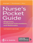 Nurse's Pocket Guide Diagnoses, Prioritized Interventions, and Rationales 1. Cover 2. Nav 3. Cover 4. Title Page 5. Copyright Page 6. Dedication 7. Contributors 8. Acknowledgments 9. Contents 10. How To Use the Nurse’s Pocket Guide 11. Nursing Diagnoses Accepted for Use and Research (2021–2023) 12. Nurse’s Pocket Minder 13. Chapter 1: The Nursing Process and Planning Client Care 14. Chapter 2: Nursing Diagnoses in Alphabetical Order 1. A 2. B 3. C 4. D 5. E 6. F 7. G 8. H 9. I 10. K 11. L 12. M 13. N 14. O 15. P 16. R 17. S 18. T 19. U 20. V 21. W 15. Chapter 3: Health Conditions and Client Concerns With Associated Nursing Diagnoses 16. Appendix 1: Tools for Choosing Nursing Diagnoses 1. Section 1: Adult Medical/Surgical Assessment Tool 2. Section 2: Diagnostic Divisions: Nursing Diagnoses Organized According to a Nursing Focus 17. Appendix 2 1. Section 1: Client Situation and Prototype Plan of Care 1. Plan of Care for Client With Diabetes Mellitus 2. Section 2: Another Approach to Planning Client Care—Mind or Concept Mapping 18. Index F. A. Davis Company 1915 Arch Street Philadelphia, PA 19103 www.fadavis.com Copyright © 2022 by F. A. Davis Company Copyright © 1985, 1988, 1991, 1993, 1996, 1998, 2000, 2002, 2004, 2006, 2008, 2010, 2013, 2016, 2019 by F. A. Davis Company. All rights reserved. This book is protected by copyright. No part of it may be reproduced, stored in a retrieval system, or transmitted in any form or by any means, electronic, mechanical, photocopying, recording, or otherwise, without written permission from the publisher. Printed in the United States of America Last digit indicates print number: 10 9 8 7 6 5 4 3 2 1 Acquisitions Editor: Jacalyn Sharp Senior Content Project Manager: Amy M. Romano Design and Illustration Manager: Carolyn O’Brien As new scientific information becomes available through basic and clinical research, recommended treatments and drug therapies undergo changes. The author(s) and publisher have done everything possible to make this book accurate, up to date, and in accordance with accepted standards at the time of publication. The author(s), editors, and publisher are not responsible for errors or omissions or for consequences from application of the book and make no warranty, expressed or implied, in regard to the contents of the book. Any practice described in this book should be applied by the reader in accordance with professional standards of care used in regard to the unique circumstances that may apply in each situation. The reader is advised always to check product information (package inserts) for changes and new information regarding dose and contraindications before administering any drug. Caution is especially urged when using new or infrequently ordered drugs. Library of Congress Control Number: 2018967079 Authorization to photocopy items for internal or personal use, or the internal or personal use of specific clients, is granted by F. A. Davis Company for users registered with the Copyright Clearance Center (CCC) Transactional Reporting Service, provided that the fee of $.25 per copy is paid directly to CCC, 222 Rosewood Drive, Danvers, MA 01923. For those organizations that have been granted a photocopy license by CCC, a separate system of payment has been arranged. The fee code for users of the Transactional Reporting Service is: 978-1-7196-4307-8/22 0 + $.25. Herdman, TH, Kamitsuru, S, Takáo Lopes, C (eds): Nursing Diagnoses— Definitions and Classification 2021–2023. Copyright © 2021, 1994–2021 NANDA International. Used by arrangement with Thieme. In order to make safe and effective judgments using NANDA-I nursing diagnoses, it is essential that nurses refer to the definitions and defining characteristics of the diagnoses listed in this work. DEDICATION This book is dedicated to: Our families, who helped with the mundane activities of daily living that allowed us to write this book and who provide us with love and encouragement in all our endeavors. Our friends, who support us in our writing, put up with our memory lapses, and love us still. Bob Martone, former Publisher, Nursing, who germinated the idea for this project so long ago. Jacalyn Sharp and Amy Romano, who have taken on the challenge of providing direct support and keeping us focused. Robert Allen, who has guided us through the XML maze since the book went high tech and is a lifeline we greatly appreciate. The F. A. Davis production staff, who coordinated and expedited the project through the editing and printing processes, meeting unreal deadlines, and sending pages to us with bated breath. Robert H. Craven, Jr., and the F. A. Davis family. And last and most important: The nurses we are writing for, to those who have found the previous editions of the Pocket Guide helpful, and to other nurses who are looking for help to provide quality nursing care in a period of transition and change, we say, “Nursing Diagnosis is the way.” CONTRIBUTORS Our heartfelt thanks to our collaborators. Your contributions made everything easier for us. Christina Baughn, DNP, RN, CNE Assistant Professor, Adult Health Nursing University of South Alabama College of Nursing Fairhope, Alabama Margaret Moore-Nadler, DNP, RN Associate Professor, Community Mental Health University of South Alabama College of Nursing Mobile, Alabama Linda R. Renberg, BA Instructor, English, Music, and Education (ret.) Research Assistant Mitchell, South Dakota ACKNOWLEDGMENTS A special acknowledgment to Marilynn’s friend, the late Diane Camillone, who provoked an awareness of the role of the patient and continues to influence our thoughts about the importance of quality nursing care, and to our late colleague, Mary Jeffries, who started us on this journey and introduced us to nursing diagnoses. To our colleagues in NANDA International, who continue to formulate and refine nursing diagnoses to provide nursing with the tools to enhance and promote the growth of the profession. Marilynn E. Doe