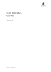 Radio Description Radio 4428 Description 210/1551-LZA 701 6001/1 Uen Z Copyright © Ericsson AB 2017–2019. All rights reserved. No part of this document may be reproduced in any form without the written permission of the copyright owner. Disclaimer The contents of this document are subject to revision without notice due to continued progress in methodology, design and manufacturing. Ericsson shall have no liability for any error or damage of any kind resulting from the use of this document. Trademark List All trademarks mentioned herein are the property of their respective owners. These are shown in the document Trademark Information. 210/1551-LZA 701 6001/1 Uen Z | 2019-03-11 Contents Contents 1 Introduction 1 1.1 Warranty Seal 1 2 Product Overview 2 2.1 Main Features 3 3 Technical Data 5 3.1 Installation Recommendations 7 3.2 Installation Alternatives 9 3.3 Space Requirements 12 3.4 Acoustic Noise 16 3.5 Environmental Characteristics 16 3.6 Power Characteristics 17 3.7 System Characteristics 19 4 Hardware Architecture 20 4.1 Radio Overview 20 4.2 Optical Indicators and Buttons 21 5 Connection Interfaces 23 5.1 Antenna Interface 24 5.2 Maintenance Button 24 5.3 Optical Indicators 25 5.4 Interface for Optical Cable to Main Unit 25 5.5 −48 V DC Power Supply Interface 25 5.6 Grounding Interface 26 5.7 Ext Alarm Interface 26 5.8 ALD Ctrl Interface 26 6 Standards and Regulations 27 6.1 Regulatory Approval 27 6.2 Other Standards and Regulations 29 210/1551-LZA 701 6001/1 Uen Z | 2019-03-11 Radio Description 210/1551-LZA 701 6001/1 Uen Z | 2019-03-11 Introduction 1 Introduction 1.1 Warranty Seal The product is equipped with a warranty seal sticker. Note: Seals that have been implemented by Ericsson must not be broken or removed, as it otherwise voids warranty. 210/1551-LZA 701 6001/1 Uen Z | 2019-03-11 1 Radio Description 2 Product Overview The radio remotely extends the reach of the Radio System, and is designed to be located near the antenna. The radio is part of a modular radio building concept that enables a variety of installation alternatives that are also easy to expand. Flexible mounting solutions are provided using rails, pole clamps, and brackets. The small size of the radio together with the flexible mounting solutions reduces the site volume. The lower weight also improves the handling of the radio. An optic cable connects the radio to the Radio System main unit or an expanded macro Radio System. The radios can be connected in a star configuration or in a cascade configuration with optical cable links. An overview of different radio installations is shown in Figure 1. 2 210/1551-LZA 701 6001/1 Uen Z | 2019-03-11 Product Overview Legends Main unit Radio Optical cable Ge7613B Figure 1 Radio Installations 2.1 Main Features The following are the main features of the radio: — Two-wire (DC-C) power connections. — GSM, WCDMA, LTE FDD, and NB-IoT. — Duplex transmitter/receiver (4TX/4RX) branches. — Up to 10.1 Gbps CPRI (optical). 210/1551-LZA 701 6001/1 Uen Z | 2019-03-11 3 Radio Description — Complies with 3GPP base station classes Medium Range and Wide Area. For a list of relevant standards, see Radio Standards Compliance on page 28. 4 210/1551-LZA 701 6001/1 Uen Z | 2019-03-11 Technical Data 3 Technical Data Table 1 Radio 4428 Technical Data Description Value Maximum nominal output 4 × 40 W power(1) (2) (License key is required for total power over 4 × 5 W.) Number of carriers per branch LTE: 6 downlink, 6 uplink GSM: 4 downlink, 6 uplink WCDMA: 6 downlink, 6 uplink NB-IoT in-band mode: 1 NB-IoT carrier per configured LTE host carrier NB-IoT standalone mode: 2 NB-IoT carriers per RF port NB-IoT guard band mode: 1 NB-IoT carrier per configured LTE host carrier Number of carriers per radio LTE: 4 × 6 downlink, 4 × 6 uplink GSM: 12 downlink, 24 uplink WCDMA: 4 × 6 downlink, 4 × 6 uplink NB-IoT in-band mode: 1 NB-IoT carrier per configured LTE host carrier NB-IoT standalone mode: 4 × 2 NB-IoT carriers NB-IoT guard band mode: 1 NB-IoT carrier per configured LTE host carrier Frequency(3) 1719–1765 MHz uplink 1805–1860 MHz downlink B3B for GSM, LTE, NB-IoT in-band mode, NB-IoT standalone mode, and NB-IoT guard band mode 1710–1785 MHz uplink 1805–1880 MHz downlink B3 for GSM, LTE, NB-IoT in-band mode, NB-IoT standalone mode, and NB-IoT guard band mode 1920–1980 MHz uplink (4) 2110–2170 MHz downlink 210/1551-LZA 701 6001/1 Uen Z | 2019-03-11 5 Radio Description Description Value B1 for WCDMA, LTE, NB-IoT in-band mode, NBIoT standalone mode, and NB-IoT guard band mode Dimensions Height 420 mm Width 342 mm Depth 131 mm Weight Radio 4428 17.5 kg Color Body NCS S 1002-B Front NCS S 6502-B (1) For detailed information about licenses and HWAC, see the following: GSM: User Description, GSM RAN Handling of Software Licenses and Hardware Activation Codes and MCPA Guideline in the GSM RAN CPI library. WCDMA: Licenses and Hardware Activation Codes in Ericsson Software Model in the WCDMA RAN CPI library. LTE: Manage Licenses and Hardware Activation Codes in the Radio Node libraries. (2) For detailed information about output power, see the applicable Output Power feature description. (3) For information about IBW, see RBS Configurations. (4) On B1, the frequency point 1966.08 MHz is not supported for NB-IoT mode. 6 210/1551-LZA 701 6001/1 Uen Z | 2019-03-11 Technical Data 342 131 420 Unit of measurement: mm Ge15485A Figure 2 Radio 4428 Height, Width, and Depth 106 52 27.9 Unit of measurement: mm G109563A Figure 3 3.1 Installation Recommendations To achieve reliable operation, and maximum performance, an appropriate installation location must be chosen. 210/1551-LZA 701 6001/1 Uen Z | 2019-03-11 7 Radio Description 3.1.1 Indoor Locations to Avoid Although the unit is designed for outdoor use, it can also operate in an indoor environment according to ETSI EN 300 019-1-3 class 3.1, 3.2, 3.3, and 3.6. This does not cover installation with heat traps or installation in lofts, wher