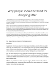 Why people should be fined for dropping litter Dropping litter causes a lot of damage to the environment as well as to humans and animals. Furthermore, it may cause diseases and different kinds of viruses to spread which can result in casualties. In addiiton, a tyre can be punctured if it runs over a sharp fragment or a young child might get injured due to litter. When I was seven years old, I witnessed my neighbhour’s three-year-old child hitting her head on the ground. She had to be immediately taken to a hospital because she had slipped as soon as she accidentally ran on some pieces of garbage that were scattered around. Another account that I can recall is a man riding his car at high speed and colliding with another car since his car punctured suddenly after he drove over tiny fragments of broken glass. I have only listed two accounts of people suffering from the litter that we drop. Think about the number of people worldwide who lose their loved ones just because of our one little mistake. Would you derive pleasure from seeing people hurting themselves just because you drop litter? Keeping your environment safe is in your hands now. I urge you to dispose of litter in a sensible manner. Re : How whales are important for the ecosystem Dear Class, I wanted to inform you about the importance of whales, and why they should be saved. As you already know, a lot of animals on Earth are already endangered and some of them have even become extinct. This is a red flag for us to take swift action and save our planet to prevent further damage to our environment. Just like other animals in a food chain, whales also play an important role in theirs. If there were no whales, small fish in the ocean would consume all of the plants underwater. Whales balance their ecosystem by consuming these fish and keeping everything in order. Whales are predators as well as prey. Scavengers, sharks and orcas rely on these whales for their food. Sharks and orcas both hunt on these whales and scavengers feed on them after they have died. This tells us that not only do whales keep the aquatic animals in balance, but also help some of them to grow. I strongly believe that whales should not be hunted down by humans for their fins or other reasons. A lot of whales are already being killed by us and might become extinct in the future. Would you like to be a participant of those who are engaged in the activity of killing whales and destroying our Earth’s environment? Please think carefully about the repercussions before indulging in such selfish and unnecessary practices. Re: Why should whales be held in captivity Dear Jennie Pierce, I have read the letter that you had sent me and have taken all your points into consideration. However, it is best for these whales to stay at our parks as it is a safe environment for them. They do not have to worry about predators hunting them down, or worrying whether they will have enough food to eat. Would you rather have to hungrily look for food to eat or be fed sufficient and healthy diets that are fixed? You mentioned that the whales in the wild swim up to 100 miles a day, and that they are unable to swim here from lack of space. Although our parks are not as long as the oceans in the wild, the whales exercise every day for an amount of time that is necessary for them. Our coaches train them and ensure that they do not face any danger, unlike in the wild. Also, I recall that you said that whales should not be bribed to perform in order for us to provide them with food. This is absolutely incorrect. Taking care of the killer whales is our priority and we never starve them even if they do not obey the instructors. Regarding the point in which you said that killer whales should not be forced to perform to audiences on a daily basis, performing is actually helpful for the whales as they move their body during that time and exercise, which is basically beneficial for their health and well-being. Lastly, it is not necessary for whales that live in captivity to live shorter lives than the whales that live freely. It utterly depends upon the environment they are living in, and how they are being treated. There are other factors that contribute to some whales dying earlier than others, such as diseases or injuries. I assure you that the whales at our Parks are well taken care of and that they are not living in a harmful environment. If they were, we would have never kept them here to perform. The best and safest option for these whales is to stay here with us, where they face no danger. Sincerely, Jannat Save the Whales "Save the whales!" That's what the bumper sticker on the Smiths' car read. It was an abstract idea, of course. Jake liked having the sticker make a statement. He just never expected to get a chance to save a real whale, one right in his own neighborhood. It was a Saturday morning when the newspaper first reported the whale sightings. A pod of the mammals were swimming close to shore. Everyone around the beach town rushed out to the shore to see them. They were expecting a beautiful show, better than a movie, but nothing they'd have to do anything about. As crowds of people hurriedly walked towards the shore, Jake decided to ask his parents to take him there by car even if he might run late. The reason why he wanted to take his car with him was to show everyone the sticker on his car so that everyone would know that he actually cared about whales. While he quickly climbed the stairs, he hollered, “Mum, let’s go and watch whales, I heard that they have been sighted near the shore!” His Mum replied, “Alright, give me a few minutes.” When his Mum finally dressed up, they headed for the beach. Jake was full of anticipation as he was crazy about whales. He constantly kept talking about them throughout the whole car ride and as soon as him Mum parked, he jumped out of the car and hotfooted towards the ocean. However, the smile from his face disappeared when he saw a g