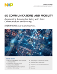 WHITE PAPER 6G COMMUNICATIONS AND MOBILITY 6G COMMUNICATIONS AND MOBILITY Augmenting Automotive Safety with Joint Communication and Sensing CONTRIBUTING AUTHORS: Dick Van Den Broeke, Wim Van Houtum, Kees Moerman, Ashish Pandharipande, Wim Rouwet and Mark Tomesen TABLE OF CONTENTS 1. NXP focus on Safe Mobility, Secure Connectivity, and Intelligent Edge 2. Societal Trends and Dynamics around Communications and Mobility 3. Systems Trustworthiness at Focus Application Automotive, Adding Sensing 4. Technical Aspects in Evolution from 5G to 6G 5. Augmenting the Car Safety System 6. Automotive UE and Accurate Localization-info 7. Conclusions 8. References WHITE PAPER 6G COMMUNICATIONS AND MOBILITY 1. NXP FOCUS ON SAFE MOBILITY, SECURE CONNECTIVITY, AND INTELLIGENT EDGE NXP Semiconductors N.V.(NXP) is a global company with the mission to enable secure connections for a smarter world, advancing solutions that make lives easier, better and safer. As the world leader in secure connectivity solutions for embedded applications, NXP is driving innovation in the automotive, industrial and IoT, mobile, and communication infrastructure markets. With more than 60 years of combined experience and expertise, NXP has approximately 31,000 employees worldwide including 11,000 engineers in R&D who have created 9,500 patent families. The company posted revenues of $11.06 billion in 2021. Based on the company’s expertise in high-performance mixed-signal technology, NXP drives innovation in the automotive, identification and mobile electronics industries as well as in the fields of communication and connected and automated driving (CAD). Core areas of the NXP portfolio include processors and microcontrollers, automotive sensors such as car radar, cyber-security, and wired/wireless communication. Wireless communication is a key field of expertise at NXP, and 5G, beyond 5G (B5G) and 6G are target product areas. The purpose of this paper is to provide a vision for what lies beyond 5G / 6G communications aiming especially at secure connectivity and safe mobility. SAFE MOBILITY SECURE CONNECTIVITY Towards Zero Accidents, Zero Emissions, Zero Time Wasted Interoperating Securely and Enabling New Experience INTELLIGENT EDGE Winning at the Edge Fig. 1: NXP applications overview Three major automotive system trends are driving the future of the connected car [1]. First, vehicle-to-cloud connectivity and telematics are redefining critical use case domains including vehicle safety and public safety. Second, advances in technology are enhancing car-centric, in-vehicle experiences, smart access and mobility. Third, the rise of vehicle-to-everything (V2X) communications complements other sensor technologies used for advanced driver-assistance systems (ADAS) and autonomous driving. Beyond these automotive connectivity topics, we are developing new ways to enhance automotive system designs by integrating environmental sensing as a feature of the communications network. The NXP blog [2], ”6G Joint Communication and Sensing”, provides several examples of ways to enhance the safety of roadway infrastructure including smart street intersections. A recent blog from Ericsson [3] identifies sensing capabilities as an integral part of future 6G networks. In this NXP white paper, we will elaborate on the wider field of 6G communications and mobility. 2. SOCIETAL TRENDS AND DYNAMICS AROUND COMMUNICATIONS AND MOBILITY Our daily lives have become increasingly interconnected in a world where “things” observe, perceive and interact www.nxp.com with us in smarter ways. Through advances in engineering, we are adding sensing capabilities to connected devices and provide communications technology and intelligence to create complex systems such as self-driving cars and smart robotics in manufacturing facilities. 6G connectivity will have a profound impact on the future of transportation and manufacturing. 6G technology encompasses signal waveforms, network architecture and topologies, edge compute options, target applications and use cases. This white paper provides NXP’s view on the broader scope of 6G development while focusing on the application 6G in automotive safety. To set the scene, let’s start by discussing key societal progress drivers relevant for 6G communications and mobility. Then we will delve deeper into a key overarching topic: the element of “trustworthiness” of the system as a whole. Many stakeholders have raised the topic of trustworthiness as an important consideration in 6G development given ever-increasing system complexities and the public’s high desire for systems/data integrity and credibility. Purposeful networking has been part of NXP’s 6G vision [13]. To this end, we see high value in building on the trustworthiness target model as described in [4]. Delving deeper into the matter, we will discuss 6G drivers with a focus on the automotive ecosystem’s high demands 2 WHITE PAPER 6G COMMUNICATIONS AND MOBILITY for safety and conclude with examples of potential 6G enhancements in addition to the embedded car safety system with its connected side communications options through vehicle-to-vehicle (V2V) and vehicle-to-infrastructure (V2I) connectivity, leveraging the strength of local available information and local communications channels. The augmentations through 6G are described in Beyond 5G (B5G) / 6G next-generation localization principles, as well as through embedding communications infrastructure capabilities such as Joint Communication and Sensing (JCAS). Given its leadership position in the automotive semiconductor industry and broad portfolio of hardware and software security technologies, NXP has considerable expertise in automotive safety and security. NXP views trustworthiness as a comprehensive assurance of systems operations, guaranteeing very critical service performance in line with the expectations the industry commonly applies to automotive systems. Figure 2 provides a snapshot of seve