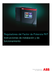 Reguladores del Factor de Potencia RVT Instrucciones de instalación y de funcionamiento Contenido Leer esto primero .............................................................................................................. 4 1 Introducción al regulador............................................................................................ 6 1.1 Un potente regulador de factor de potencia con control en las tres fases individualmente .............................................................................................................. 6 1.2 Funciones principales del RVT .............................................................................. 6 1.3 Vista frontal y vista posterior ................................................................................. 7 1.4 Interfaz de pantalla táctil en color .......................................................................... 9 2 Instalación .................................................................................................................. 10 2.1 Montaje ................................................................................................................ 10 2.2 Conexionado de cables ....................................................................................... 11 2.3 Esquema de cableado ......................................................................................... 12 3 Fácil comienzo ........................................................................................................... 14 3.1 Navegación por los menús .................................................................................. 14 3.1.1 Simbología de los iconos de la pantalla táctil ............................................ 14 3.1.2 Barra de título ............................................................................................ 16 3.1.3 Área de ajuste ............................................................................................ 17 3.1.4 Barra de estado ......................................................................................... 17 3.1.5 Pantalla de introducción mediante teclado ................................................ 18 3.2 Puesta en marcha del RVT ................................................................................. 18 3.3 Puesta en marcha automática ............................................................................. 18 3.3.1 Descripción ................................................................................................ 19 3.3.2 Preparación para la puesta en marcha automática ................................... 19 3.3.3 Puesta en marcha automática ................................................................... 19 4 Mediciones y Parámetros.......................................................................................... 24 4.1 Mediciones........................................................................................................... 24 4.1.1 Vista general .............................................................................................. 25 4.1.2 Valores del sistema ................................................................................... 28 4.1.3 Forma de onda........................................................................................... 31 4.1.4 Meter .......................................................................................................... 31 4.1.5 Registros .................................................................................................... 32 4.2 Parámetros .......................................................................................................... 34 4.2.1 Ajuste manual (modo Modificar) ................................................................ 34 4.2.1.1 Ajustes de batería ............................................................................... 35 4.2.1.2 Ajustes instalación .............................................................................. 43 4.2.1.3 Ajustes usuario.................................................................................... 45 4.2.1.4 Protecciones/avisos ............................................................................ 47 4.2.1.5 Restablecer los ajustes por defecto ....................................................50 4.2.2 Puesta en servicio (modo Modificar) ......................................................... 50 4.2.2.1 Puesta en marcha fácil ....................................................................... 51 4.2.2.2 Puesta en marcha guiada ................................................................... 51 4.2.2.3 Puesta en marcha de las sondas T ....................................................51 4.3 Control de la batería ............................................................................................ 52 4.3.1 Diagnóstico ................................................................................................ 53 4.3.2 Comprobar función .................................................................................... 53 4.3.3 Histórico alarma ......................................................................................... 54 4.3.4 Reloj de tiempo real ................................................................................... 55 Reguladores del Factor de Potencia RVT Contenido - 2 4.4 Comunicación ...................................................................................................... 55 4.4.1 Configuración E/S ...................................................................................... 59 4.4.1.1 Ajuste de idioma.................................................................................. 59 4.4.1.2 Unidad Temp....................................................................................... 60 4.4.1.3 Ajustes de con..................................................................................... 60 4.4.2 Configuraciones