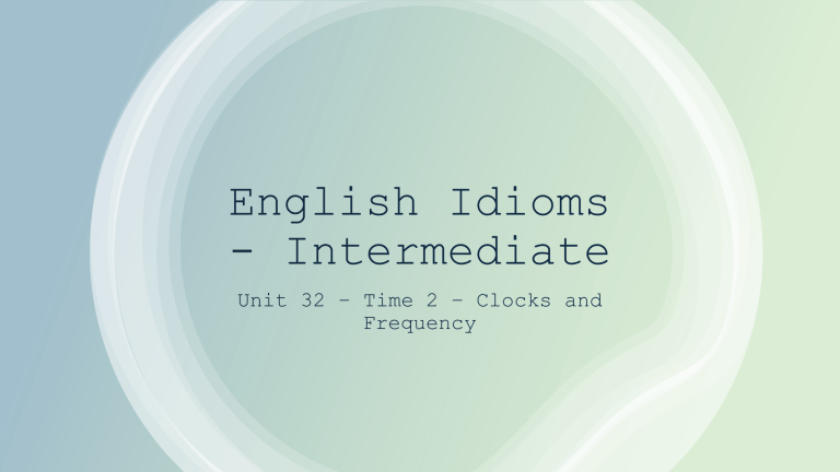 English Idioms - Intermediate Unit 32 – Time 2 – Clocks and Frequency • If you do something against the clock, you do it as fast as possible and try to finish it before a certain time. • Almost instantly, immediately, as in The train will be here in no time at all , or he'll be finished in less than no time • The idiom "not have a minute to call one's own" is believed to have originated in the late 19th century. This phrase is used to describe a situation where someone is extremely busy or has a lot of responsibilities, leaving them with no free time to relax or don’t have a minute to myself • Very early morning, daybreak. For example, I got up at the crack of dawn . The crack in this term alludes either to the suddenness of sunrise or to the small wedge of light appearing as the sun rises over the horizon. • Extremely rare, especially as an opportunity. For example, An offer like that will come just once in a lifetime . now and for the last time; finally. • intermittently. • "it rained on and off most of the afternoon" on nearly every occasion. Running smoothly, working very well.