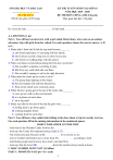 SỞ GIÁO DỤC VÀ ĐÀO TẠO …………………………… ĐỀ THI SỐ 02 (Đề thi này gồm có 08 trang) KỲ THI TUYỂN SINH VÀO LỚP 10 NĂM HỌC 2019 - 2020 ĐỀ THI MÔN TIẾNG ANH (Chuyên) Thời gian làm bài: 120 phút --------------------------------------------------------------------------------------------------------------Họ và tên thí sinh: ...............................................................số báo danh: ............................................................... A. LISTENING (1 pt) Part 1. You will hear an interview with a girl called Maria Shaw, who went on an outdoor adventure trip with girls from her school. For each question, choose the correct answer A, B or C. 1. Maria didn’t think she’d find the trip hard because _______. A. she’d had experience o f cam ping with her family. B. she’d always cycled a long way to school every day. C. she’d been on walking trips with the school. 2. What was Maria worried about during the first day’s activities? A. She wouldn’t complete everything in time. B. She’d be very cold while she was there. C. She wouldn’t manage to sail in the right direction. 3. What made the climb up the rocks so slow? A. The group kept slipping on the slopes. B. Several students fell and hurt themselves. C. Parts of the climb were extremely steep. 4. When M aria’s group got to the top of the rocks, they _______. A. were given a talk on the environment. B. to o k photos of each other. C. ate a big meal. 5. Maria says that by the end of the trip the girls were _______. A. feeling keen to go home again. B. working together better. C. cooking food for each other. Part 2. You will hear a boy called Josh talking to his class about a trip he recently went on. For each question, fill in the missing information in the numbered spaces. JOSH’S WHEATHER CENTRE TRIP - Josh went to the Weather Centre with his (6) ………………………. . - Josh says the Centre first reported strong winds in (7) ……………………….. - The Centre later put forecasts in (8) ………………………. for everyone to see. - Lots of weather information now comes from (9) ………………………. according to Josh. - Josh thinks people need to know how much rain there'll be. - Josh says that his local (10) ………………………. about the weather always needs to know. I. TRẮC NGHIỆM NGÔN NGỮ (3,5 điểm) PART 1: PHONETICS (0.5 pts - 0.1/ each) 1 Task 1: Choose the word (A, B, c or D) whose underlined part is pronounced differently from that of the rest in each o f the following questions. 11. A. financial B. intellectual C. preferential D. potential 12. A. merchant B. sergeant C. commercial D. term Task 2: Choose the word (A, B, c or D) whose main stress pattern is different from that o f the rest in each of the following questions. 13. A. character B. industry C. position D. audience 14. A. witness B. compete C. trophy D. title 15. A. activity B. investigate C. diversity D. fertilizer PART 2: LANGUAGE FUNCTION (0.5 pts - 0.1/ each) Choose the word or phrase (A, B, C or D) that best completes each of the following exchanges. 1. Janet: “Do you feel like going to the cinema this evening?” Susan: “____________.” A. You’re welcome B. That would be great C. I feel very bored D. I don't agree, I'm afraid 2. Bill: -“I am terribly sorry !” Jill: -“____________.” A. It’s nothing B. Nothing C. Don’t worry D. Never mind ! 3. Peter: “ Janet, make us some tea, will you?” Janet: “____________.” A. No, I won’t I’m afraid. B. Don’t worry. Go ahead C. Sorry, I don’t D. I’m afraid I can’t 4. - Peter: “Do you have a minute please?” - Tim: “____________.” A. Yes. But you should be brief B. That’s just fantastic. Thank. C. Sorry, I left my watch at home. D. Well, it is not as good as I think 5. Hint: “I have passed all my examinations !” TMK: “____________.” A. My dear! B. Best wishes! C. Well done! D. That’s very well! PART 3: SYNONYM AND ANTONYM (0.5 pts - 0.1/ each) Task 1: Choose the word or phrase (A, B, C or D) that is CLOSEST in meaning to the underlined part in each of the following sentences. 21. This tapestry has a very complicated pattern. A. obsolete B. intricate C. ultimate D. appropriate 22. During the Great Depression, there were many wanderers who traveled on the railroads and camped along the tracks. A. veterans B. tyros C. vagabonds D. zealots 23. We decided to pay for the furniture on the installment plan. A. monthly payment B. cash and carry C. credit card D. piece by piece Task 2: Choose the word or phrase (A, B, C or D) that is OPPOSITE in meaning to the underlined part in each of the following sentences. 24. There is growing concern about the way man has destroyed the environment. A. ease B. attraction C. consideration D. speculation 25. Fruit and vegetables grew in abundance on the island. The islanders even exported the surplus. A. large quantity B. small quantity C. excess D. sufficiency PART 4: LEXICO - GRAMMAR (2.0 pts - 0.1/ each) Choose the word or phrase (A, B, C or D) that best completes each of the following sentences. 2 26. After the car crash last night, all the injured ________to the hospital in an ambulance. A. was rushing B. were rushed C. was rushed D. were rushing 27. “The inflation rate in Venezuela is five times________my country,” he said. A. as much as B. more than C. as many as that in D. as high as that in 28. If you don’t stop smoking, you ________the risk of developing chronic bronchitis. A. bear B. take C. make D. run 29. If you lose your passport, you should contact the embassy without ________. A. delay B. cancel C. postpone D. consider 30. The man ________to having stolen the car. A. refused B. admitted C. decided D. apologized 31. Congress finally ________the law after a two-year debate. A. verified B. adapted C. applied D. adopted 32. Phew, what a lucky escape it was! We ________have been kille