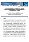 Vol 15, Issue 3, (2025) E-ISSN: 2222-6990 Inclusive Education Practices in the General Education in South San Francisco through the Lens of Filipino Teachers Preciosa Febres, Benjamin Siy Jr. Graduate School of Education, University of Perpetual Help System Dalta *Corresponding Author Email: preciosafebres@gmail.com To Link this Article: http://dx.doi.org/10.6007/IJARBSS/v15-i3/25016 DOI:10.6007/IJARBSS/v15-i3/25016 Published Date: 14 March 2025 Abstract The goal of inclusive education is to give every student equitable access to high quality education, regardless of their circumstances, talents, or histories. It is a transformative approach. In San Francisco, inclusive education is a commitment to creating a climate in which diversity is valued and every student has the chance to achieve, not merely a policy. San Francisco is dedicated to diversity, but putting inclusive education into practice presents a number of obstacles. The lack of resources may make it difficult to access the assistance and services that are required. Another area that requires ongoing development is teacher preparation, as educators This study aimed to determine inclusive education practices in the general education in South San Francisco through the lens of Filipino teachers. Qualitative phenomenological research was employed in this study to determine the lived experiences of the participants. The findings of this study revealed that the experiences of the Filipino teachers teaching inclusive education resulted in the development of four major themes. The four themes include expectations and routine, Universal Design for Learning Usage, Time Management, and Positive social Effect to Students without Disabilities. Insight gained by the researcher include the best practices in inclusive education, challenge faced by teachers in implementing inclusive education, and the effect it has to students without disabilities. Based on the outcome of the study, the researcher proposed the Inclusive education STAR Model. The first and second theme were combined as best practices in inclusive education while the third theme is the challenge that teachers are facing in implementing inclusive education. The fourth theme is the effect that inclusive education has to students with disabilities. The STAR model stands for S- safe learning environment, T- teacher’s professional development, AAdministrator’s Support, and R-Resources. The proposed model can be used by teachers, most especially by Filipino teachers teaching in South San Francisco and by the administrator to successfully implement inclusive education. Keywords: Inclusive Education, Live Experiences, Phenomenology, Students with Disabilities 864 INTERNATIONAL JOURNAL OF ACADEMIC RESEARCH IN BUSINESS AND SOCIAL SCIENCES Vol. 1 5 , No. 3, 2025, E-ISSN: 2 2 2 2 -6990 © 2025 Introduction Inclusion has been one of the most controversial topics in education, especially in special education. There are different perceptions towards inclusive education. Different studies were conducted to fully understand the true essence of inclusive education. Inclusive education serves as a foundation for most educational philosophies embodying the principle that all students regardless of their background, abilities, and differences should have an access to quality education and be supported in their success. Inclusive education promotes tolerance of diversity and dismantle barriers to learning. Inclusive education has been one of the controversial topics in education as many individuals from this sector most especially in special education advocate for the inclusion of students with disability in general education classrooms. Inclusion is a concept that has been around for years and is implemented in schools (Bakken & Obiakor, 2016). UNICEF (2017) defines inclusive education as an educational system that accepts and encourages all students to study, regardless of who they are, what they can do, or what their needs are. This entails ensuring that the curriculum, instruction, school facilities, play areas, transportation, and restrooms are suitable for all students at all levels. All students receive an inclusive education by attending the same schools. Inclusive education not only focuses on the academic support that should 2 be given to learners with disability but also to all aspects that are related in providing quality education such as physical, emotional and social needs. Accommodation and modifications are not only given inside the classroom but as well as the whole school where all learning and development occurs. The core tenet of inclusive education, according to the Salamanca Statement and Framework for Action, is that all students, regardless of any challenges or differences they may have, should learn together whenever feasible (UNESCO, 1994). Children regardless of their cultural, socio-economic status, abilities and disabilities should have equal access to education and thus, achieve their maximum potential to be an efficient and independent member of the society. As cited by Fuente, By (2021), inclusive education hopes to integrate special needs students into the general education population in a way that maximizes their potential for holistic development in a flexible learning environment. It is a transformative approach in education that aims to accommodate and celebrate diversity contrary to the notion of segregation or exclusion based on factors such as disability, race, socioeconomic status, gender identity, or language proficiency. Inclusive education embodies a broad range of educational practices which includes accessible curriculum design, differentiated instruction, universal design for learning, collaboration among stakeholders, and the provision of necessary support services to meet the individual needs of all learners The purpose of inclusive education, according to Ainscow (2020), is to value and acknowledge the individual variety of every person—not simp