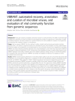 Kieft et al. Microbiome (2020) 8:90 https://doi.org/10.1186/s40168-020-00867-0 METHODOLOGY Open Access VIBRANT: automated recovery, annotation and curation of microbial viruses, and evaluation of viral community function from genomic sequences Kristopher Kieft, Zhichao Zhou and Karthik Anantharaman* Abstract Background: Viruses are central to microbial community structure in all environments. The ability to generate large metagenomic assemblies of mixed microbial and viral sequences provides the opportunity to tease apart complex microbiome dynamics, but these analyses are currently limited by the tools available for analyses of viral genomes and assessing their metabolic impacts on microbiomes. Design: Here we present VIBRANT, the first method to utilize a hybrid machine learning and protein similarity approach that is not reliant on sequence features for automated recovery and annotation of viruses, determination of genome quality and completeness, and characterization of viral community function from metagenomic assemblies. VIBRANT uses neural networks of protein signatures and a newly developed v-score metric that circumvents traditional boundaries to maximize identification of lytic viral genomes and integrated proviruses, including highly diverse viruses. VIBRANT highlights viral auxiliary metabolic genes and metabolic pathways, thereby serving as a user-friendly platform for evaluating viral community function. VIBRANT was trained and validated on reference virus datasets as well as microbiome and virome data. Results: VIBRANT showed superior performance in recovering higher quality viruses and concurrently reduced the false identification of non-viral genome fragments in comparison to other virus identification programs, specifically VirSorter, VirFinder, and MARVEL. When applied to 120,834 metagenome-derived viral sequences representing several human and natural environments, VIBRANT recovered an average of 94% of the viruses, whereas VirFinder, VirSorter, and MARVEL achieved less powerful performance, averaging 48%, 87%, and 71%, respectively. Similarly, VIBRANT identified more total viral sequence and proteins when applied to real metagenomes. When compared to PHASTER, Prophage Hunter, and VirSorter for the ability to extract integrated provirus regions from host scaffolds, VIBRANT performed comparably and even identified proviruses that the other programs did not. To demonstrate applications of VIBRANT, we studied viromes associated with Crohn’s disease to show that specific viral groups, namely Enterobacteriales-like viruses, as well as putative dysbiosis associated viral proteins are more abundant compared to healthy individuals, providing a possible viral link to maintenance of diseased states. (Continued on next page) * Correspondence: karthik@bact.wisc.edu Department of Bacteriology, University of Wisconsin–Madison, Madison, WI 53706, USA © The Author(s). 2020 Open Access This article is licensed under a Creative Commons Attribution 4.0 International License, which permits use, sharing, adaptation, distribution and reproduction in any medium or format, as long as you give appropriate credit to the original author(s) and the source, provide a link to the Creative Commons licence, and indicate if changes were made. The images or other third party material in this article are included in the article's Creative Commons licence, unless indicated otherwise in a credit line to the material. If material is not included in the article's Creative Commons licence and your intended use is not permitted by statutory regulation or exceeds the permitted use, you will need to obtain permission directly from the copyright holder. To view a copy of this licence, visit http://creativecommons.org/licenses/by/4.0/. The Creative Commons Public Domain Dedication waiver (http://creativecommons.org/publicdomain/zero/1.0/) applies to the data made available in this article, unless otherwise stated in a credit line to the data. Kieft et al. Microbiome (2020) 8:90 Page 2 of 23 (Continued from previous page) Conclusions: The ability to accurately recover viruses and explore viral impacts on microbial community metabolism will greatly advance our understanding of microbiomes, host-microbe interactions, and ecosystem dynamics. Keywords: Virome, Virus, Bacteriophage, Metagenome, Machine learning, Auxiliary metabolism, Software Background Viruses that infect bacteria and archaea are globally abundant and outnumber their hosts in most environments [1–3]. Viruses are obligate intracellular pathogenic genetic elements capable of reprogramming host cellular metabolic states during infection and can cause the lysis of 20– 40% of microorganisms in diverse environments every day [4, 5]. Due to their abundance and widespread activity, viruses are key facets in microbial communities as they contribute to cycling of essential nutrients such as carbon, nitrogen, phosphorus, and sulfur [6–10]. In human systems, viruses have been implicated in contributing to dysbiosis that can lead to various diseases, such as inflammatory bowel diseases, or even have a symbiotic role with the immune system [11–13]. Viruses harbor vast potential for diverse genetic content, arrangement, and encoded functions [14–17]. Recognizing their genetic diversity, there has been substantial interest in “mining” these viral sequences for novel anti-microbial drug candidates, enzymes for biotechnological applications, and for bioremediation [18– 22]. Recently, it has been appreciated that viruses may directly link biogeochemical cycling of nutrients by specifically driving metabolic processes [23–27]. For example, during infection, viruses can acquire 40–90% of their required nutrients from the surrounding environment by taking over and subsequently directing host metabolism [28–30]. To manipulate host metabolic frameworks, some viruses selectively “steal” metabolic genes from their host. These host-derived genes,
