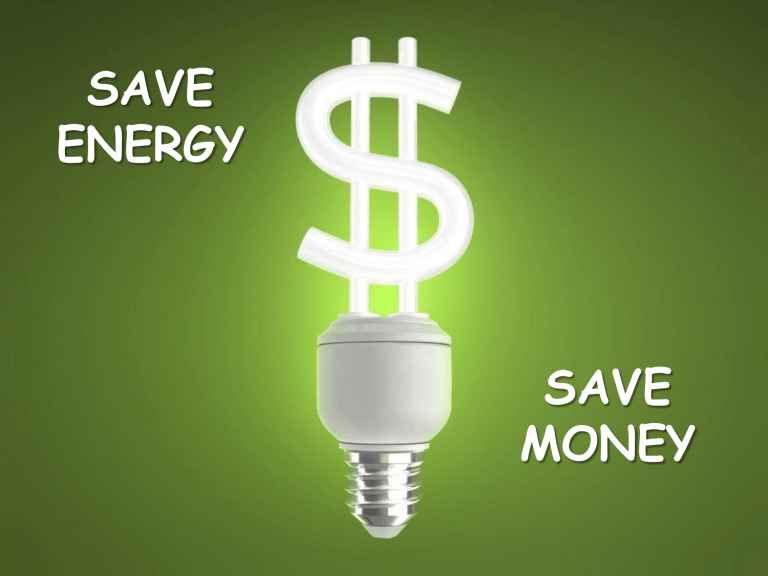 SAVE ENERGY SAVE MONEY ENERGY SAVING TIPS The sun warms us and gives us light during the day. At night, and during the colder months, we need light and warmth from other sources… The electricity which we use is mostly made by burning coal or gas in power stations. SO WHAT CAN YOU DO TO STOP THE GLOBAL WARMING? You can turn off the lights when you don’t need them! Suggest that the grown ups who do the shopping buy energy saving light bulbs. Switch off! Don’t leave it on standby! If you can see a light like this when the TV is off, it is using almost as much energy as if it was on! SAVE ENERGY SAVE MONEY SAVE THE EARTH
