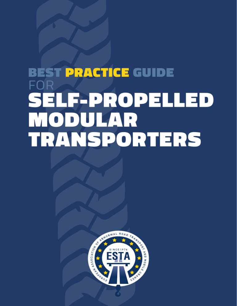 BEST PRACTICE GUIDE FOR SELF-PROPELLED MODULAR TRANSPORTERS PREFACE Established in 1976, the “Europaische Schwertransport Automobilkran” group (ESTA) was initially founded by a small group of Transport and Crane associations from Belgium, Germany, France, the Netherlands and Switzerland, in order to share their experiences and to discuss the problems that all parties faced when operating internationally across borders. Now, still with ESTA as acronym, the organisation is known as the ‘European Association of Abnormal Road Transport and Mobile Cranes’ and membership is open to all European countries. One of the purposes of ESTA is to promote and represent the industry in which we work, with the aim of creating a safe and more efficient working environment. It was with this purpose in mind that ESTA in 2009 accepted the challenge to establish guidelines for the use of SPMTs. A number of ESTA members joined forces in a working group made up of stakeholders from within the industry of SPMT operations. Participating parties ranged from manufacturers, operators, government permit authorities to representatives from the ‘clients’ of these operators. The process has taken time and it has been challenging throughout. ESTA is proud however to be able to now present to you this ‘Best practice guide’. The document is offered for free distribution and use and it is the intention that this document will be adopted as a ‘world standard’. It should be noted that the document has been produced and should be read with the view that such a complex subject as the ‘use of SPMT’s’ means it cannot be prescriptive, or offer engineering calculations due to the many complex possibilities for this unique transport method. The objective of this document is to correlate the chain of responsibility for all stakeholders involved with SPMT operations, to recommend best practice and to serve as a ‘baseline starting point’ for the use of SPMT’s from where the more complex transport engineering jobs can then go forward. Finally I would like to offer my sincere thanks to the members of the working group who had the patience and ability to put this document together; without them it would never have happened. Yours sincerely David Collett, ESTA Chairman BEST PRACTICE GUIDE FOR SELF-PROPELLED MODULAR TRANSPORTERS With special thanks to Max Tack, Wagenborg Nedlift B.V. ESTA - Best Practice Guide for Self-Propelled Modular Transporters 1 SUPPORTING THE BEST PRACTICE GUIDE This Best Practice Guide for the use of SPMT´s is the result of the joined effort of different global stakeholders in the world of self-propelled modular transporters. The document has been composed under the guidance of the European association of abnormal road transport and mobile cranes (ESTA). Stakeholder Country Type of player Collett Group Ltd. United Kingdom Operating company Fagioli S.p.a. Italy Operating company Goldhofer AG Germany Manufacturer Mammoet B.V. The Netherlands Operating company RDW The Netherlands The Netherlands Vehicle Authority Sarens N.V. Belgium Operating company Scheuerle/Tii Group GmbH Germany Manufacturer Shell Projects & Technology The Netherlands Industrial client The Works International Aruba Heavy Transport Consultancy Wagenborg Nedlift B.V. The Netherlands Operating company Table 1: Overview of players supporting the BPG The following stakeholders support this Best Practice Guide and will work according to the guidelines that are outlined in this document. The list above is subject to change. An up-to-date overview can be found online on the website of the ESTA (www.estaeurope.eu). If you or your company would like to support this Best Practice Guide too and if you intend to work according to the guidelines as outlined in this document, please contact the ESTA via info@estaeurope.eu. You or your company/organisation will then be included in the online overview and will be added to the list in this document as soon as a new issue is released. LEGAL NOTE This publication is only for guidance and gives an overview regarding to the assessment of risks related to the use of Self-Propelled Modular Transporters. It neither claims to cover every aspect of the matter, nor does it reflect all legal aspects in detail. It is not meant to, and cannot, replace own knowledge of the pertaining directives, laws and regulations. Furthermore the specific characteristics of the individual products and the various possible applications have to be taken into account. This is why, apart from the assessments and procedures addressed in this Best Practice Guide, many other scenarios may apply. 2 ESTA - Best Practice Guide for Self-Propelled Modular Transporters CONTENTS Preface 1 APPENDICES 23 Supporting the Best Practice Guide 2 Legal note 2 Appendix 1: Top view SPMT; Longitudinal and transverse stability (example) 23 Contents 3 Appendix 2: Responsibility matrix 24 Terminology 4 Appendix 3: Checklists 25 1. The responsibility triangle 5 1.1 The different players in the triangle������������������������������������������������������ 5 1.2 The lines of communication��������������������������������������������������������������������� 6 2. The equipment 7 2.1 Regional guidelines and regulations����������������������������������������������������� 7 2.2 Design of the equipment��������������������������������������������������������������������������� 7 2.3 Capacity of the equipment���������������