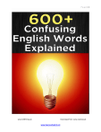 Page |1 www.CSSTimes.pk Downnlaod from: www.csstimes.pk www.EspressoEnglish.net www.CSSTimes.pk Downnlaod from: www.csstimes.pk Page |2 Table of Contents Introduction 12 a / an / one 13 able / capable 13 accident / incident 14 accurate / exact / precise 15 ache / pain / hurt 16 actual / current / present 17 administrator / boss / manager 18 adverse / averse 19 advice / advise 19 affect / effect 20 afraid / scared / frightened 20 after / later 21 agenda / itinerary / schedule 21 ago / back / before 22 aid / assist / help 23 aim / goal / objective 24 alien / foreigner / stranger 25 alive / life / live 26 already / yet 27 all / whole / every 27 all of / each of 29 all ready / already / all right / alright 30 allow / let / permit 30 www.CSSTimes.pk Downnlaod from: www.csstimes.pk www.EspressoEnglish.net Page |3 allude / elude 31 almost / mostly / nearly 32 alone / lonely / only 33 also / as well / too 33 altar / alter 35 although / though / even though 36 among / between 36 amoral / immoral 37 amount / number / quantity 38 ancient / antique 38 angry / upset 39 another / other / others 40 answer / reply / respond 41 any / some 41 apartment / flat / studio 42 apologize / sorry 43 apology / excuse 43 appraise / apprise 44 arrive / come / get / reach 44 as far as / as long as / as soon as 45 assure / ensure / insure 46 automobile / car / vehicle 46 await / hope / expect / wait 47 award / reward / prize 48 awkward / embarrassing 49 baggage / luggage 49 beach / coast / shore 50 www.CSSTimes.pk Downnlaod from: www.csstimes.pk www.EspressoEnglish.net Page |4 beautiful / pretty 51 become / get / turn 52 been / gone 53 before / in front of / opposite / across from 54 beg / plead 55 begin / start 56 belong to / belong with / belong in 56 below / under / beneath / underneath 57 beside / besides 58 big / large 58 big, small, long, short, tall, huge, and tiny 59 bill / invoice / receipt 60 blanket / comforter / quilt 61 borrow / lend / loan / owe 62 bother / disturb 64 bravery / courage 64 bring / take 65 bring up / grow up 65 Britain / England / the U.K. 66 broad / wide 67 by / until 67 can / could / able to 68 capital / capitol 70 carpet / mat / rug 70 ceiling / roof 71 chance / possibility / opportunity 72 change / switch 72 www.CSSTimes.pk Downnlaod from: www.csstimes.pk www.EspressoEnglish.net Page |5 chauffeur / driver 73 city / downtown / town 73 classic / classical 74 clever / intelligent / smart 75 close / near / next 75 close / shut 76 cloth / clothes / clothing 77 collect / gather 77 come back / go back / get back 78 compliment / complement 79 concern / concerned / concerning 80 confident / confidant / confidence 81 continual / continuous 82 convince / persuade 82 could / should / would 83 council / counsel 85 critic / critical / criticism / critique 86 cure / treat / heal / recover 86 custom / habit 87 deadly / fatal / lethal 88 decent / descent / dissent 88 delay / late / postpone 89 deny / refuse / reject / decline 90 defect / fault / flaw 91 definitely / definitively 92 despite / in spite of 92 die / died / dead 93 www.CSSTimes.pk Downnlaod from: www.csstimes.pk www.EspressoEnglish.net Page |6 difficult / hard 94 dilemma / quandary 94 dinner / supper / meal / snack 95 dirt / earth / soil 95 dirty / messy 96 disability / handicap / impairment 96 discover / find out / notice / realize 97 discreet / discrete 98 disease / illness 98 disinterested / uninterested 99 distinct / distinctive 100 do / make 101 dress / dressed / wear 101 during / while / meanwhile / meantime 103 early / soon 104 earn / gain / win 105 e.g. / i.e. 105 economic / economical 106 effective / efficient 107 either / neither 107 electric / electrical / electronic 108 empathy / sympathy 109 employees / staff 110 end / finish 110 enough / too 111 enquire / inquire 112 especially / specially 112 www.CSSTimes.pk Downnlaod from: www.csstimes.pk www.EspressoEnglish.net Page |7 every day / everyday 113 ex- / former / previous 113 explore / exploit 114 extend / expand 114 famous / infamous 115 farther / further 115 fee / fare / tax 116 female / feminine / woman 117 few / little / less / fewer 118 fit / match / suit 119 floor / ground 120 for / since 121 forest / jungle / wood / woods 122 fun / funny 123 girl / lady / woman 123 good / well 124 good evening / good night 124 gratuity / tip 125 guarantee / warranty 125 gut / guts 126 hard / hardly 126 have / have got 127 have to / must / need to 128 haven’t / don’t have 129 hear / listen 130 hijack / kidnap 130 historic / historical 131 www.CSSTimes.pk Downnlaod from: www.csstimes.pk www.EspressoEnglish.net Page |8 holiday / vacation 131 hope / wish 132 hopefully / thankfully 133 hostel / hotel / motel 134 house / home 134 how about…? / what about…? 135 human / humankind / human being / man / mankind 136 hundred / hundreds 137 I / my / me / mine / myself ? 137 if I was… / if I were... 139 if / whether 140 ignore / neglect 140 ill / sick 141 impending / pending 142 imply / infer 143 in / into / inside / within 143 in / on / at 145 in time / on time 146 incite / insight 147 income / salary / wage 148 Indian / indigenous / Native American 148 inhabit / live / reside 149 intend / tend 149 interested / interesting 150 interfere / intervene 151 its / it's 151 www.CSSTimes.pk Downnlaod from: www.csstimes.pk www.EspressoEnglish.net Page |9 job / work / career 152 just / only 153 kinds / types / sorts 155 know / meet 155 last / latest 156 last / past 156 late / lately 157 lay / lie 158 like / as 159 little / small 160 look / see / watch 160 lose / loose 161 lose / miss 162 made of / made from 162 marriage / married / wedding 163 may / might 164 moral / morale 165 Mr. / Mrs. / Ms. / Miss 166 music / song 166 nausea / nauseous / queasy 166 north / northern 167 notable / noticeable 168 ocean / sea / lake / pond 168 of / from 169 oppress / suppress / repress 169 overtake / take over 171 pass away / pass out 171 www.CSSTimes.pk Downnlaod from: www.csstimes.pk www.EspressoEnglish.net P a g e 