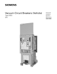 Vacuum Circuit Breakers (Vehicle) Instructions Type MSV 5kV Operation Installation Maintenance SGIM-9988 B Hazardous voltages and high-speed moving parts. Will cause death, serious injury or equipment damage. De-energize and ground the equipment before maintenance. Maintenance should be performed only by qualified personnel. The use of unauthorized parts should not be used in the repair of the equipment. Follow all safety instructions contained herein. IMPORTANT The information contained herein is general in nature and not intended for specific application purposes. It does not relieve the user of responsibility to use sound practices in application, installation, operation, and maintenance of the equipment purchased. Siemens reserves the right to make changes in the specifications shown herein or to make improvements at any time without notice or obligations. Should a conflict arise between the general information contained in this publication and the contents of drawings or supplementary material or both, the latter shall take precedence. QUALIFIED PERSON For the purpose of this manual a qualified person is one who is familiar with the installation, construction or operation of the equipment and the hazards involved. In addition, this person has the following qualifications: (a) is trained and authorized to de-energize, clear, ground, and tag circuits and equipment in accordance with established safety practices. (b) is trained in the proper care and use of protective equipment such as rubber gloves, hard hat, safety glasses or face shields, flash clothing, etc., in accordance with established safety practices. (c) is trained in rendering first aid. SUMMARY These instructions do not purport to cover all details or variations in equipment, nor to provide for every possible contingency to be met in connection with installation, operation, or maintenance. Should further information be desired or should particular problems arise which are not covered sufficiently for the purchaser’s purposes, the matter should be referred to the local sales office. The contents of this instruction manual shall not become part of or modify any prior or existing agreement, commitment or relationship. The sales contract contains the entire obligation of Siemens Power Transmission & Distribution, Inc. The warranty contained in the contract between the parties is the sole warranty of Siemens Power Transmission & Distribution, Inc. Any statements contained herein do not create new warranties or modify the existing warranty. Vacuum Circuit Breakers (Vehicle) Table of Contents Introduction and Safety ........................................................... 2 Introduction ................................................................................. 2 Qualified Person .......................................................................... 2 Signal Words ............................................................................... 2 Dangerous Procedures ............................................................... 2 Field Service Operation ............................................................... 2 Receiving, Handling and Storage ............................................ 3 Introduction ................................................................................. 3 Receiving Procedure ................................................................... 3 Shipping Damage Claims (when applicable) ............................... 3 Handling Procedure ..................................................................... 3 Storage Procedure ...................................................................... 3 Vehicle Description ................................................................... 4 Vehicle Function and Operational Interlocks ............................... 4 Alignment .................................................................................... 4 Recommended Tools .................................................................. 4 Interlocks .................................................................................... 4 Circuit Breaker Racking Interlock (Lever Type) ............................ 4 Circuit Breaker Racking Interlock (Screw Type) .......................... 5 Plunger Position Mechanical Interlock ........................................ 7 Automatic Closing Spring Release .............................................. 7 Continuous Current Interlock ...................................................... 8 Control Cable and Connection Box ............................................. 8 Insulating Barriers ....................................................................... 8 Front Hinged Panel ..................................................................... 8 Maintenance ............................................................................ 10 Introduction and Maintenance Intervals .................................... 10 Recommended Maintenance and Lubrication .......................... 10 Removal from Switchgear ........................................................ 10 Checks of the Primary Power Path ........................................... 11 Cleanliness Check ...................................................................... 11 Primary Disconnects ................................................................. 11 Fastener Check ......................................................................... 11 Racking Mechanism .................................................................. 12 MOC Actuator System .............................................................. 12 Electrical Control Checks .......................................................... 12 Check of the Wiring and Terminals ....................................... 12 Electrical Close and Trip Check (Control Power Required).. .. 12 1 Introduction and Safety Introduction The MSV family of vacuum circuit breakers is designed to meet all the applicable ANSI, NE