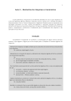 1 Aula 3 – Elementos de máquinas e mecanismos O tema elementos e mecanismos é normalmente abordado em uma ou duas disciplinas nos cursos de Engenharia Agrícola, Mecânica, Industrial e outros e sempre com o enfoque de projeto e dimensionamento. Para os Cursos de Agronomia e Engenharia Florestal procura-se apresentar uma abordagem panorâmica do tema, visando principalmente a adequada utilização dos diferentes elementos de máquinas e mecanismos disponíveis. As máquinas agrícolas e florestais são formadas por partes e componentes e conhece-los é fundamental para o entendimento das máquinas e das operações em que irão atuar. Introdução Inicialmente é importante se conhecer a conceituação de alguns termos técnicos comuns e que seguem a lógica que vai do simples para o complexo no estudo orgânico de máquinas. - Elemento de máquina é o órgão unitário que no conjunto com outros forma os mecanismos e as máquinas. Ex.: parafuso, engrenagem, árvore. - Mecanismo é o conjunto de peças ou elementos de máquinas ligados de forma a produzir um movimento específico. Ex.: êmbolo, biela e manivela de um motor de combustão interna, unidos; par de engrenagens acopladas e fixadas; duas polias apoiadas e ligadas por uma correia. - Par cinemático existe quando tem-se dois elementos ligados entre si; essa vinculação pode ser por: um ponto - o dente de engrenamento das engrenagens; um elemento flexível - correias; uma articulação - a rótula entre biela e manivela (mancal); deslizamento - êmbolo (pistão) e camisa. - Cadela cinemática ou sistema é o conjunto de vários elementos ligados entre si. As cadeias ligam-se a elementos fixos ou bastidores. Ex.: caixa de câmbio. - Bastidor é o elemento fixo ao qual estão ligados os elementos de uma cadeia cinemática. Ex.: chassi, bloco do motor, carcaça da caixa de câmbio. 2 Elementos de máquinas Generalidades Toda máquina é formada por uma quantidade maior ou menor de itens, dependendo da sua complexidade. A rigor, todos esses itens, quando individualizados, são denominados de elementos ou órgãos. Nesse conceito, tanto a árvore de manivelas de um motor como uma simples arruela são elementos de máquina. Por outro lado, a porca e o parafuso, por serem individualizáveis e terem aplicações independentes em alguns casos, são dois elementos distintos. Para se agrupar e ordenar os diferentes tipos de elementos de máquina é necessário algum critério. Adota-se aqui a classificação segundo a função principal para a qual os mesmos foram desenvolvidos. Elementos de transmissão Entende-se por transmissão a condução de movimento ou potência (rotação e torque) de um ponto a outro, dentro de uma máquina, ou entre máquinas distintas. Tem-se, por exemplo, a transmissão de potência do motor até os pneus dentro de um trator. Pode-se também ter a transmissão apenas de movimento do pneu até o painel do carro para registrar a velocidade. Ou ainda, tem-se a transmissão de potência a partir de um motor estacionário (máquina motora) até um moinho (máquina movida). Eixos e árvores É importante que se faça uma diferenciação conceitual entre eixo e árvore, uma vez que é comum nos depararmos com a utilização incorreta, especialmente do termo eixo. Essa diferenciação tem a ver com os conceitos da resistência dos materiais, uma das áreas básicas de conhecimento na engenharia. Eixo é um elemento fixo, não submetido a esforço de torção e que apenas suporta rodas, polias, etc. Como exemplo tem-se o elemento que suporta as rodas de uma carreta agrícola. Já a árvore é um elemento que gira transmitindo potência, portanto é submetido a esforço de torção. Existem árvores retilíneas, árvores de manivelas (típicas nos motores de combustão interna) e árvores flexíveis formadas por cabo de aço girando envolto em uma capa, também flexível como o caso do cabo do velocímetro de um carro ou do odômetro (contador de giro) do motor do trator. Polias e correias Duas polias formam um par cinemático quando unidas por um elemento flexível denominado de correia. Uma polia sempre será a motora e a outra a movida. Para cada tipo de correia existe um tipo correspondente de polia. As correias podem ser planas, normalmente fabricadas em couro, borracha, lona ou mistas e servem para transmissão ou para transporte. 3 As correias trapezoidais, de borracha com fibras internas para resistir à tração, têm perfil padronizado pela largura e altura da secção. Correias denteadas ou estriadas são fabricadas com borracha e fibras. São próprias para transmissões onde não deve haver deslizamento. As polias normalmente são de aço, alumínio ou madeira. Figura 1. Correia e polias planas (a); correia e polia trapezoidal em corte (b); correia e polias denteadas (c) Existem também polias trapezoidais de diâmetro variável, relativamente comuns em máquinas agrícolas. Podem ser de comando automatizado ou manual para a alteração do diâmetro e por consequência, da relação de transmissão, durante a operação. Figura 2. Conjuntos de transmissão de polias de diâmetro variável mostrando as duas relações de transmissão opostas Engrenagens São elementos largamente utilizados em máquinas agrícolas e florestais. Nos primórdios eram rudimentares e construídas em madeira. Hoje são de ferro fundido, no caso de transmissões de baixa velocidade e torque, ou usinadas em aço e de alta precisão nas transmissões mais complexas. As engrenagens são normalmente classificadas pela sua forma construtiva, e essa, por sua vez, define diferentes aplicações. Existem engrenagens cilíndricas, helicoidais, cônicas e tipo parafuso sem-fim. As engrenagens cilíndricas são utilizadas somente em árvores paralelas e podem ser de dentes retos, inclinados ou duplos (em “V”). Elas podem ter dentes internos ou externos. Engrenagens helicoidais ou em espiral servem para engrenamentos com árvores em qu