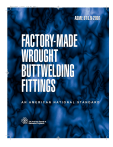 B16.9-2001 7/23/01 2:40 PM Page 1 ASME B16.9-2001 FACTORY-MADE WROUGHT BUTTWELDING FITTINGS AN AMERICAN NATIONAL STANDARD A N A M E R I C A N N A T I O N A L S T A N D A R D FACTORY-MADE WROUGHT BUTTWELDING FITTINGS ASME B16.9-2001 p. 1 05-18-01 10:39:37 Unit: UCP Textfile: B16P9$$$CP Date of Issuance: June 22, 2001 This Standard will be revised when the Society approves the issuance of a new edition. There will be no addenda issued to this edition. The next edition of this Standard is scheduled for publication in 2005. ASME will issue written replies to inquiries concerning interpretation of technical aspects of this Standard. ASME is the registered trademark of The American Society of Mechanical Engineers. This code or standard was developed under procedures accredited as meeting the criteria for American National Standards. The Standards Committee that approved the code or standard was balanced to assure that individuals from competent and concerned interests have had an opportunity to participate. The proposed code or standard was made available for public review and comment that provides an opportunity for additional public input from industry, academia, regulatory agencies, and the public-at-large. ASME does not “approve,” “rate,” or “endorse” any item, construction, proprietary device, or activity. ASME does not take any position with respect to the validity of any patent rights asserted in connection with any items mentioned in this document, and does not undertake to insure anyone utilizing a standard against liability for infringement of any applicable letters patent, nor assume any such liability. Users of a code or standard are expressly advised that determination of the validity of any such patent rights, and the risk of infringement of such rights, is entirely their own responsibility. Participation by federal agency representative(s) or person(s) affiliated with industry is not to be interpreted as government or industry endorsement of this code or standard. ASME accepts responsibility for only those interpretations of this document issued in accordance with the established ASME procedures and policies, which precludes the issuance of interpretations by individuals. No part of this document may be reproduced in any form, in an electronic retrieval system or otherwise, without the prior written permission of the publisher. The American Society of Mechanical Engineers Three Park Avenue, New York, NY 10016-5990 Copyright © 2001 by THE AMERICAN SOCIETY OF MECHANICAL ENGINEERS All Rights Reserved Printed in U.S.A. p. 1 p. 3 05-18-01 08:31:17 Unit: UFW Textfile: B16P9$$$FW FOREWORD In 1921, the American Engineering Standards Committee, later American Standards Association (ASA), organized Sectional Committee B16 to unify and further develop national standards for pipe flanges and fittings (and, later, for valves, gaskets, and valve actuators). Cosponsors of the B16 Committee were the American Society of Mechanical Engineers (ASME), the Heating and Piping Contractors National Association [now the Mechanical Contractors Association of America (MCAA)], and the Manufacturers Standardization Society of the Valve and Fittings Industry (MSS). Cosponsors were later designated as cosecretariat organizations. Standardization of welding fittings was initiated in 1937 by a subgroup (designated Subgroup 6) of Subcommittee 3. After consideration of several drafts, a standard was approved by the Committee, cosponsors, and ASA, and published with the designation ASA B16.9-1940. Revisions were made in 1950 and 1955 to add sizes up to NPS 24 and to complete coverage of fittings in some sizes. These revisions were approved and published as ASA B16.9-1951 and ASA B16.9-1958. With the subgroup now designated Subcommittee 6 (later Subcommittee F), further revisions were begun to clarify the intent of the standard, to add angularity tolerances, and to include fittings of different types (long radius-reducing elbows and crosses) and smaller sizes (NPS 1⁄4 and 1⁄2). This revision was published as ASA B16.91964 after ASA approval. After reorganization of ASA, first as the United States of America Standards Institute (USASI), then as the American National Standards Institute (ANSI), with the Sectional Committee being redesignated as an American National Standards Committee, another revision increasing the size range to NPS 48 and revising the text for clarity was approved and published as ANSI B16.9-1971. In 1975, Subcommittee F began a major revision to bring the standard up to date with current practice and usage. Common fractions were expressed as decimals (but without intending higher precision) and metric dimensional equivalents were added. Provisions for step-wise change of radius for NPS 3⁄4 long radius elbows and 180 deg returns were introduced. Following Standards Committee, cosecretariat, and ANSI approval, the revision was published as ANSI B16.9-1978. It was updated by a corrective addendum, B16.9a1981, issued in February 1982. In 1982, American National Standards Committee B16 was reorganized as an ASME Committee operating under procedures accredited by ANSI. In this Edition, the text has been revised and inch dimensions are established as the standard. Following approval by the Standards Committee and ASME, approval as an American National Standard was given by ANSI on November 12, 1986 with the new designation ASME/ANSI B16.9-1986. In 1991 the Subcommittee reviewed the document and made a number of revisions. Dimensions for short pattern lap joints were also added to this 1993 Edition of the Standard. In this 2001 Edition, short radius elbows and returns were added which includes all dimensions and tolerances of ASME B16.28-1994. This Edition also provides metric units as an independent but parallel alternative standard to U.S. Customary units and a Quality System Program Annex. iii p. 3 p. 4 05-18-01 08:31:17 Unit: UFW Textfile: B16P9$$$FW Requests for interpretation or 