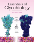Essentials of Glycobiology FOURTH EDITION This free download of Essentials of Glycobiology, Fourth Edition is made possible by generous financial support from InterVenn Biosciences. Full text of this work and associated links and downloadable PowerPoint slides of all of the figures are available at http://www.ncbi.nlm.nih.gov/books/n/glyco4 Essentials of Glycobiology FOURTH EDITION EDITED BY Ajit Varki Richard D. Cummings Jeffrey D. Esko Pamela Stanley Gerald W. Hart Markus Aebi Debra Mohnen Taroh Kinoshita Nicolle H. Packer James H. Prestegard Ronald L. Schnaar Peter H. Seeberger COLD SPRING HARBOR LABORATORY PRESS Cold Spring Harbor, New York • www.cshlpress.org Essentials of Glycobiology, Fourth Edition All rights reserved © 2022 by the Consortium of Glycobiology Editors, La Jolla, California Published by Cold Spring Harbor Laboratory Press, Cold Spring Harbor, New York Library of Congress Control Number: 2021950841 Publisher and Acquisition Editor Senior Project Manager Permissions Coordinator Production Editor Production Manager Cover Designers John Inglis Inez Sialiano Carol Brown Kathleen Bubbeo Denise Weiss Lorenzo Casalino and Rommie Amaro Illustrator and Illustrations Coordinator Richard D. Cummings Front cover artwork: Molecular representation of the full-length, fully glycosylated, all-atom model of the SARS-CoV-2 spike protein in the open state, embedded in the viral membrane. The model of the spike has been developed by Casalino et al. (ACS Cent Sci 6: 1722–1734 [2020]) based on the cryo-EM structure by Wrapp et al. (Science 367: 1260–1263 [2020]) (PDB ID: 6VSB). N-/O-glycans have been modeled according to Watanabe et al. (Science 369: 330–333 [2020]) and Shajahan et al. (Glycobiology 30: 981–988 [2020]). On the left, the full-length SARS-CoV-2 spike in the open state—that is, with one receptor binding domain (RBD) in the “up” conformation—is shown with a cyan transparent surface overlaid on the cartoon representation of its secondary structure. The conformation of the spike was selected from molecular dynamics simulations performed by Casalino et al. (ACS Cent Sci 6: 1722–1734 [2020]). N-linked and O-linked glycans are depicted using the Symbol Nomenclature for Glycans (SNFG), in which blue filled squares are for N-acetyl-D-glucosamine (GlcNAc), green filled circles for Dmannose, yellow filled squares for N-acetyl-D-galactosamine (GalNAc), yellow filled circles for Dgalactose (Gal), red filled triangles for L-fucose (Fuc), and purple filled diamonds for N-acetyl-Dneuraminic acid (Neu5Ac). The lipid bilayer of the viral membrane is depicted with a surface representation, in which the POPC (1-palmitoyl-2-oleoyl-sn-glycero-3-phosphocholine) are colored in pink, POPE (1-palmitoyl-2-oleoyl-sn-glycero-3-phosphoethanolamine) in purple, POPI (1palmitoyl-2-oleoyl-sn-glycero-3-phosphoinositol) in orange, POPS (1-palmitoyl-2-oleoyl-sn-glycero3-phosphoserine) in red, and cholesterol in yellow. On the right, the glycan shield (dark-blue bush-like structures) in the SARS-CoV-2 spike protein (cyan transparent surface) is shown by overlaying multiple conformations of the N-linked and Olinked glycans obtained at multiple, interspersed frames along 1 μsec of molecular dynamics simulations (Casalino et al., ACS Cent Sci 6: 1722–1734 [2020]). For each glycan, each conformation sampled along the dynamics is shown with dark-blue sticks. When multiple conformations of each glycan are overlaid, they form a protective bush-like structure providing a visual representation of the extent of protein surface covered over a specific time frame. When the receptor-binding domain (RBD), located in the apical portion of the spike, is in the “up” conformation, it emerges from the glycan shield (as shown in the image with transparent cyan surface) and becomes available for binding to the angiotensin-converting enzyme 2 (ACE2) receptors located on the host cell. The binding event between the RBD and ACE2 initiates infection. The cover artwork was designed and created by Dr. Lorenzo Casalino in the Amaro Laboratory (University of California San Diego), based on the all-atom model published in ACS Cent Sci 6: 1722–1734 (2020). Library of Congress Cataloging-in-Publication Data Identifiers: LCCN 2021950841 | ISBN 978-1-621824-21-3 (hardcover) | ISBN 978-1-621824-22-0 (ePub3) All World Wide Web addresses are accurate to the best of our knowledge at the time of printing. Authorization to photocopy items for internal or personal use, or the internal or personal use of specific clients, is granted by Cold Spring Harbor Laboratory Press, provided that the appropriate fee is paid directly to the Copyright Clearance Center (CCC). Write or call CCC at 222 Rosewood Drive, Danvers, MA 01923 (978-750-8400) for information about fees and regulations. Prior to photocopying items for educational classroom use, contact CCC at the above address. Additional information on CCC can be obtained at CCC Online at www.copyright.com. For a complete catalog of all Cold Spring Harbor Laboratory Press publications, visit our website at www.cshlpress.org. Financial support for the free download of this e-book does not imply endorsement of InterVenn’s products and services by the Consortium of Glycobiology Editors, the book’s copyright holder, nor Cold Spring Harbor Laboratory Press, the book’s publisher. Contents Foreword Preface Praise for the Previous Editions of Essentials of Glycobiology Contributors Editors of Earlier Editions Consultant Reviewers Classic Books and Monographs Abbreviations GENERAL PRINCIPLES 1 Historical Background and Overview Ajit Varki and Stuart Kornfeld 2 Monosaccharide Diversity Peter H. Seeberger 3 Oligosaccharides and Polysaccharides Carlito B. Lebrilla, Jian Liu, Göran Widmalm, and James H. Prestegard 4 Cellular Organization of Glycosylation Karen J. Colley, Ajit Varki, Robert S. Haltiwanger, and Taroh Kinoshita 5 Glycosylation Precursors Hudson H. Freeze, Michael Boyce, Na