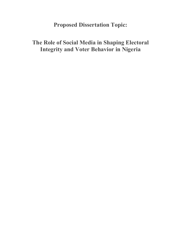 Proposed Dissertation Topic: The Role of Social Media in Shaping Electoral Integrity and Voter Behavior in Nigeria Study Problem Nigeria’s electoral processes have increasingly relied on social media for voter mobilization, political campaigning, and civic engagement, particularly among its youthful population. However, the unchecked proliferation of platforms like Facebook, X (Twitter), and WhatsApp has exacerbated threats to electoral integrity, including viral misinformation, ethnic-based hate speech, voter suppression tactics, and the manipulation of electoral narratives. Despite social media’s transformative role in Nigeria’s elections—evident in the 2015, 2019, and 2023 general elections—there is limited empirical research on how these platforms simultaneously empower voters and undermine trust in institutions like the Independent National Electoral Commission (INEC). This study investigates the duality of social media as both a tool for democratic participation and a vector for electoral malpractice in Nigeria’s unique socio-political context. Key Study Questions 1. How does social media influence voter behavior, political awareness, and turnout in Nigeria’s ethnically diverse democracy? 2. What specific risks does social media pose to electoral integrity in Nigeria, such as fake news, incitement of violence, or bias in algorithmic content distribution? 3. How effective are Nigeria’s existing legal and regulatory frameworks (e.g., NCC regulations, INEC guidelines) in curbing social media-related electoral malpractices? 4. What context-specific strategies can strengthen the Nigerian electoral system’s resilience to social media-driven threats while preserving its democratic benefits? Specific Objectives of the Study 1. To analyze the impact of social media on voter behavior, political participation, and trust in electoral outcomes in Nigeria. 2. To identify and evaluate social media-driven threats to the credibility of Nigeria’s electoral process. 3. To assess the effectiveness of Nigeria’s regulatory frameworks in addressing social media misuse during elections. 4. To propose actionable recommendations for policymakers, INEC, and civil society to mitigate risks and leverage social media for democratic consolidation. Achieving the First Specific Objective Objective 1: To analyze the impact of social media on voter behavior, political participation, and trust in electoral outcomes in Nigeria. Methodology: 1. Mixed-Methods Approach: o Quantitative Surveys: Conduct structured surveys targeting 1,200+ registered voters across Nigeria’s six geopolitical zones, focusing on social media usage patterns, exposure to political content, and self-reported shifts in voting preferences (e.g., influence of viral posts or influencers like @_adeherself or @davido). o Qualitative Focus Groups: Organize focus groups in urban and rural areas (e.g., Lagos, Kano, Enugu) to explore how ethnicity, religion, and socio-economic status shape voters’ engagement with social media during elections. o Big Data Analysis: Partner with Nigerian tech firms (e.g., Tech4Democracy NGOs) to analyze trends in election-related hashtags (e.g., #NigeriaDecides2023), fake news spread, and user engagement metrics on platforms like WhatsApp and TikTok. 2. Case Studies: o Examine the 2023 Nigerian general elections, focusing on incidents where social media fueled misinformation (e.g., false claims about INEC’s BVAS system) or amplified voter mobilization (e.g., the #Obidient movement). o Compare with the 2019 elections, where social media played a lesser role but still influenced narratives around voter apathy and post-election violence. 3. Stakeholder Interviews: o Interview INEC officials, social media platform representatives (e.g., Meta’s Nigeria team), Nigerian Communications Commission (NCC) regulators, and civil society leaders (e.g., Yiaga Africa) to contextualize findings. 4. Ethical Considerations: o Adhere to Nigeria’s Data Protection Regulation (NDPR) and ensure informed consent, particularly in regions with heightened political sensitivities (e.g., Southeast and Northwest zones). Expected Output: A data-driven understanding of how social media: Shapes voter choices among Nigeria’s youth (who constitute 70% of the population). Amplifies or mitigates ethno-religious polarization during elections. Affects public trust in INEC’s electoral outcomes. Contextual Adaptation for Nigeria: Highlight Nigeria’s high mobile penetration rate (82%) and youth demographics (median age: 18), which make social media a critical electoral battleground. Address unique challenges like the spread of misinformation in local languages (e.g., Hausa, Yoruba, Igbo) and the weaponization of platforms for ethnic agitation. Propose solutions aligned with Nigeria’s National Cybersecurity Policy and INEC’s mandate to adopt technology (e.g., BVAS) while combating digital threats. This framework ensures relevance to Nigeria’s evolving democracy and provides actionable insights for safeguarding elections in Africa’s most populous nation.